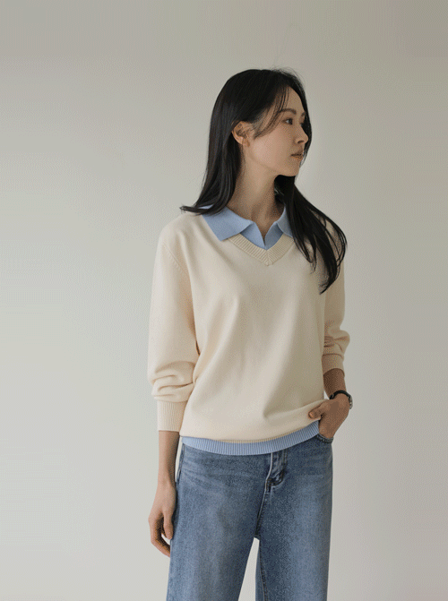 ハーテル ブイネック マンツーマンTシャツ T11371