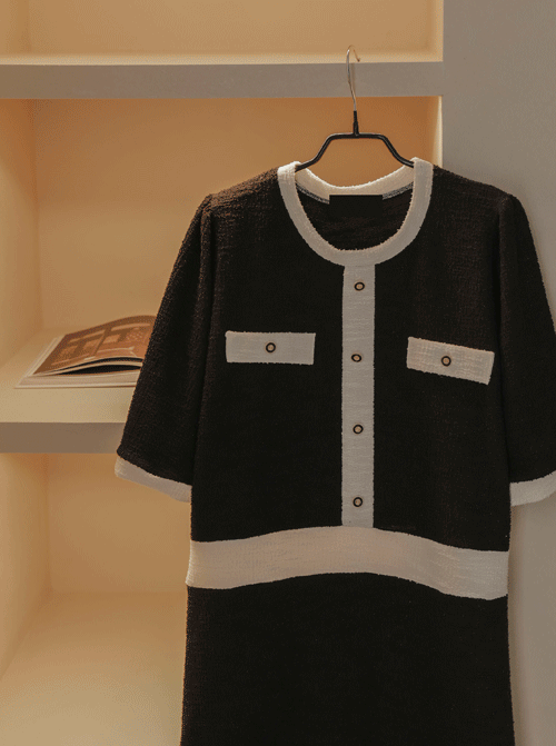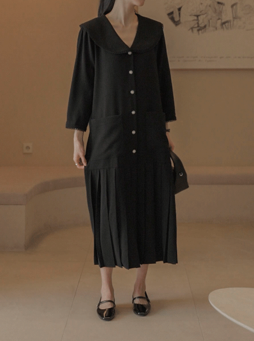 基本書 隠しボタンワンピース D7721