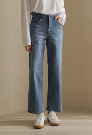 샤르나 여유일자 롱팬츠 _ 라이트데님