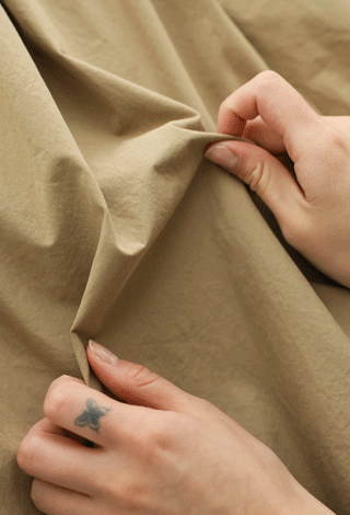 A:스판이 혼방되어 있어 빳빳한 느낌보다는 유연하고 부드러운 텐션감이 더 강해요. 앉았다 일어날 때도 무릎이나 허벅지 끼임 없이 정말 편안하답니다.