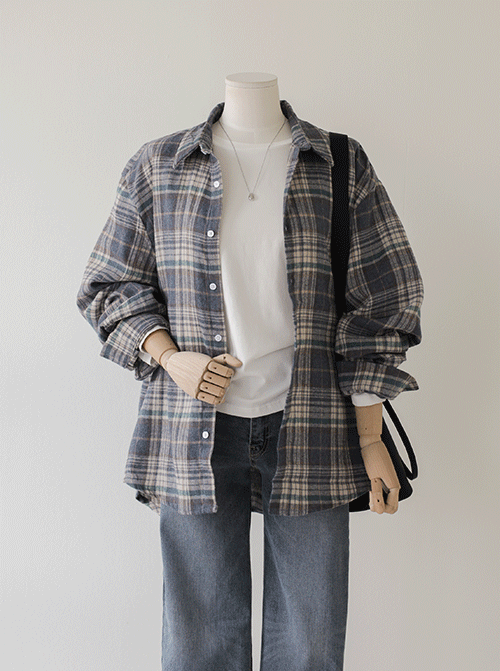 コリアチェックフードシャツ T11370