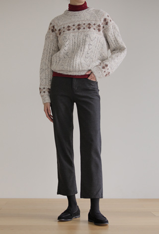 코디정보주레신 브이넥 맨투맨 _ 레드 다이널 여유배기 팬츠 _ 데님