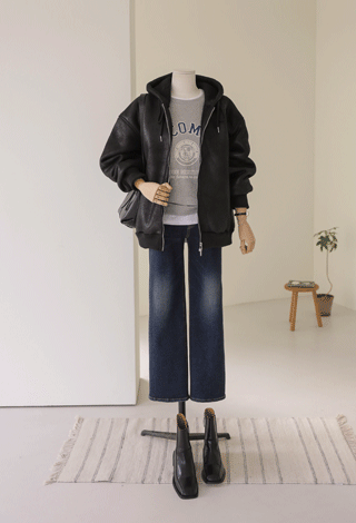 코디정보 초주도 더블 자켓 _ 블랙체터퍼 슬림일자 팬츠 _ 데님 상의 _ 코디용