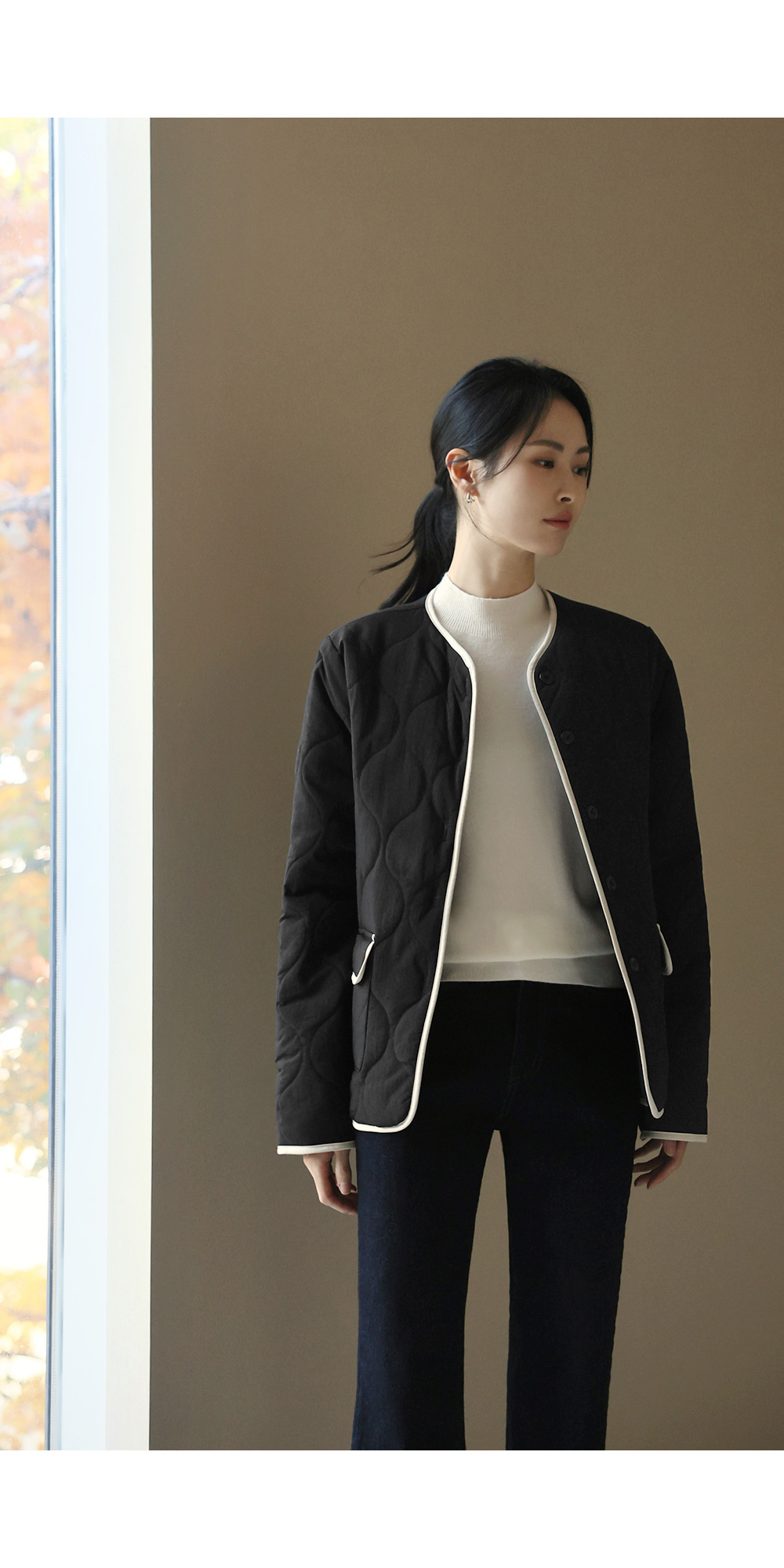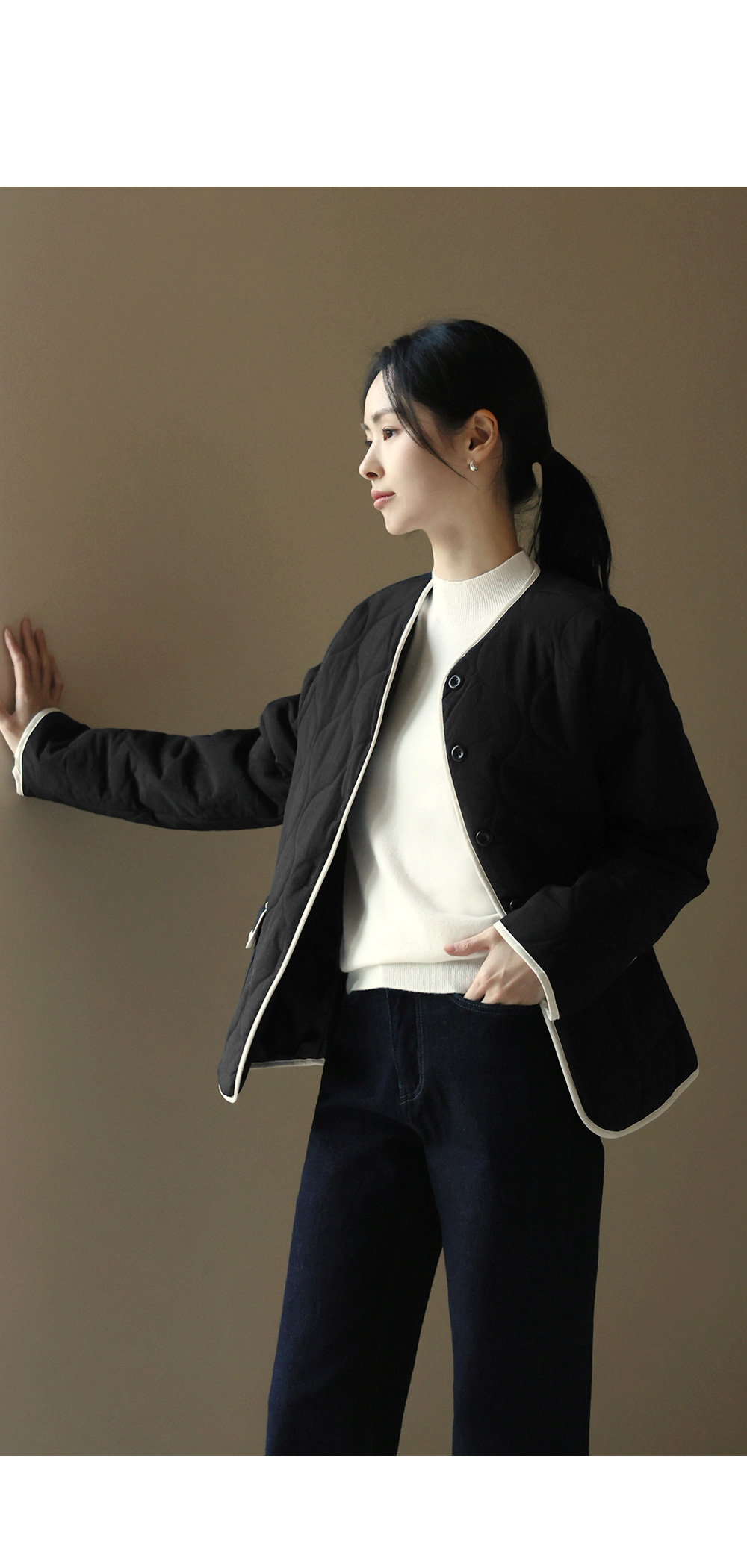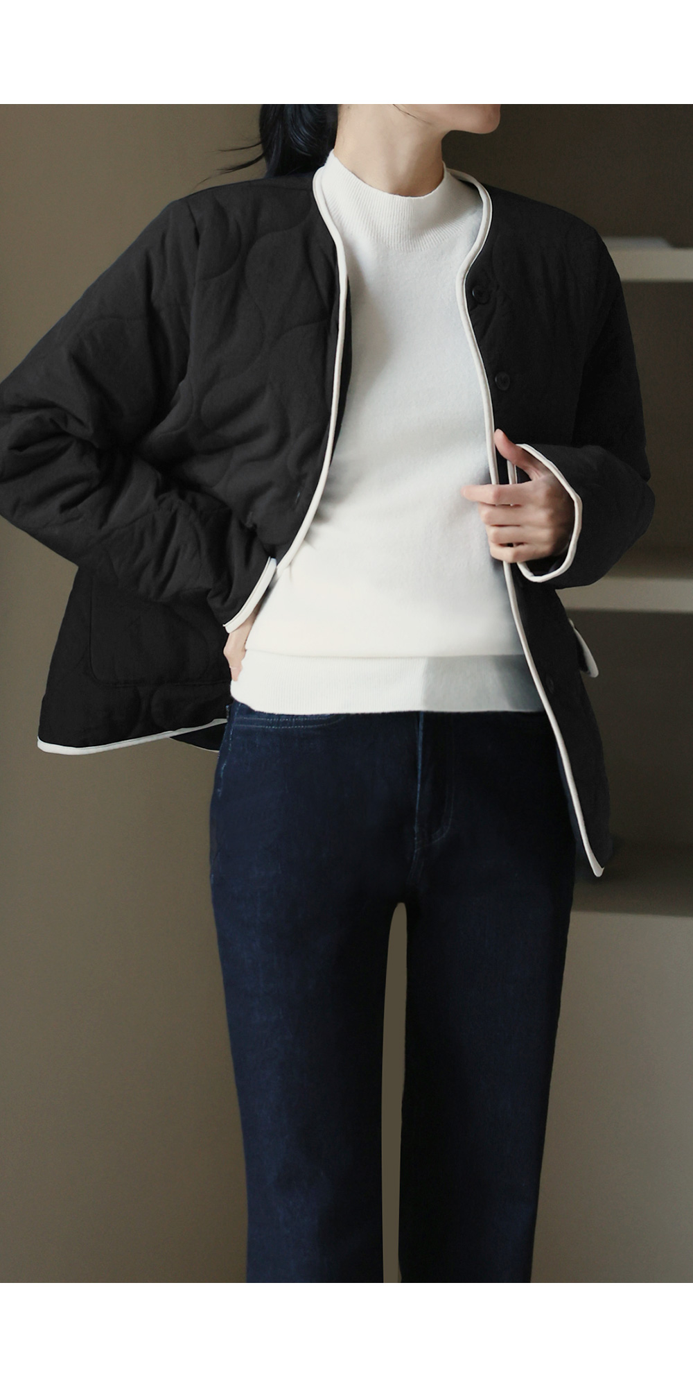 모델정보 HR : 키 167cm / 상의 55 / 하의 26(S) / 신발 240mm코디정보 라니움 배색 패딩점퍼 _ 블랙제어티 반폴라 니트 _ 크림 다히어 일자팬츠 _ 데님