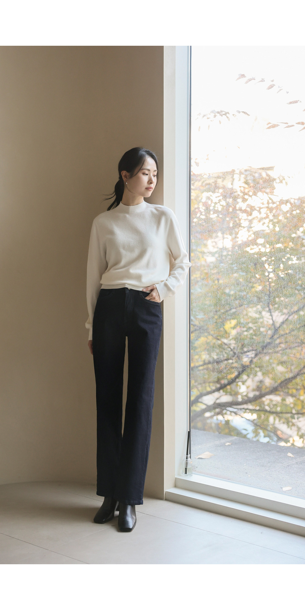 코디정보 구소고 반폴라 티셔츠 _ 아이보리다히어 일자팬츠 _ 데님
