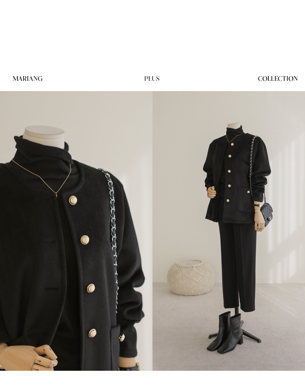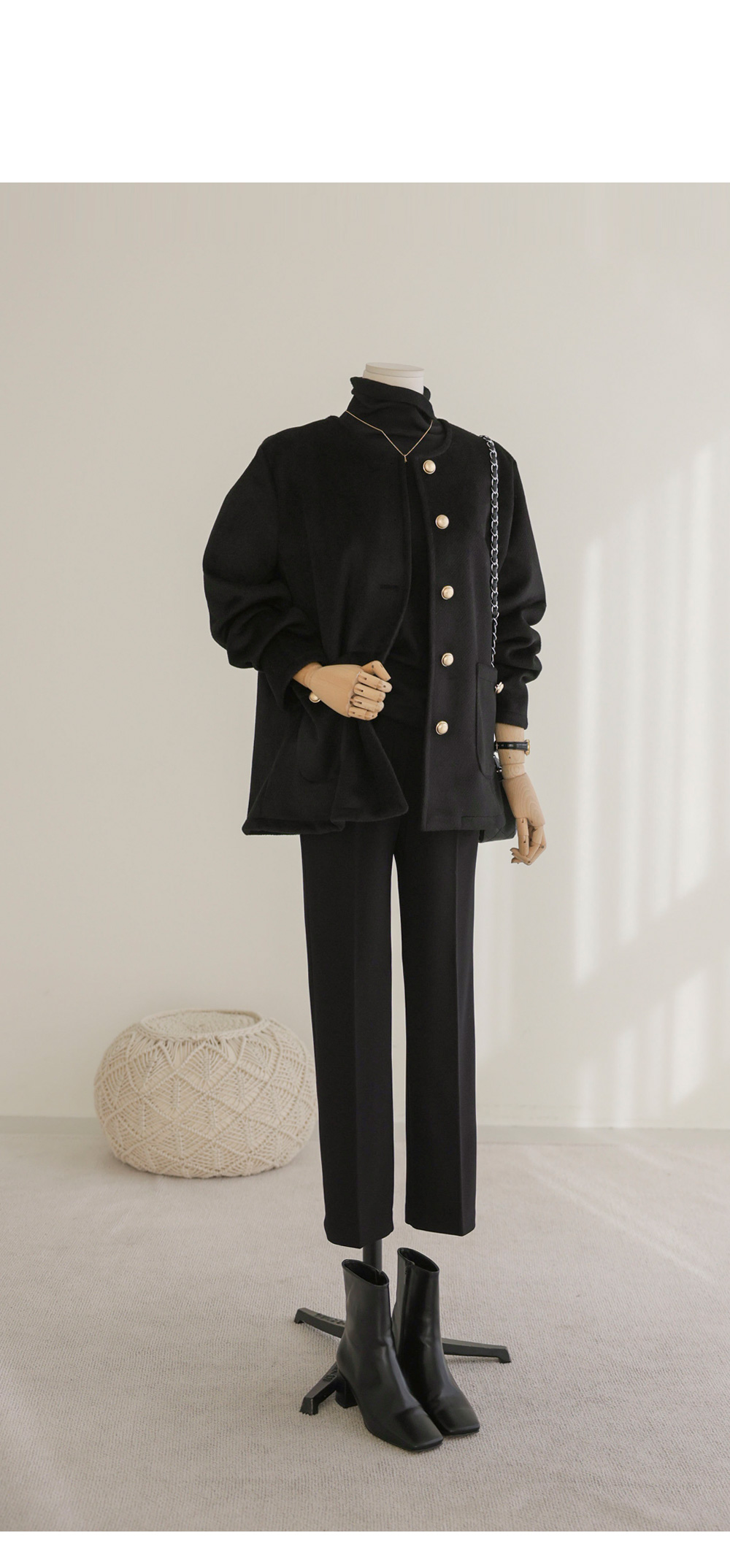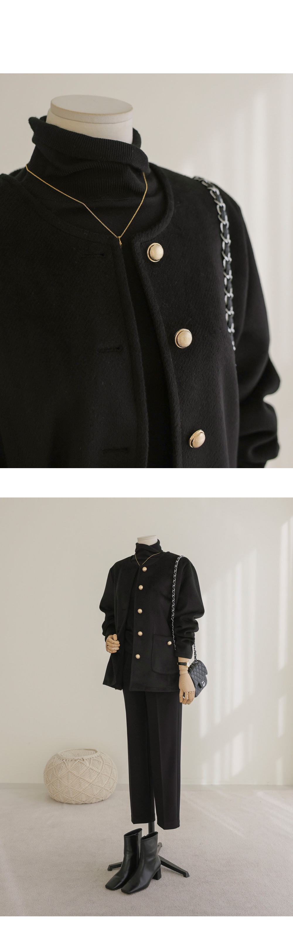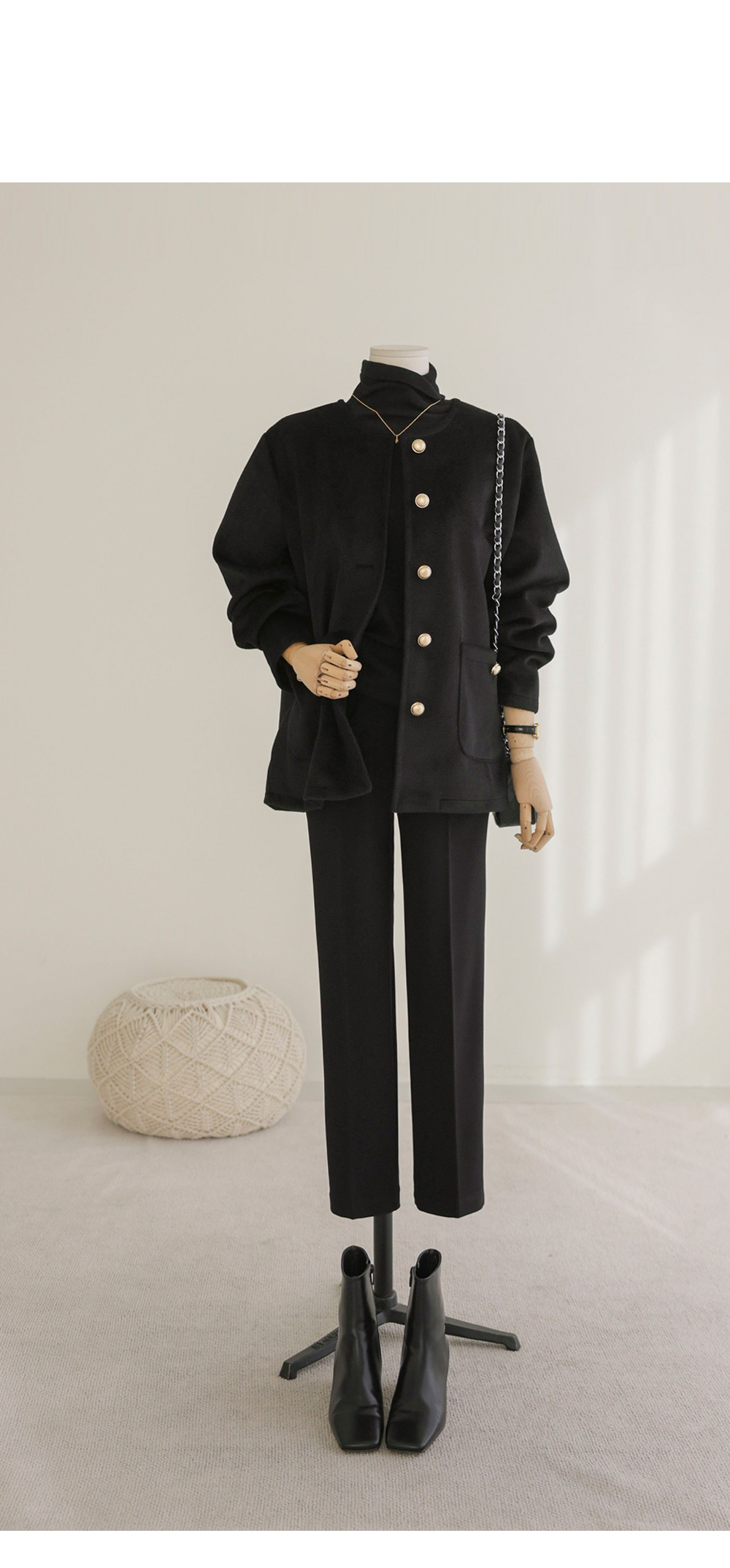 코디정보 타호허 노카라 자켓 _ 블랙미스트 폴라 니트 _ 블랙 빈티징 일자 슬랙스 _ (기모)블랙