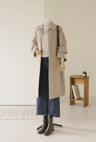 코디정보 고고푸 울코트 _ 차콜조루호 단가라 니트 _ 아이보리 하의 _ 코디용
