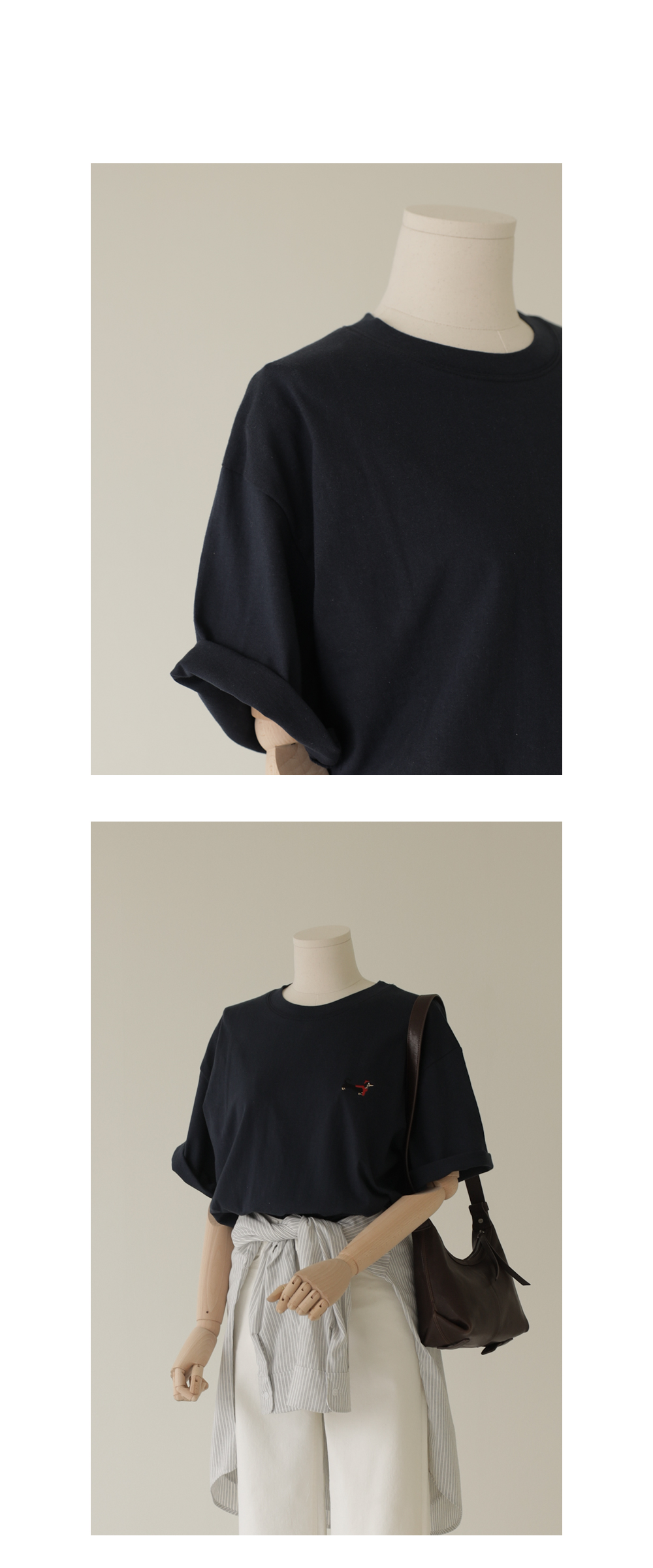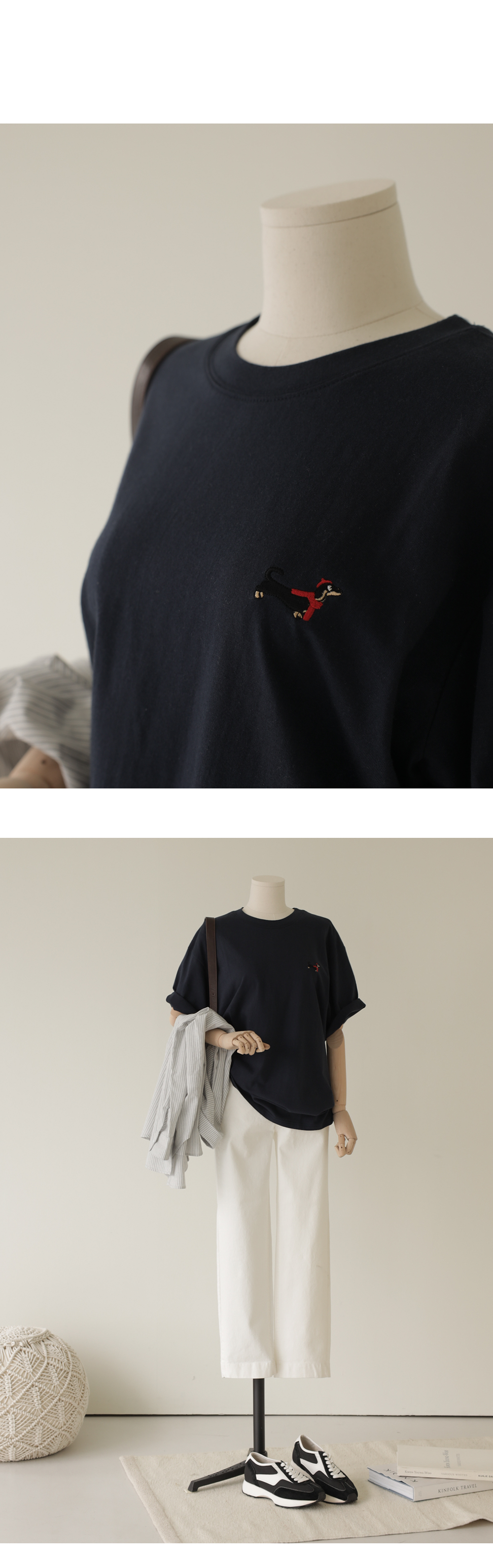모델정보 HR : 키 167cm / 상의 55 / 하의 26(S) / 신발 240mm코디정보 부보벨 셔츠 _ 스카이블루포사머 브이넥 울니트 _ 네이비 모자쓴 훈트 반팔티 _ 네이비 치쿠툴 일자팬츠 _ 아이보리