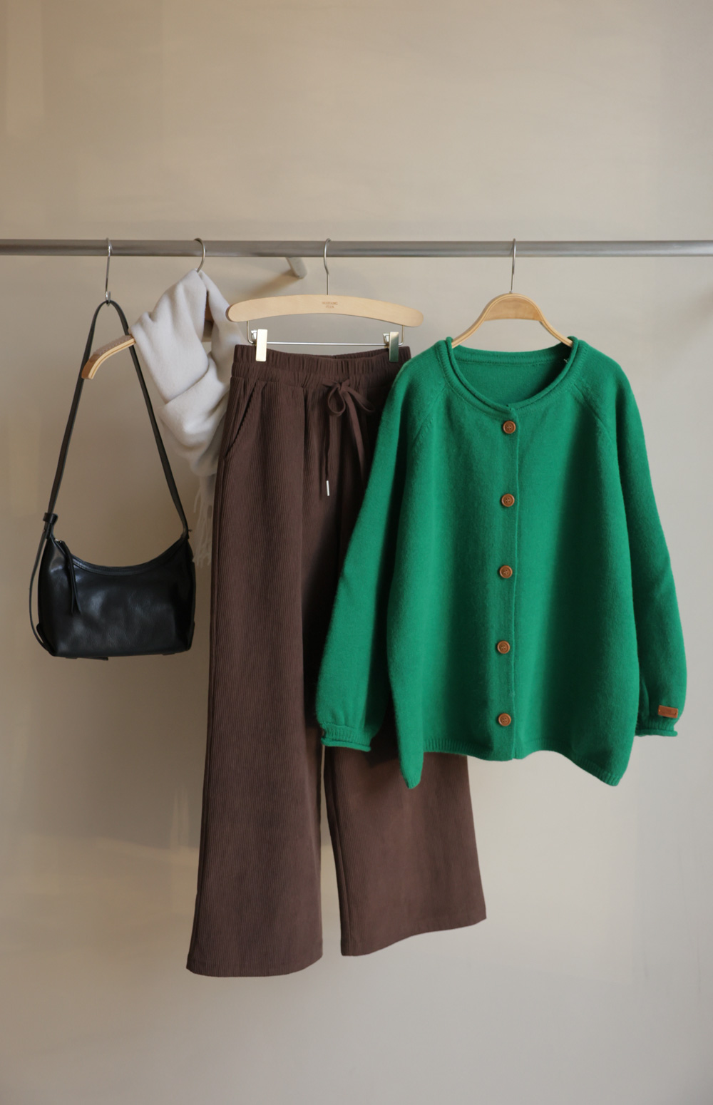 코디정보 더크무 가디건 _ 아이보리어스치 롱 블라우스 _ 브라운 하의 _ 코디용