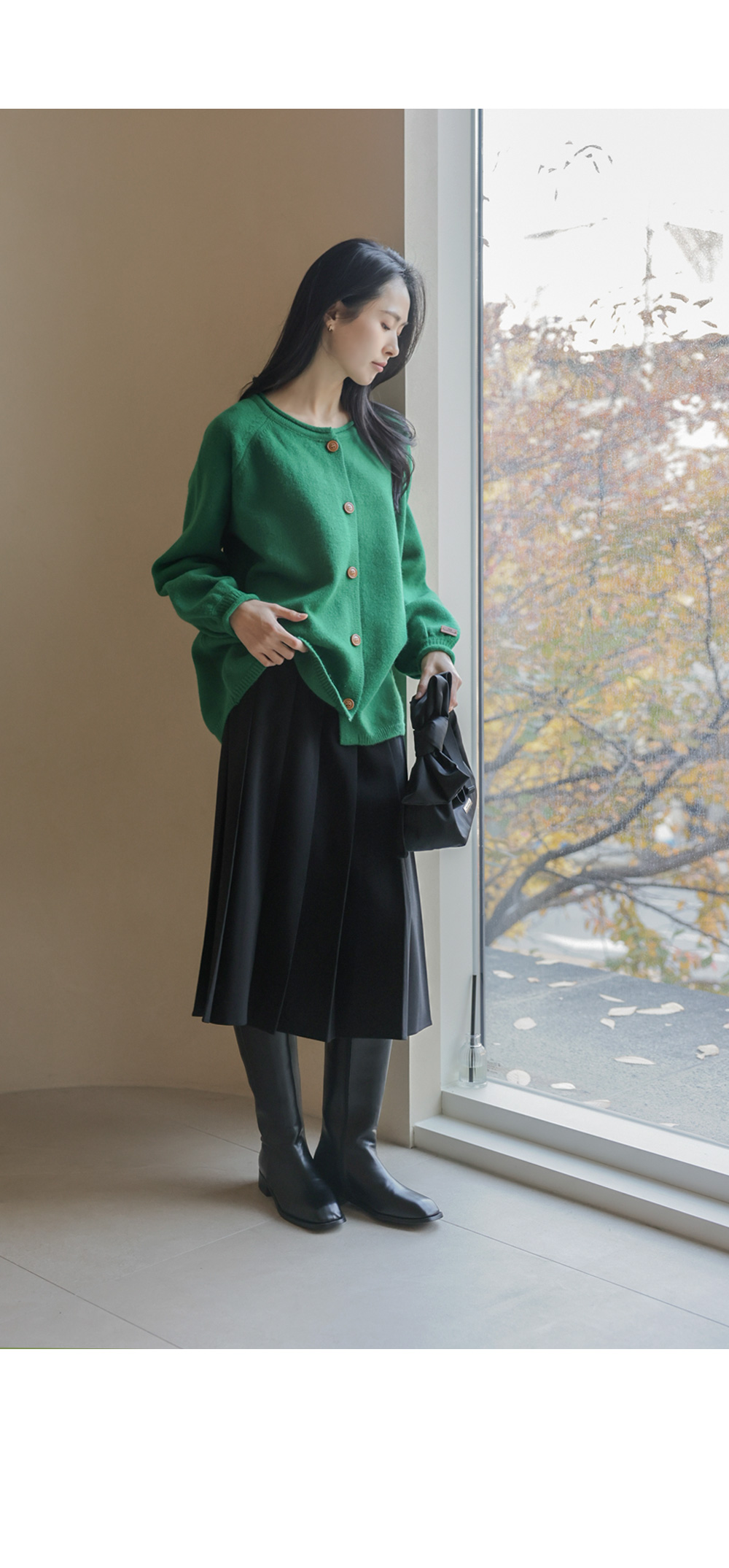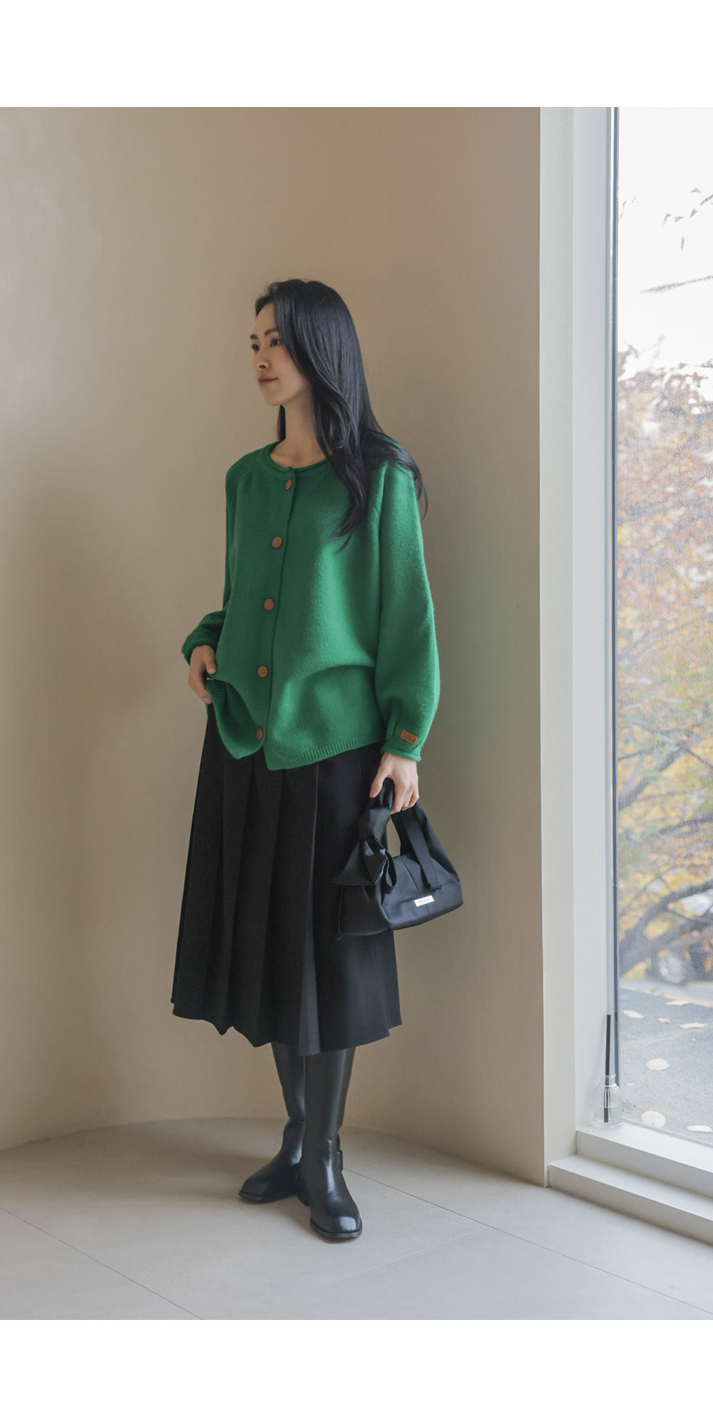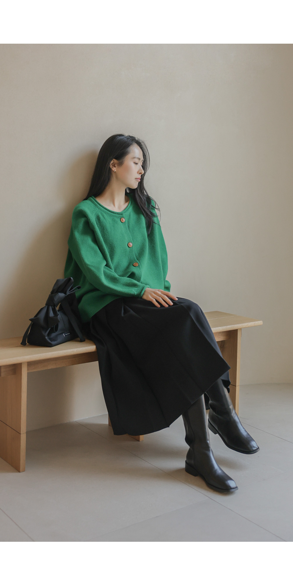 코디정보 더크무 가디건 _ 그린머티루 캉캉 롱스커트 _ 크림 상의 _ 코디용