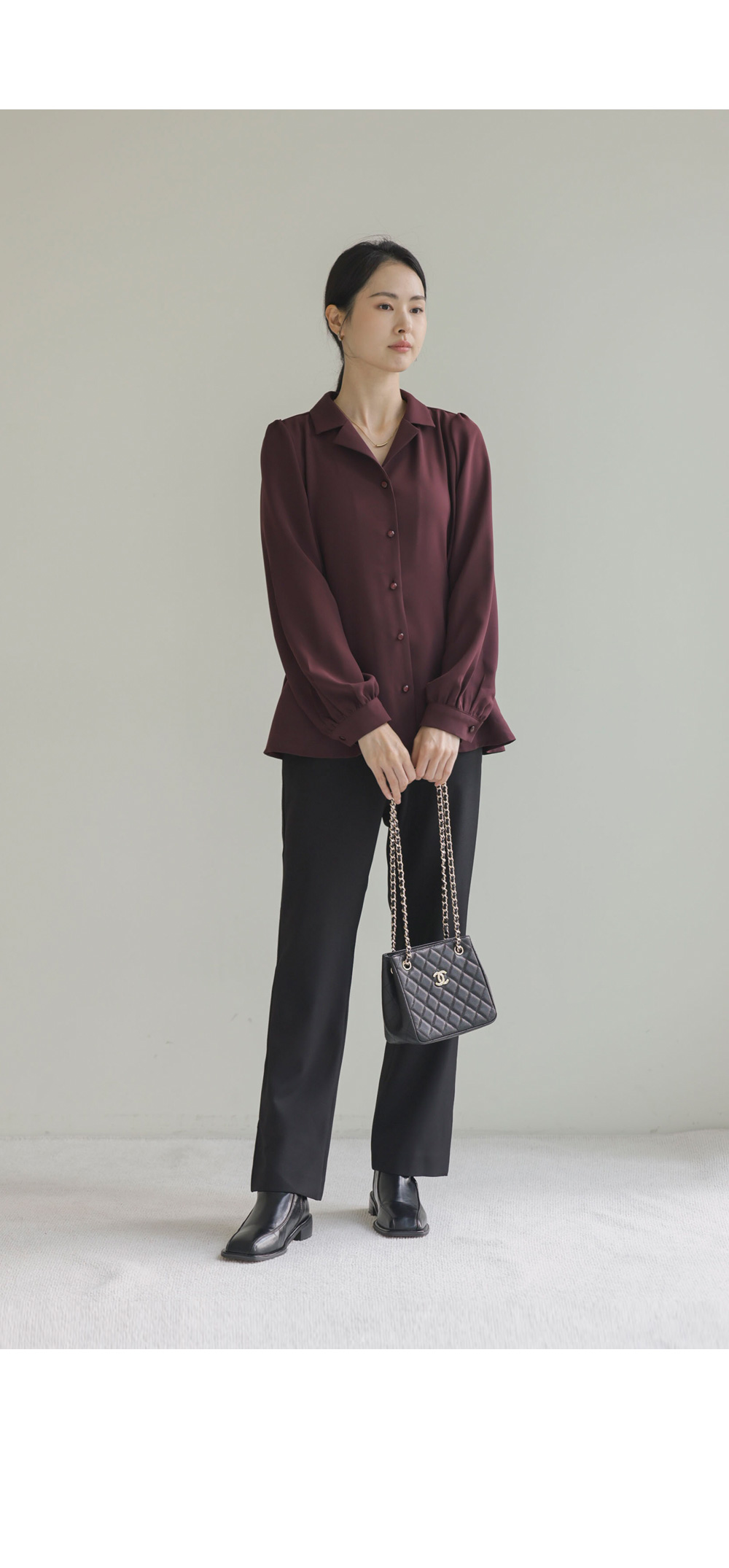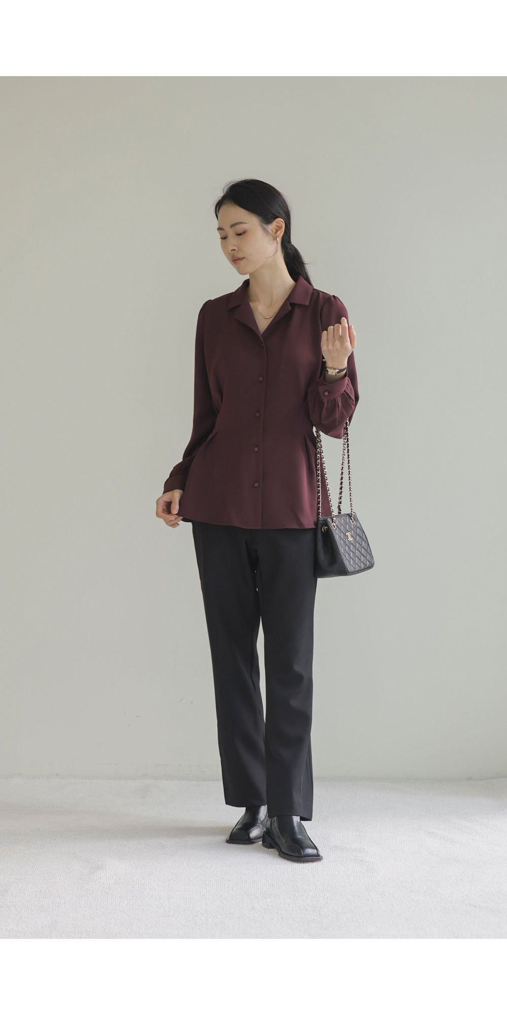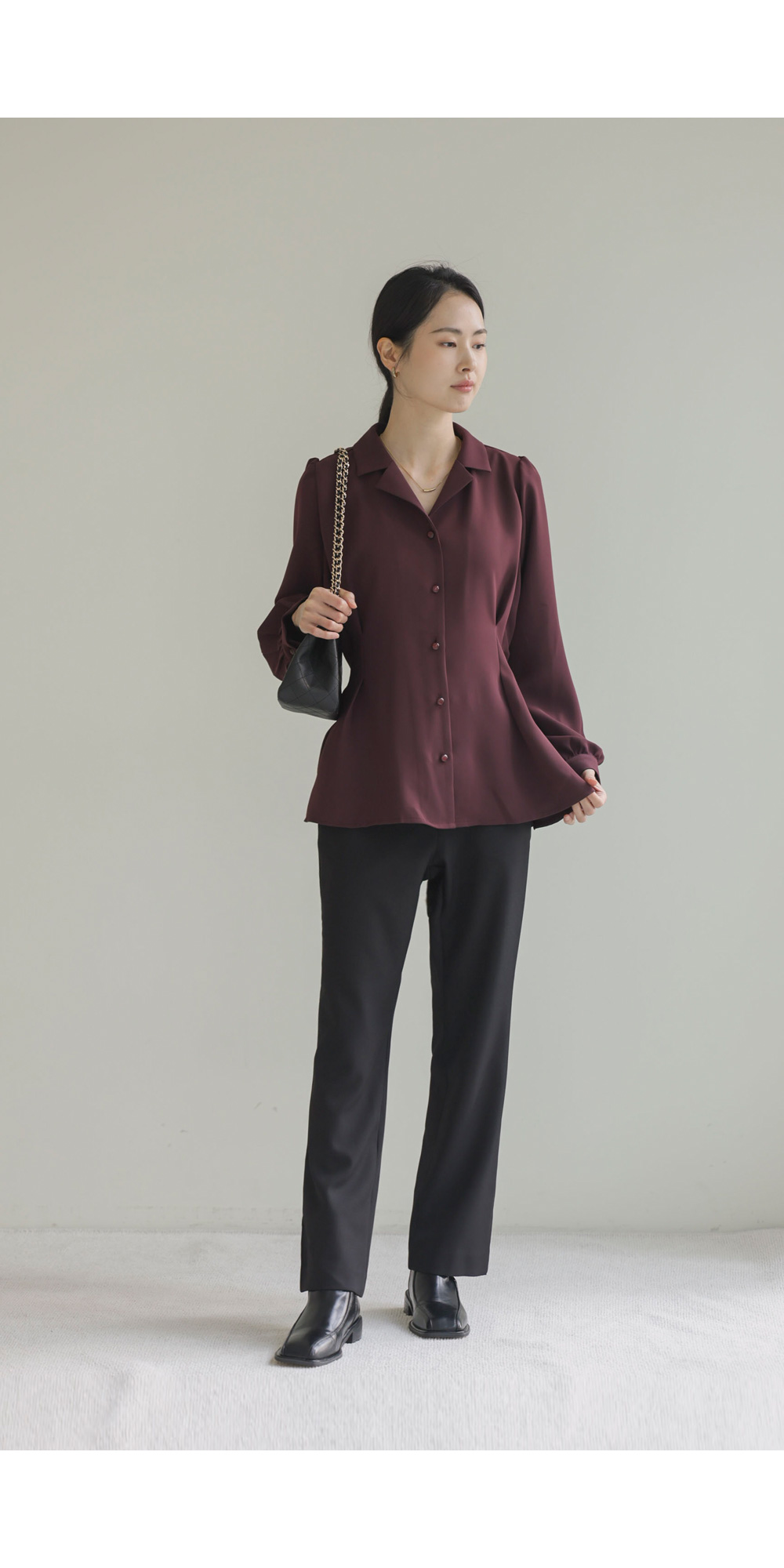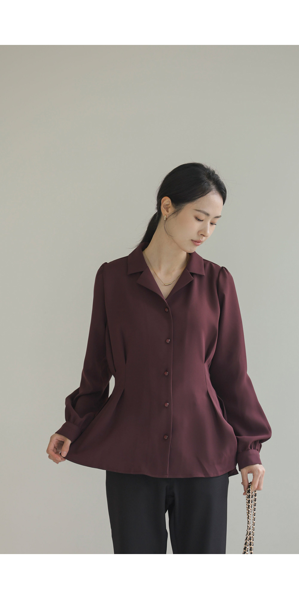 준에로 스트랩 블라우스 _ 버건디