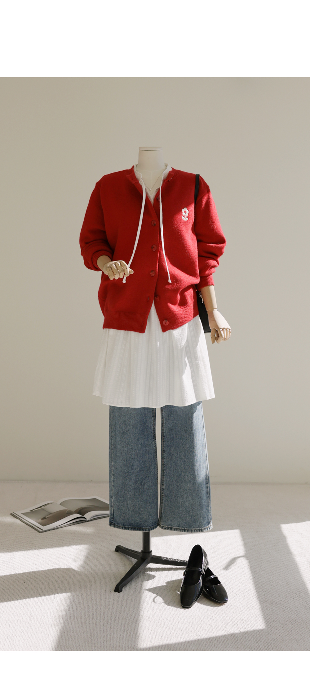 지라노 자수 가디건 _ 레드