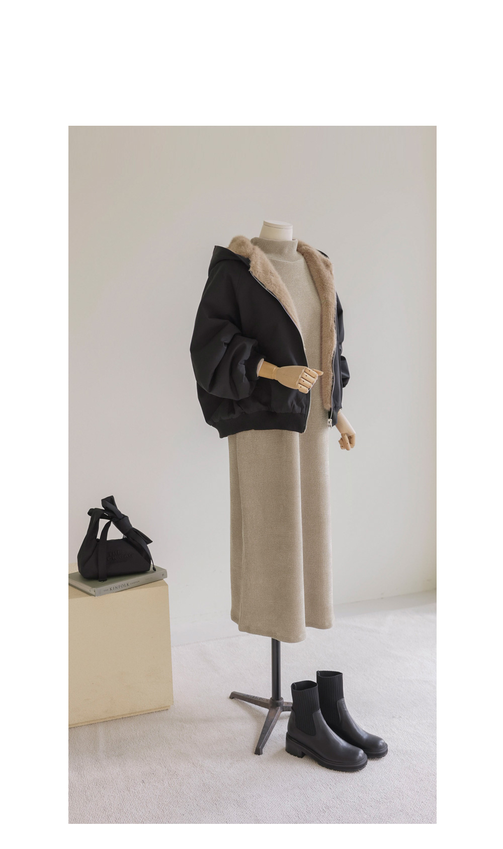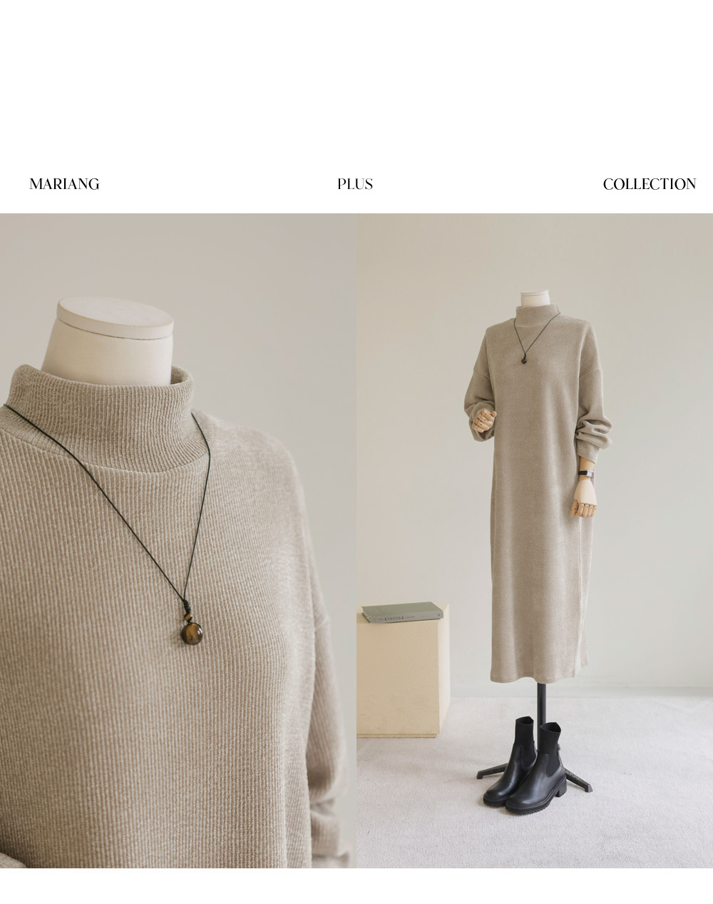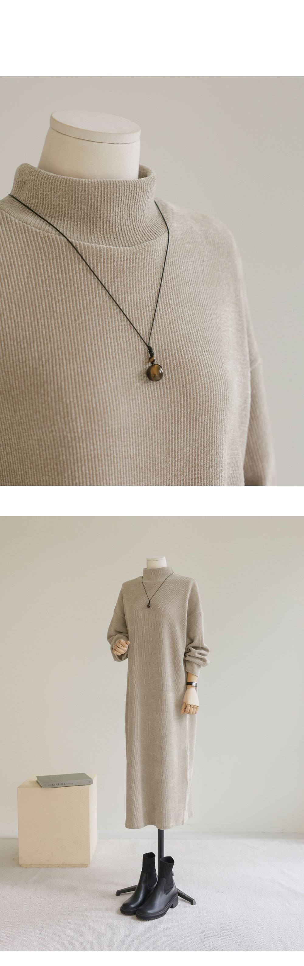 소리엔 반폴라 원피스 _ 블랙,다크베이지