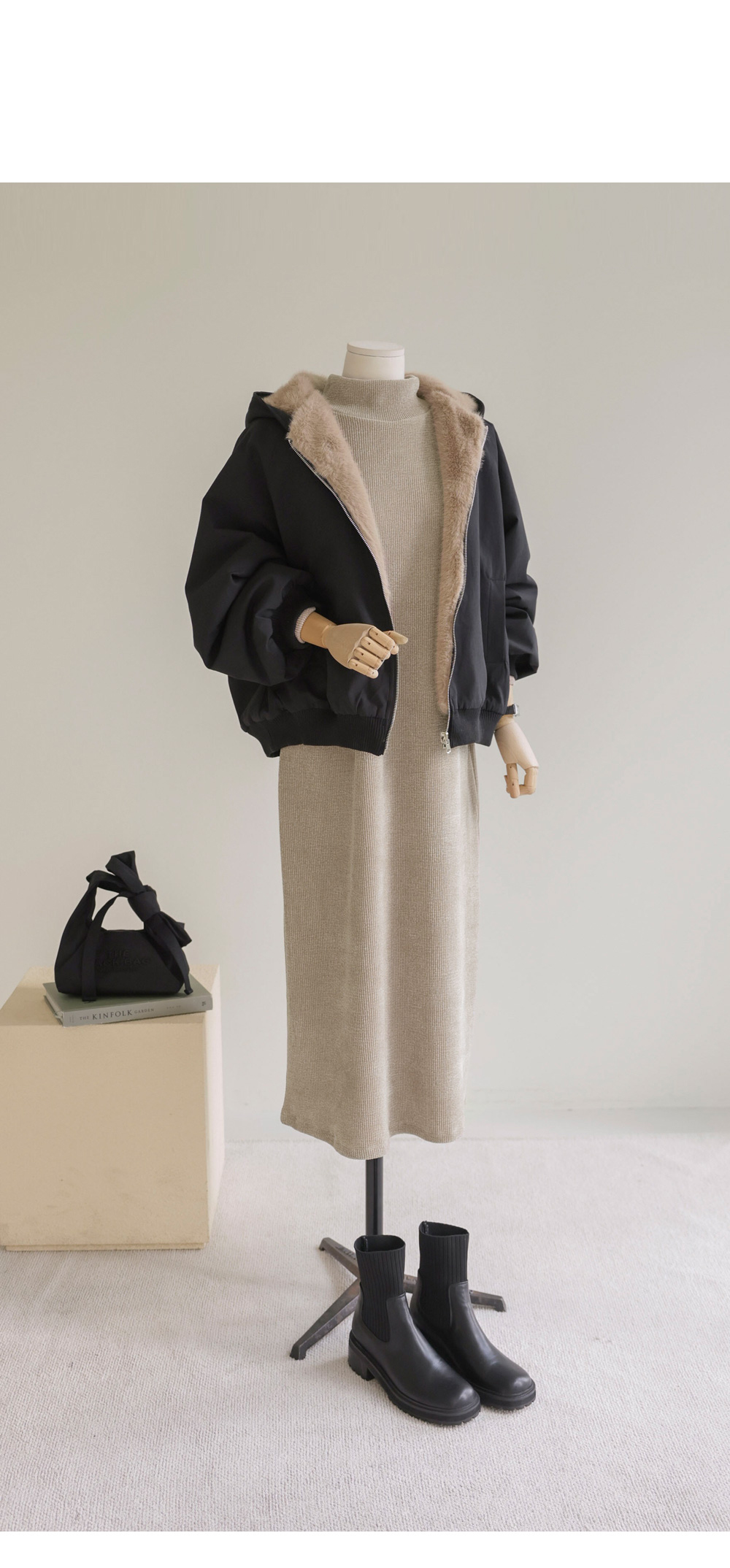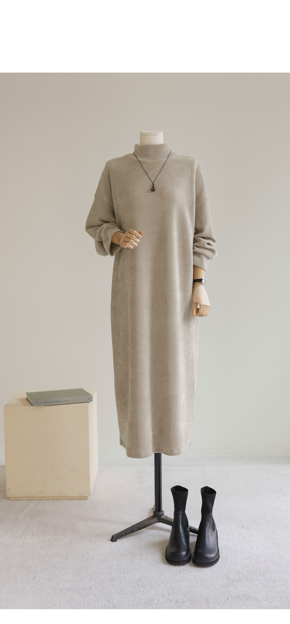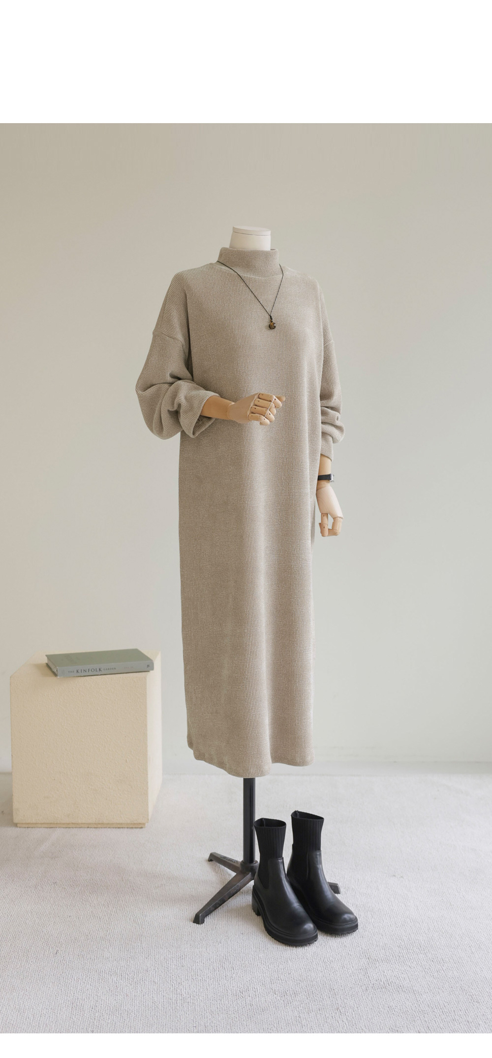소리엔 반폴라 원피스 _ 블랙,다크베이지