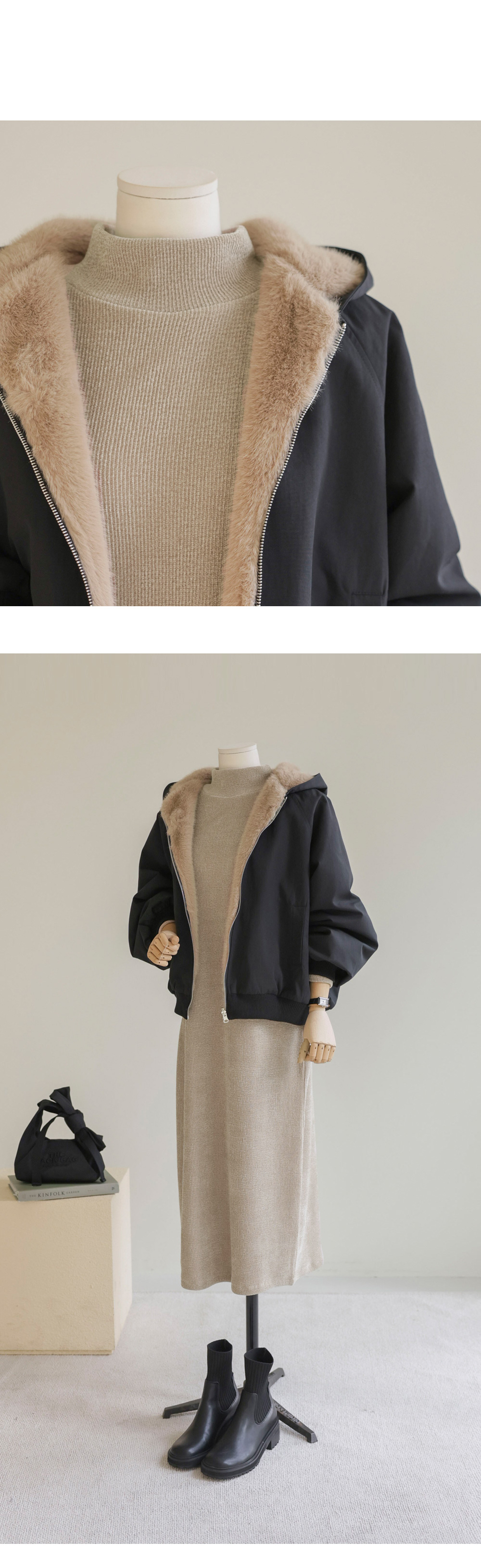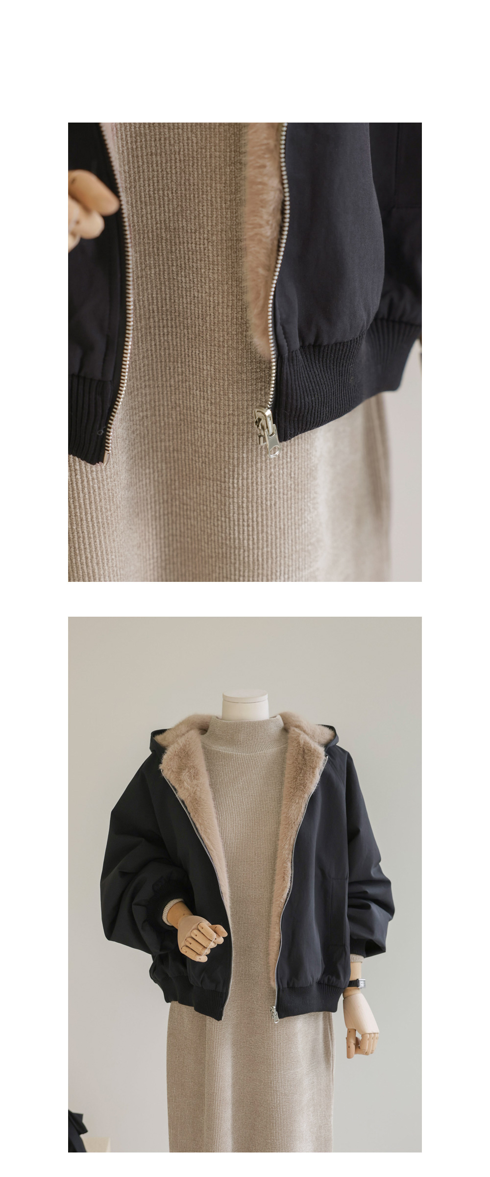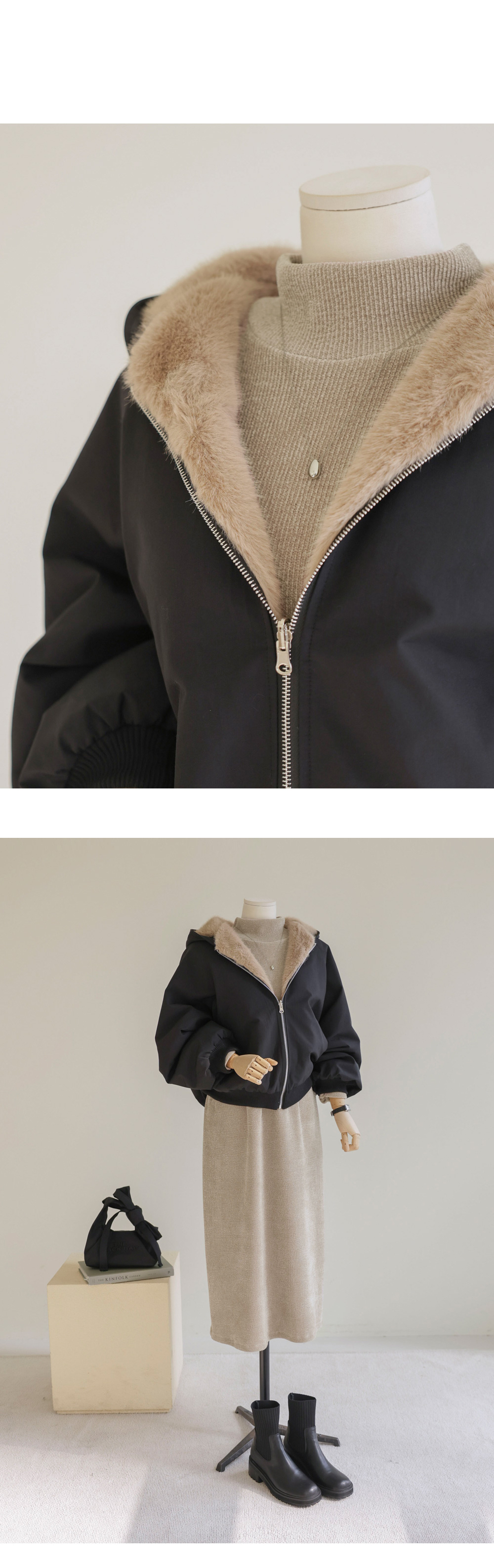 바이턴 리버서블 퍼 점퍼 _ 블랙