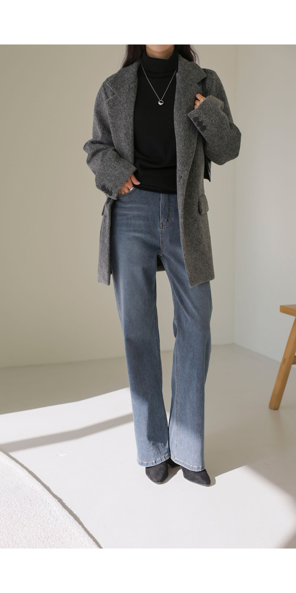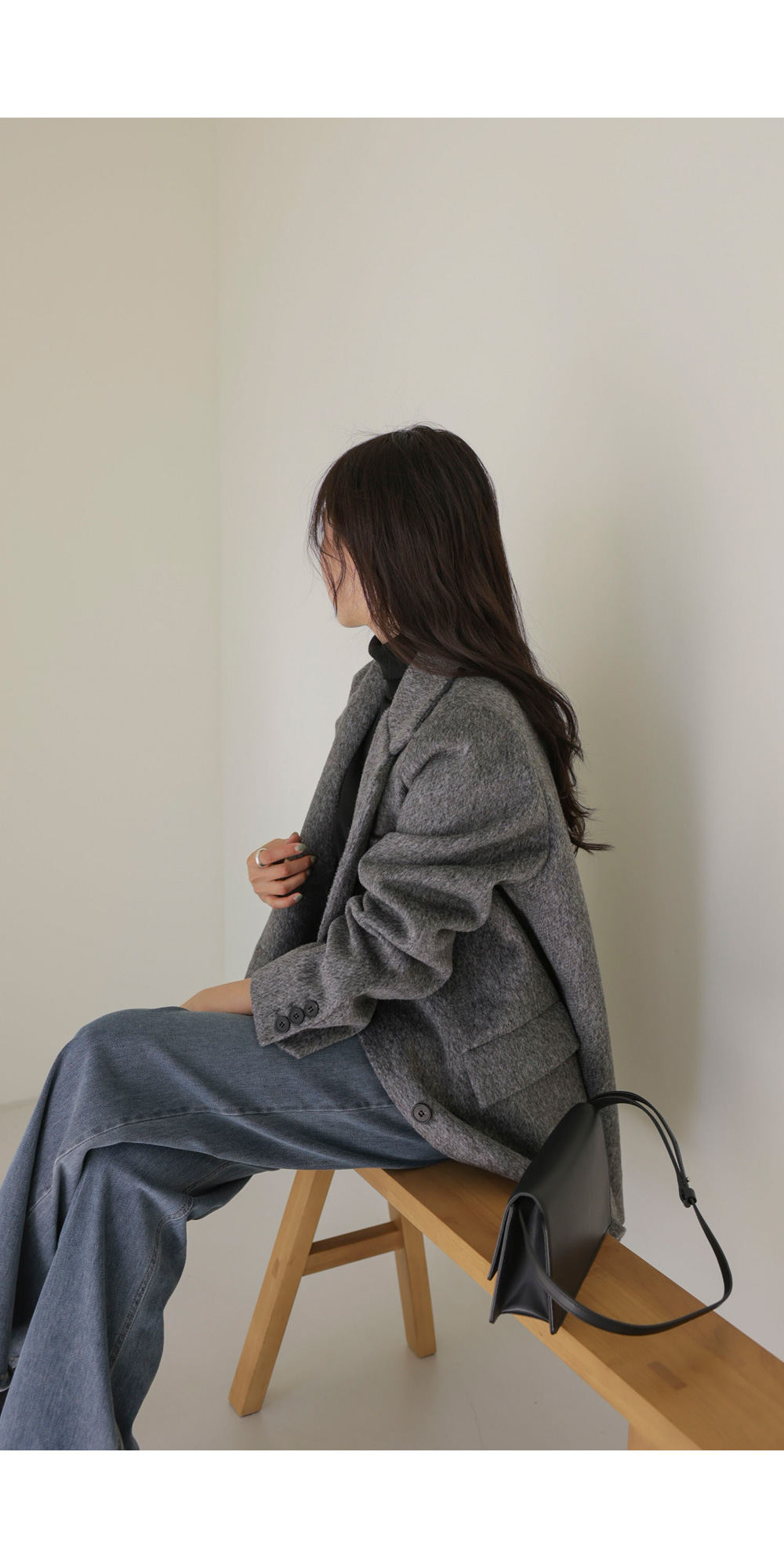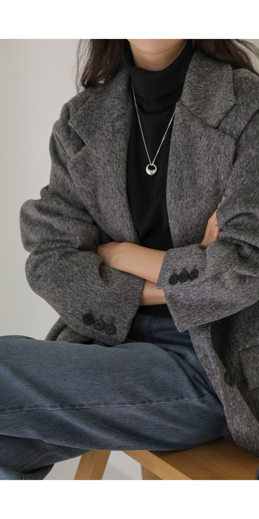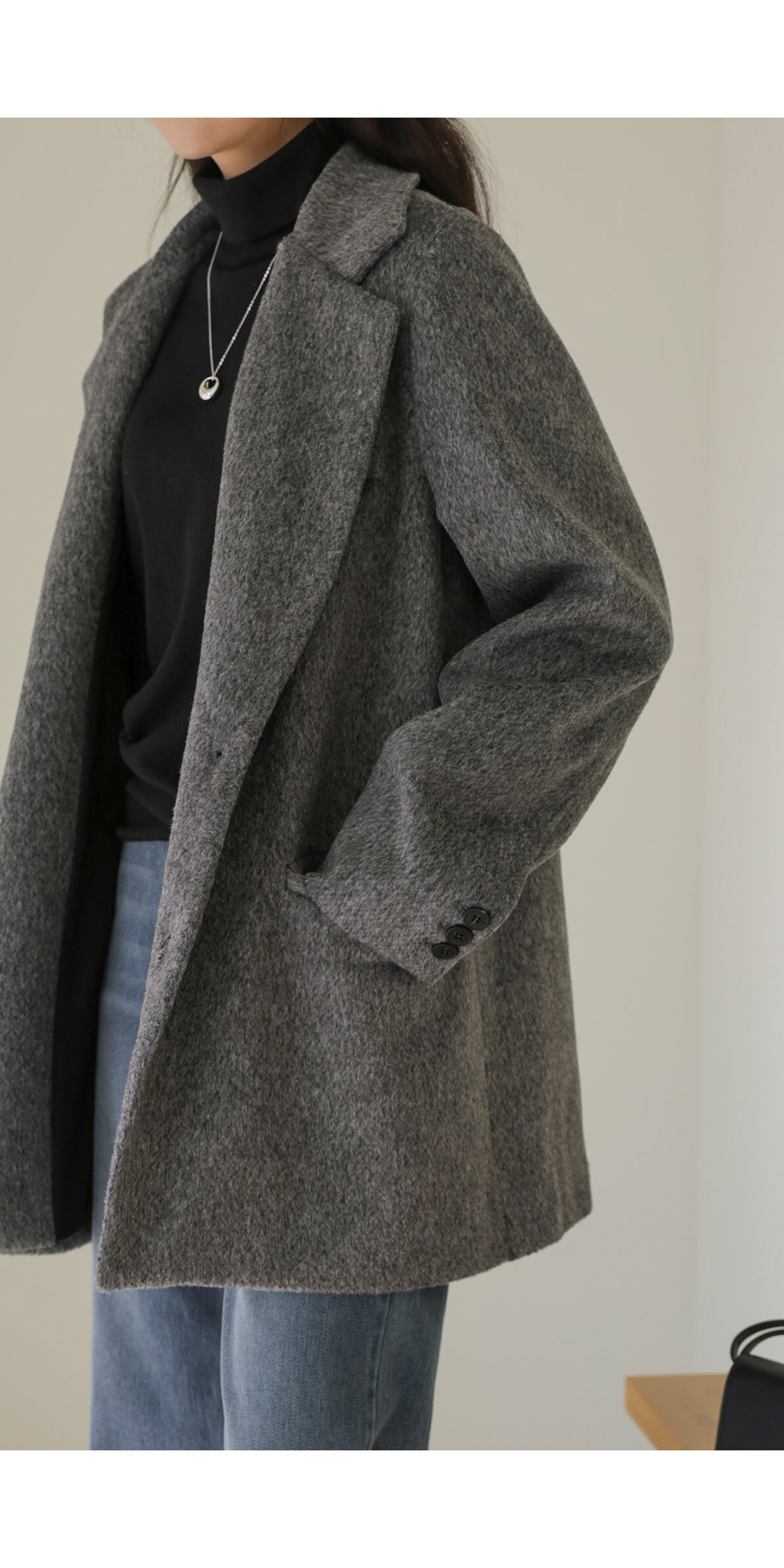 소매핏 살짝여유  /   소매길이 손덮음