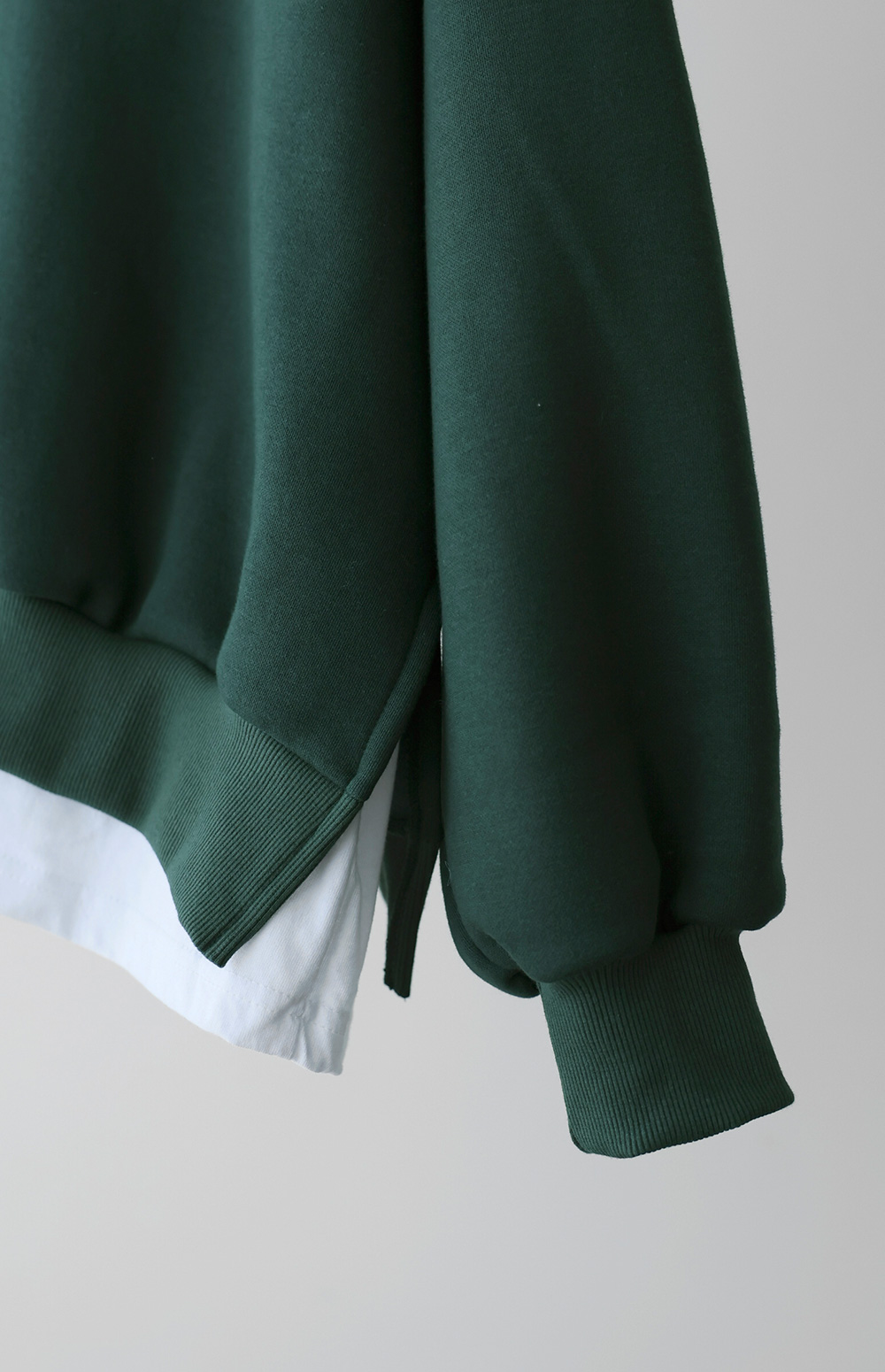 소매핏 여유  /   소매길이 손덮음