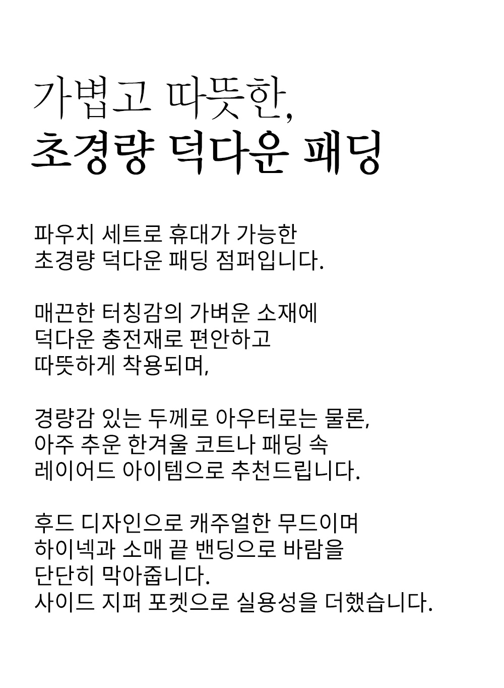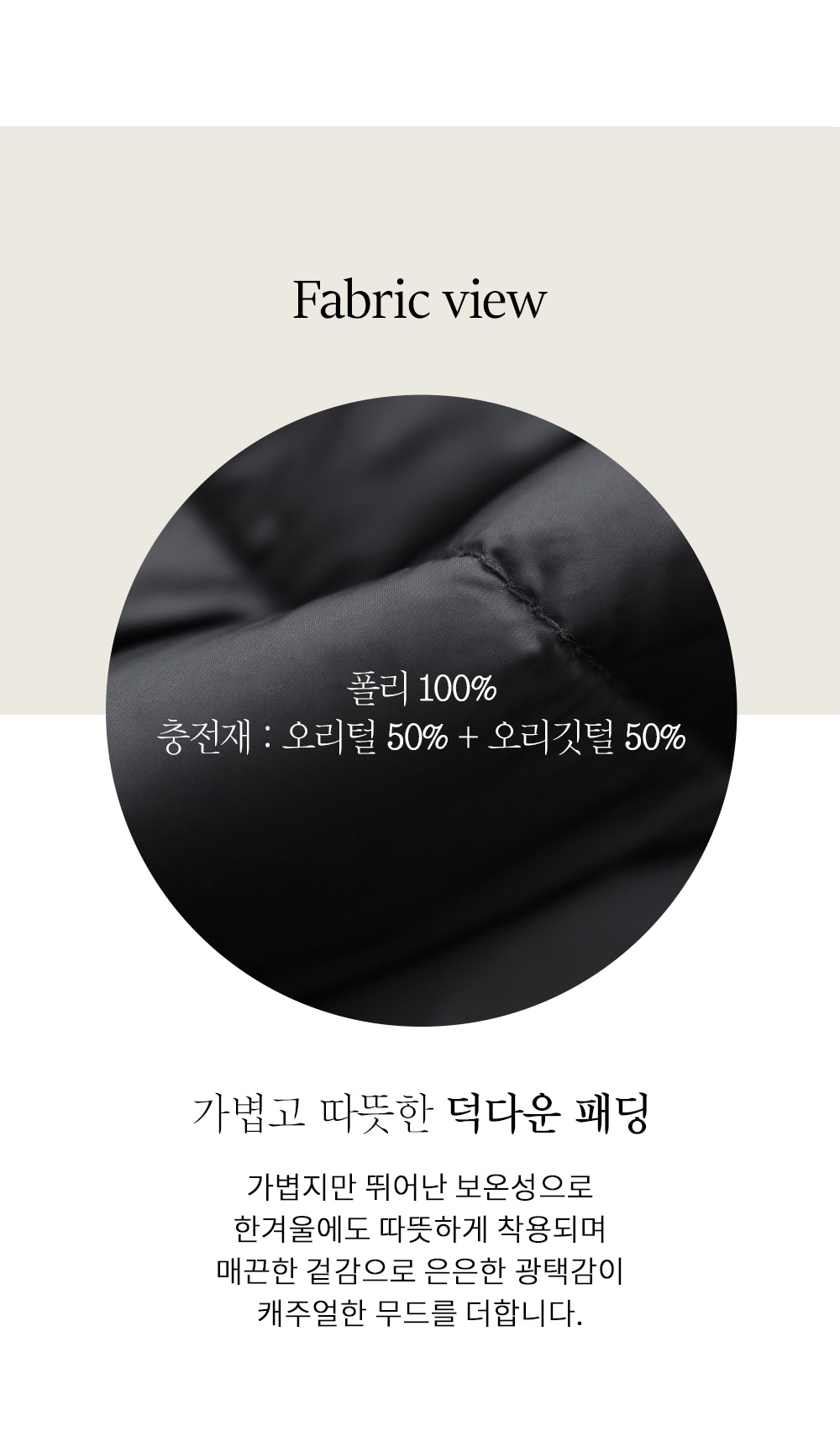 폴리100% 충전재: 오리털50%,오리깃털50%