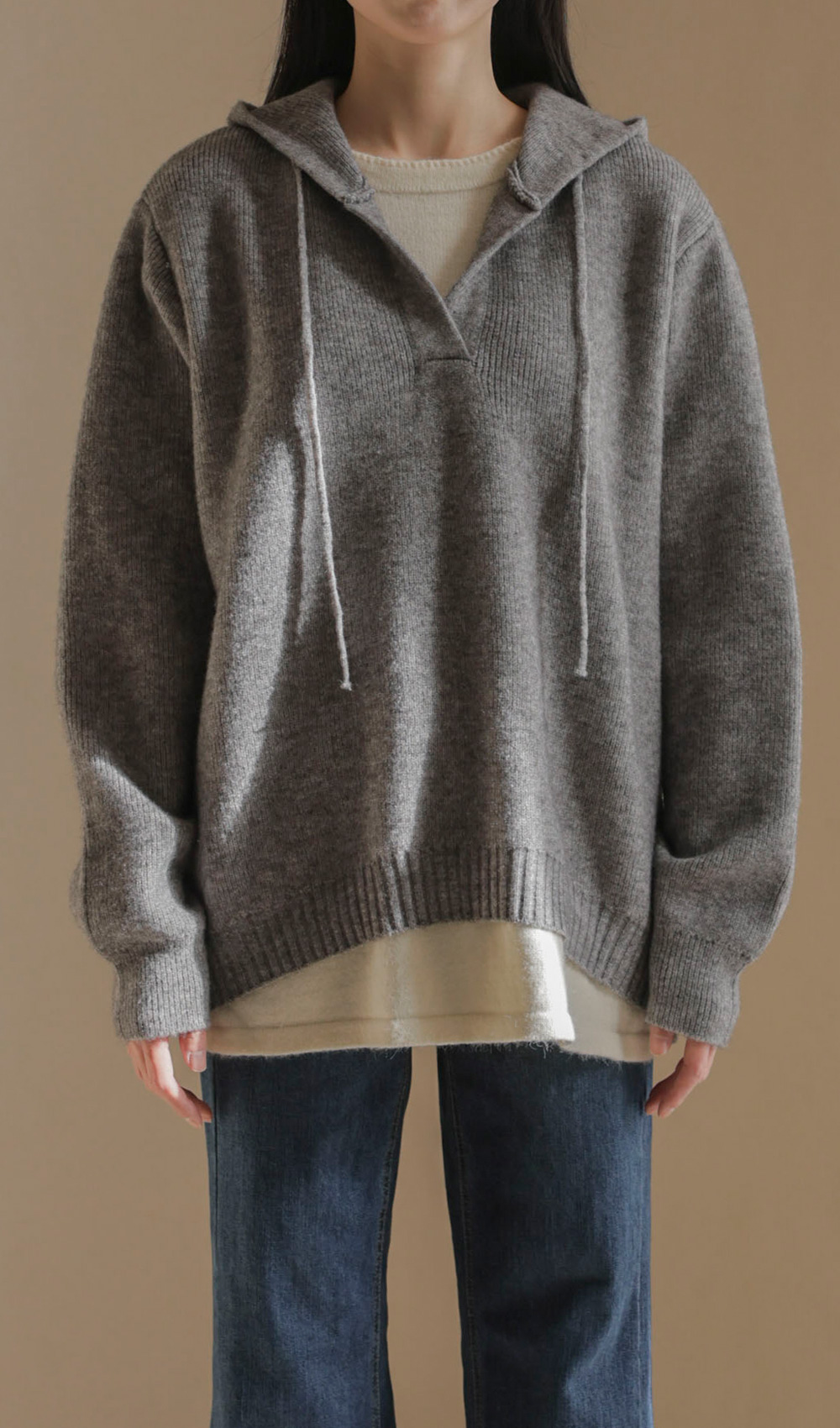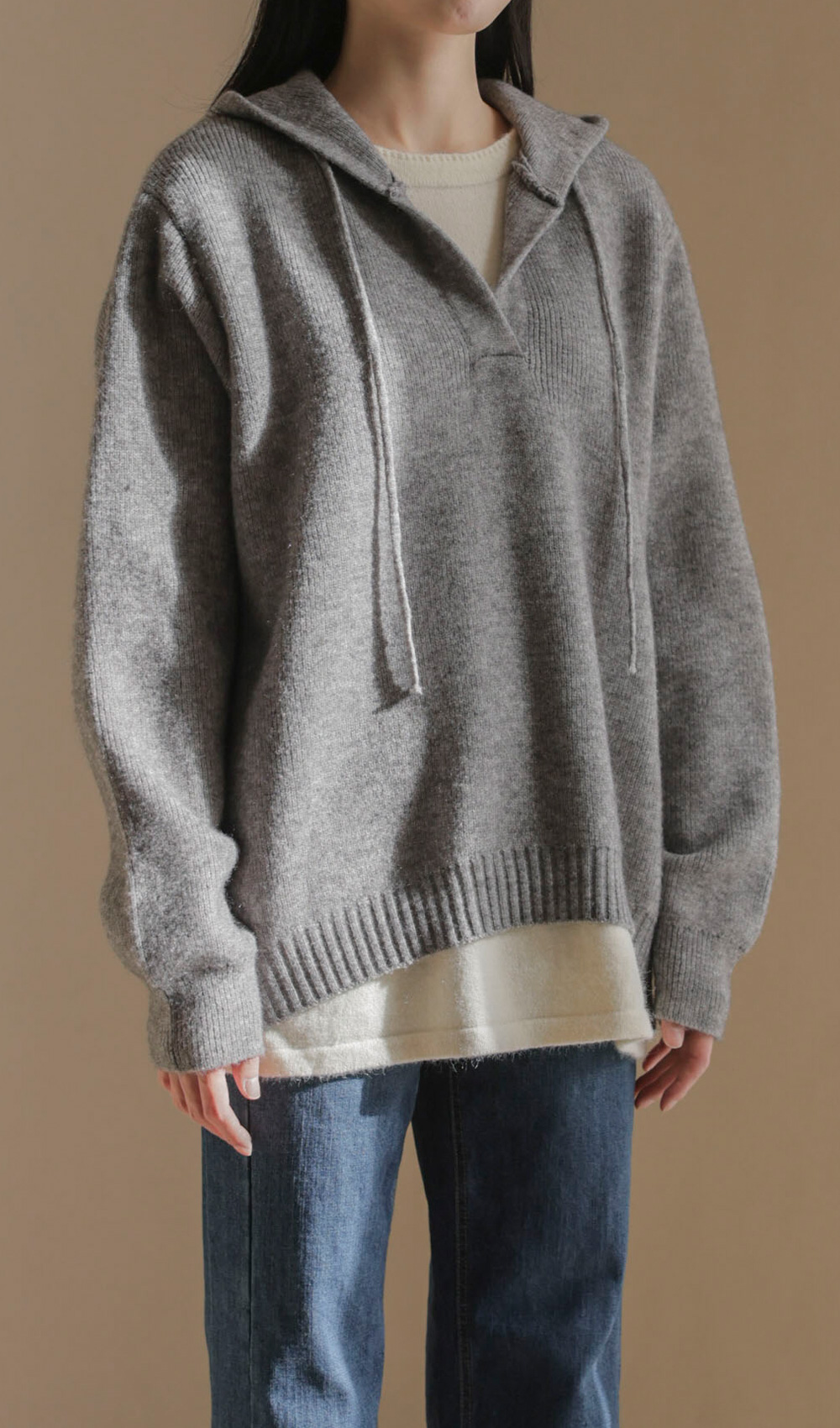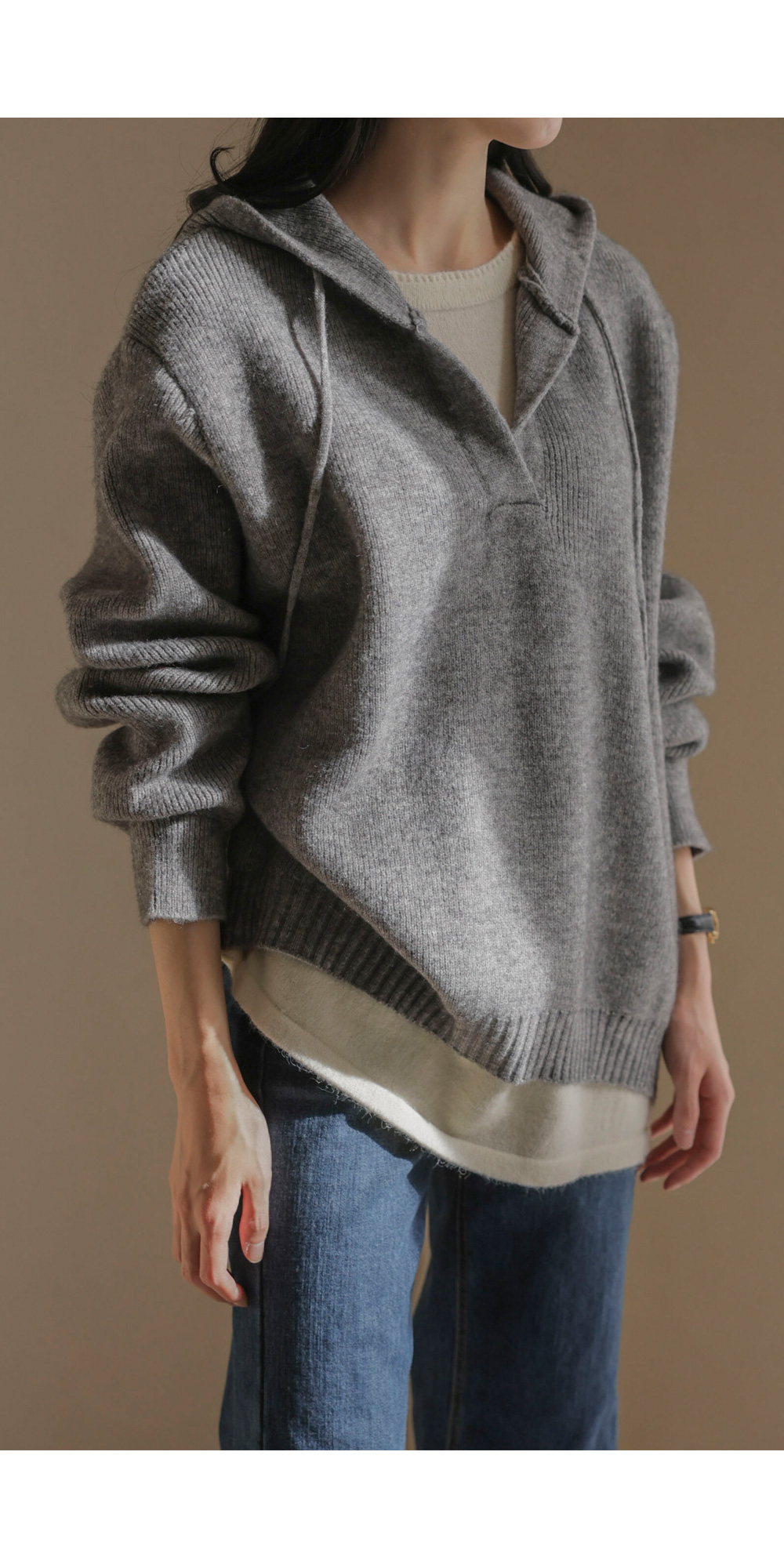 비에라 레이어드 후드니트 _ 네이비,그레이