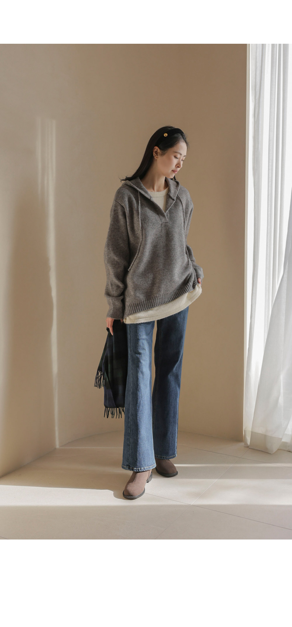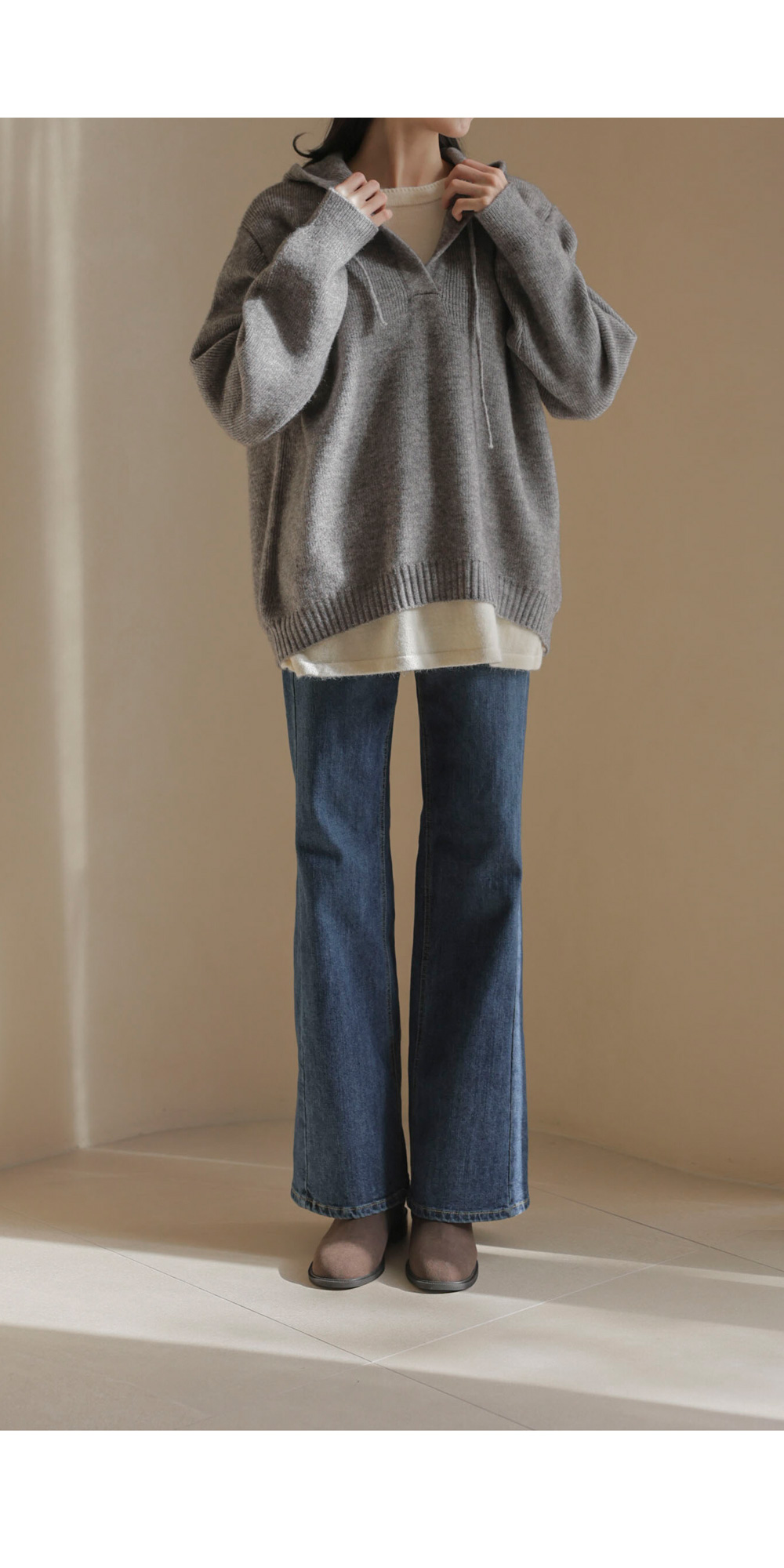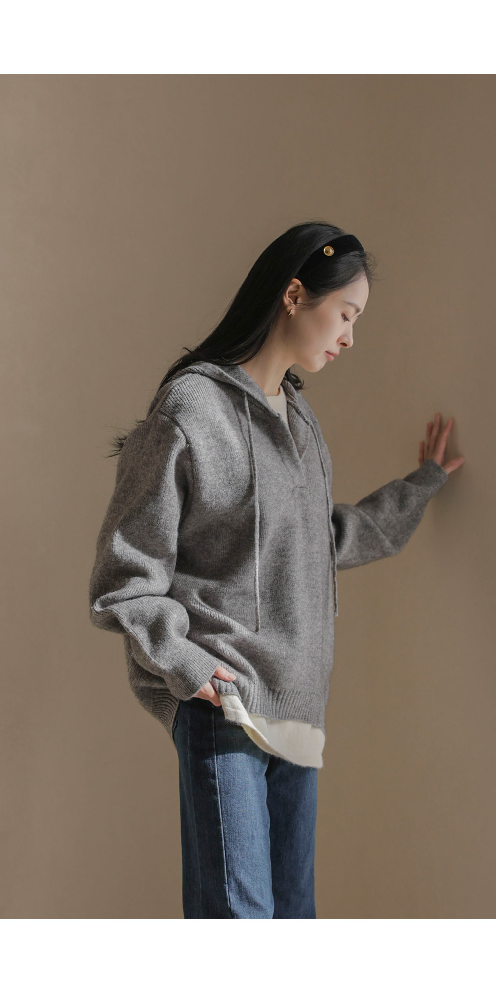 비에라 레이어드 후드니트 _ 네이비,그레이