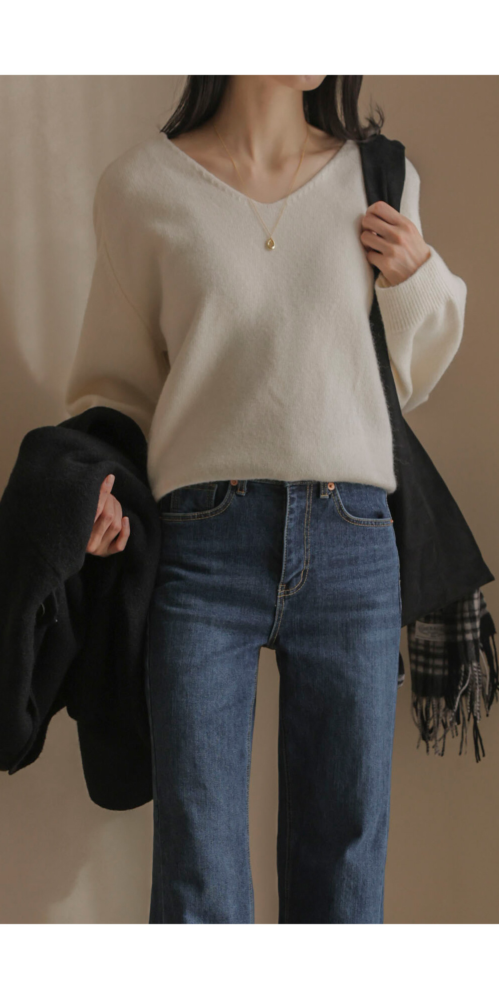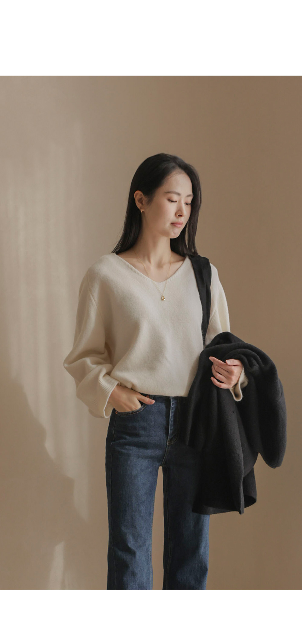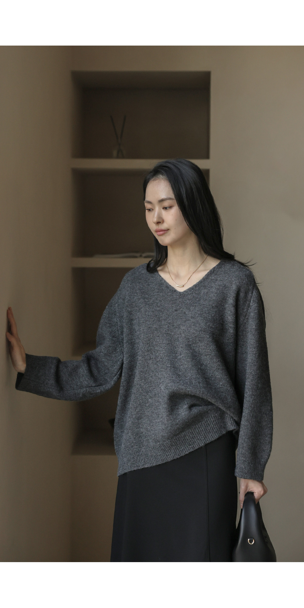 제르딕 브이넥 니트 _ 화이트,블랙,다크그레이