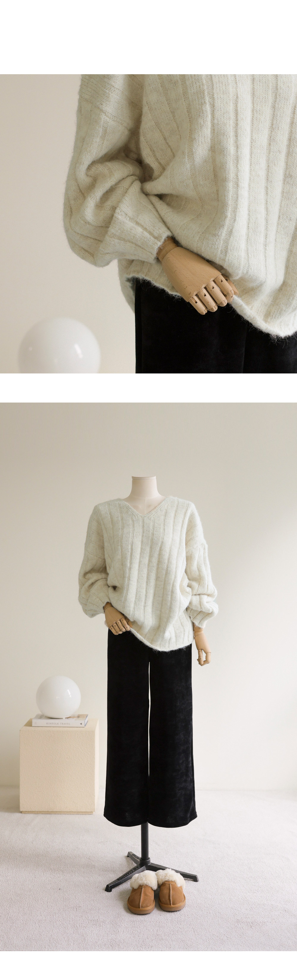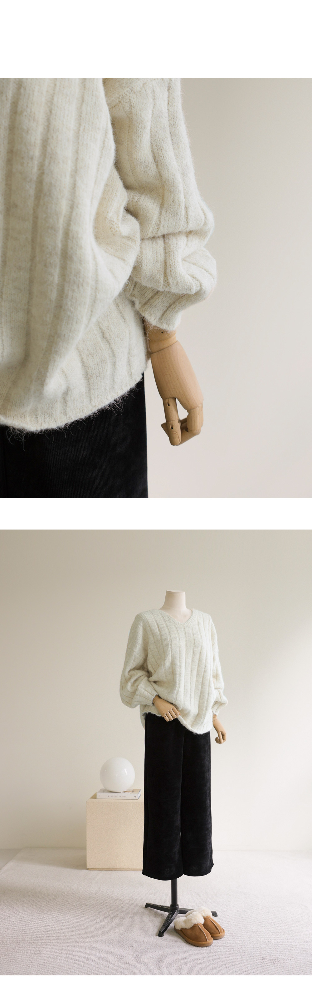 이프든 브이넥 니트 _ 아이보리