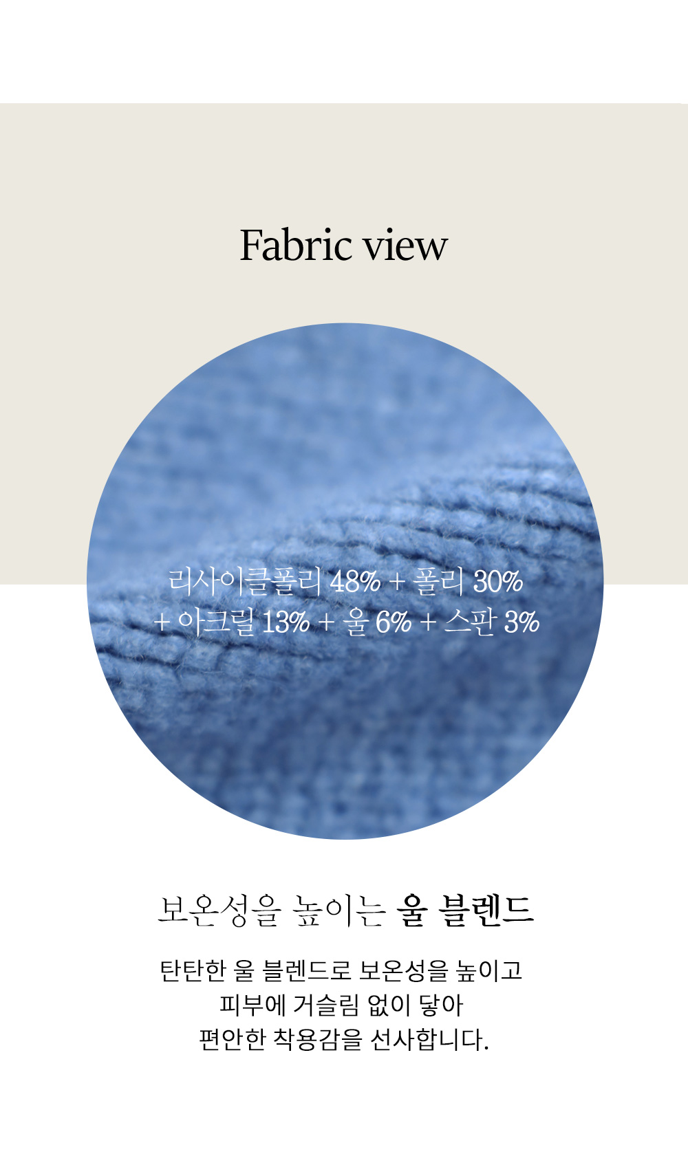 리사이클폴리48%,폴리30%,아크릴13%,울6%,스판3%