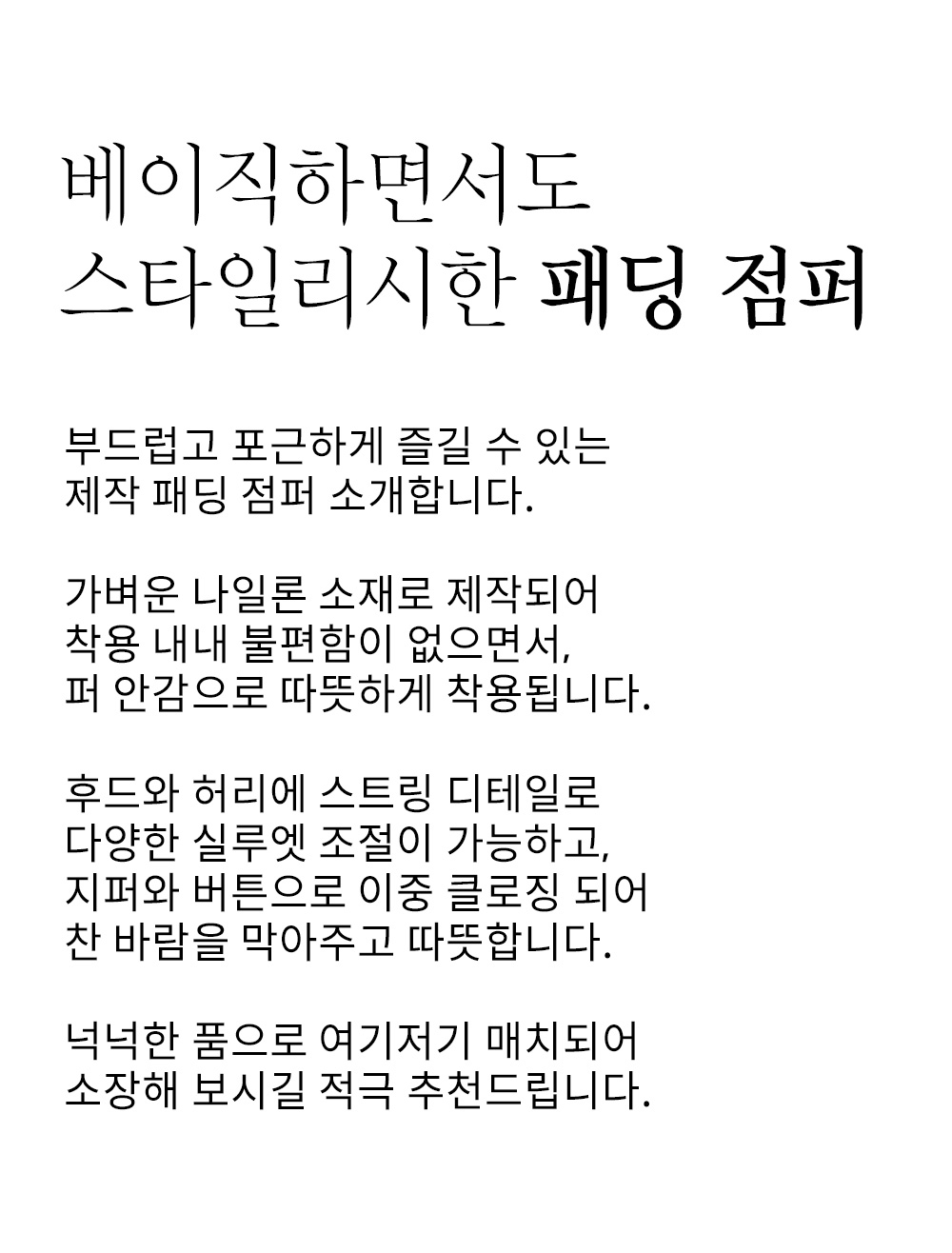 핏감 살짝루즈  /   전체길이 힙덮음  /