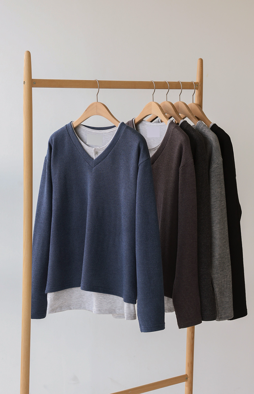 루메르 브이넥 티셔츠 _ 블루,블랙