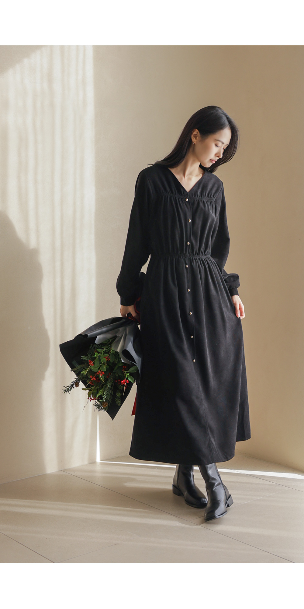 젠토리 브이넥 원피스 _ 블랙