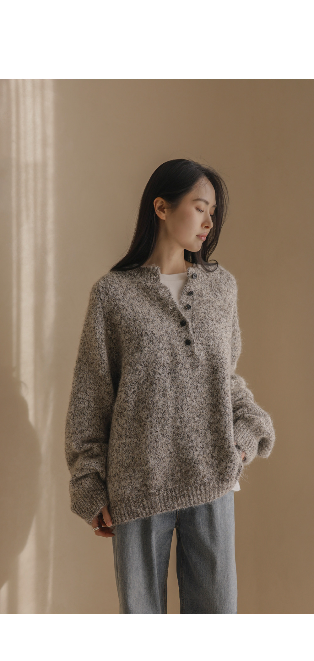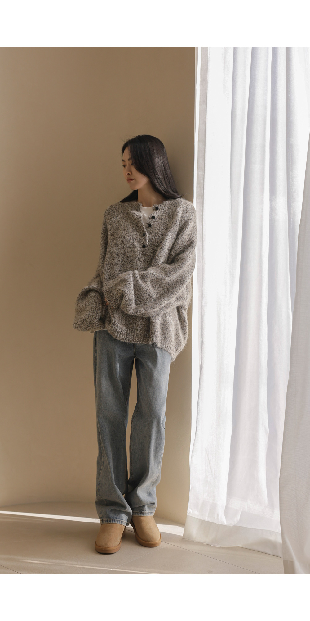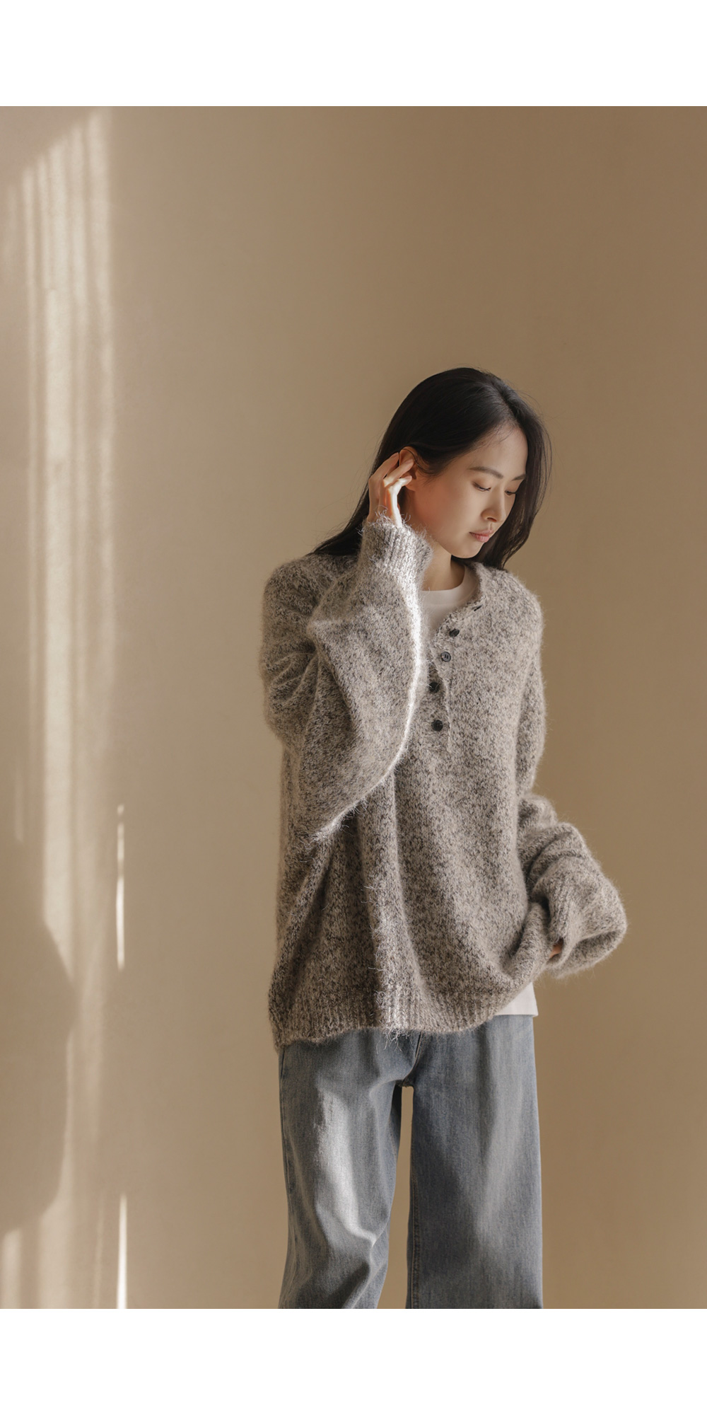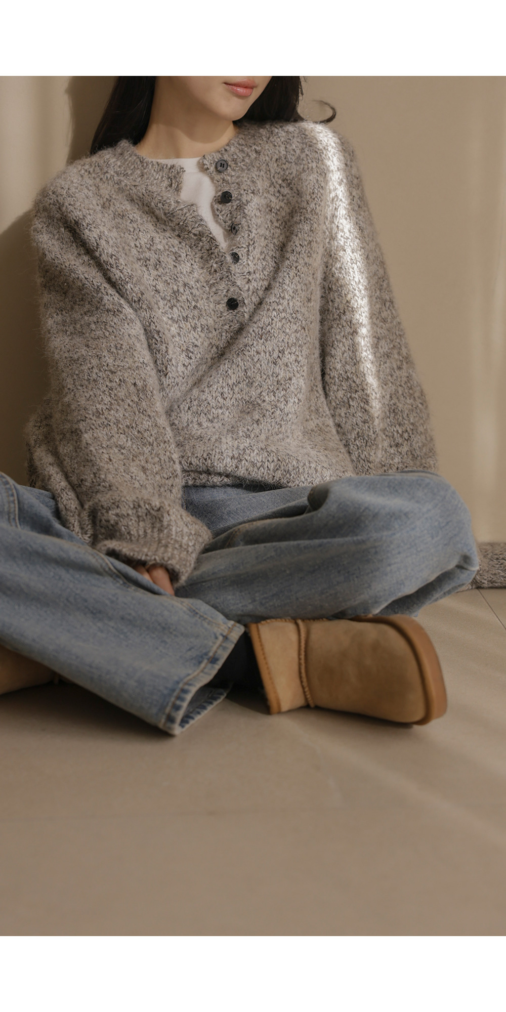 엘리노 버튼 니트 _ 차콜,베이지