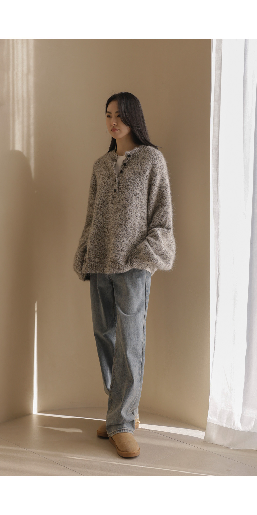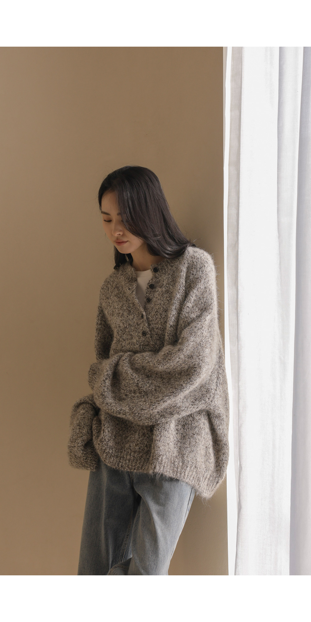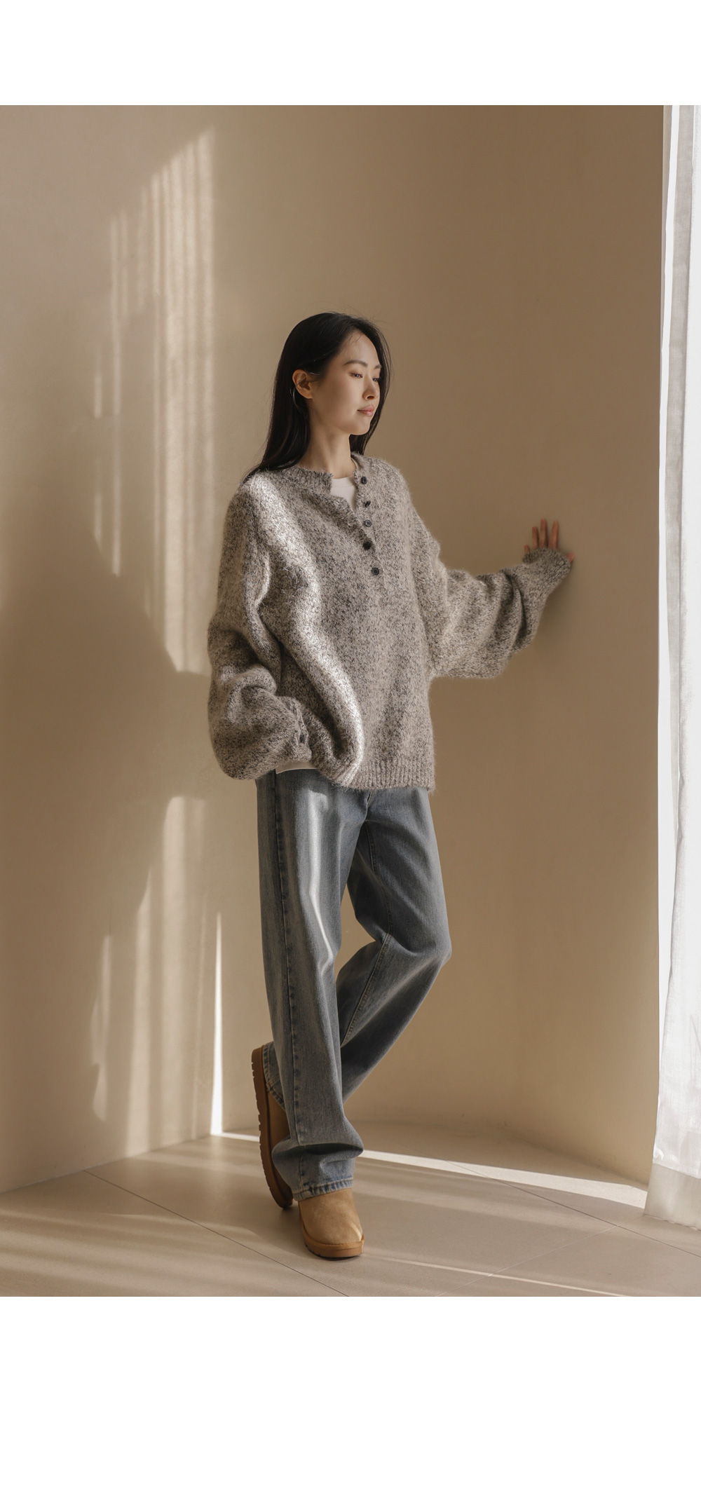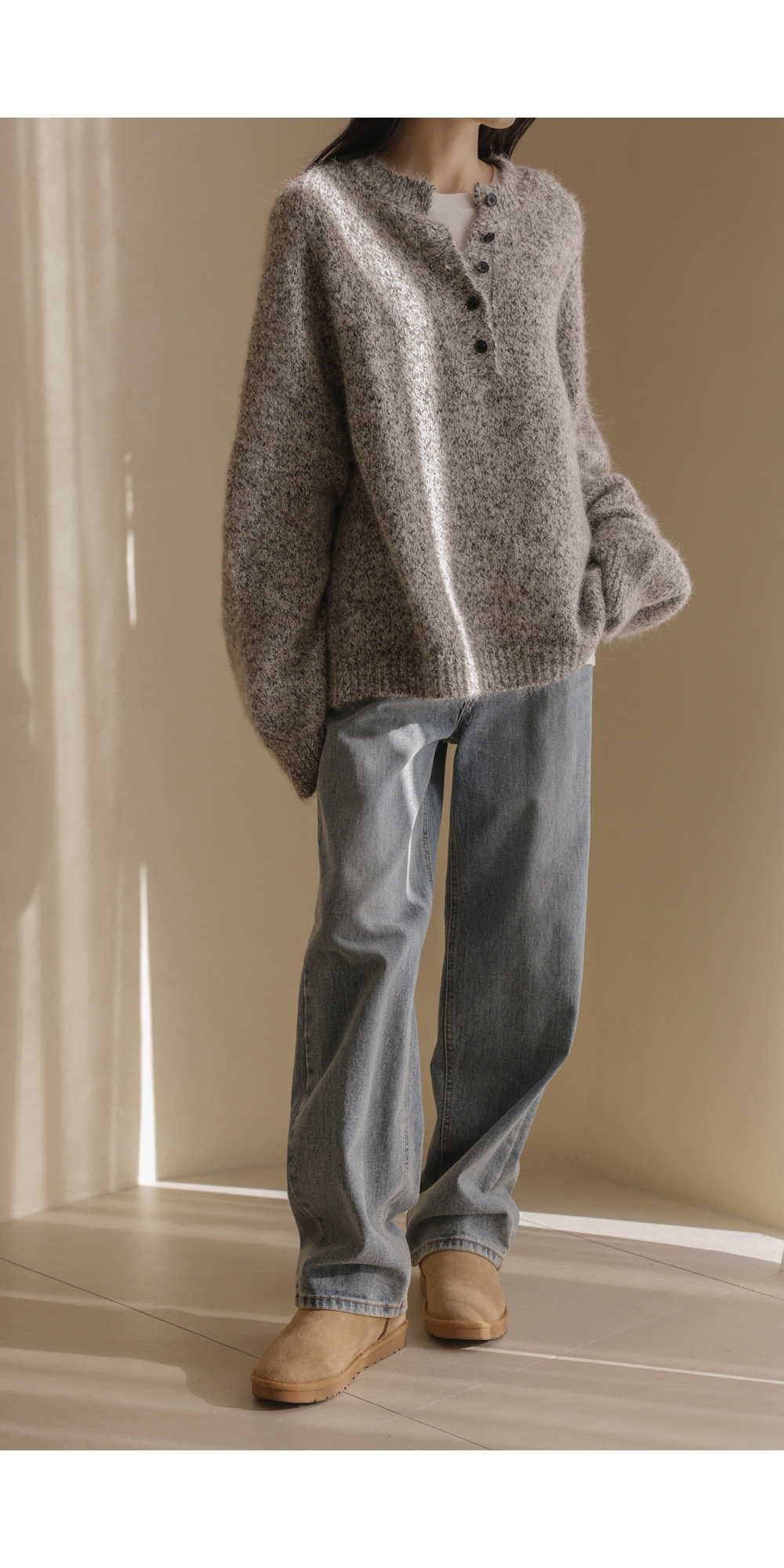 엘리노 버튼 니트 _ 차콜,베이지