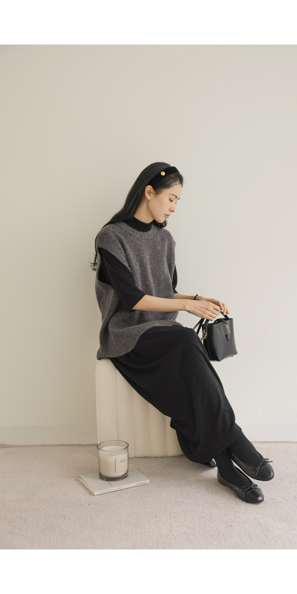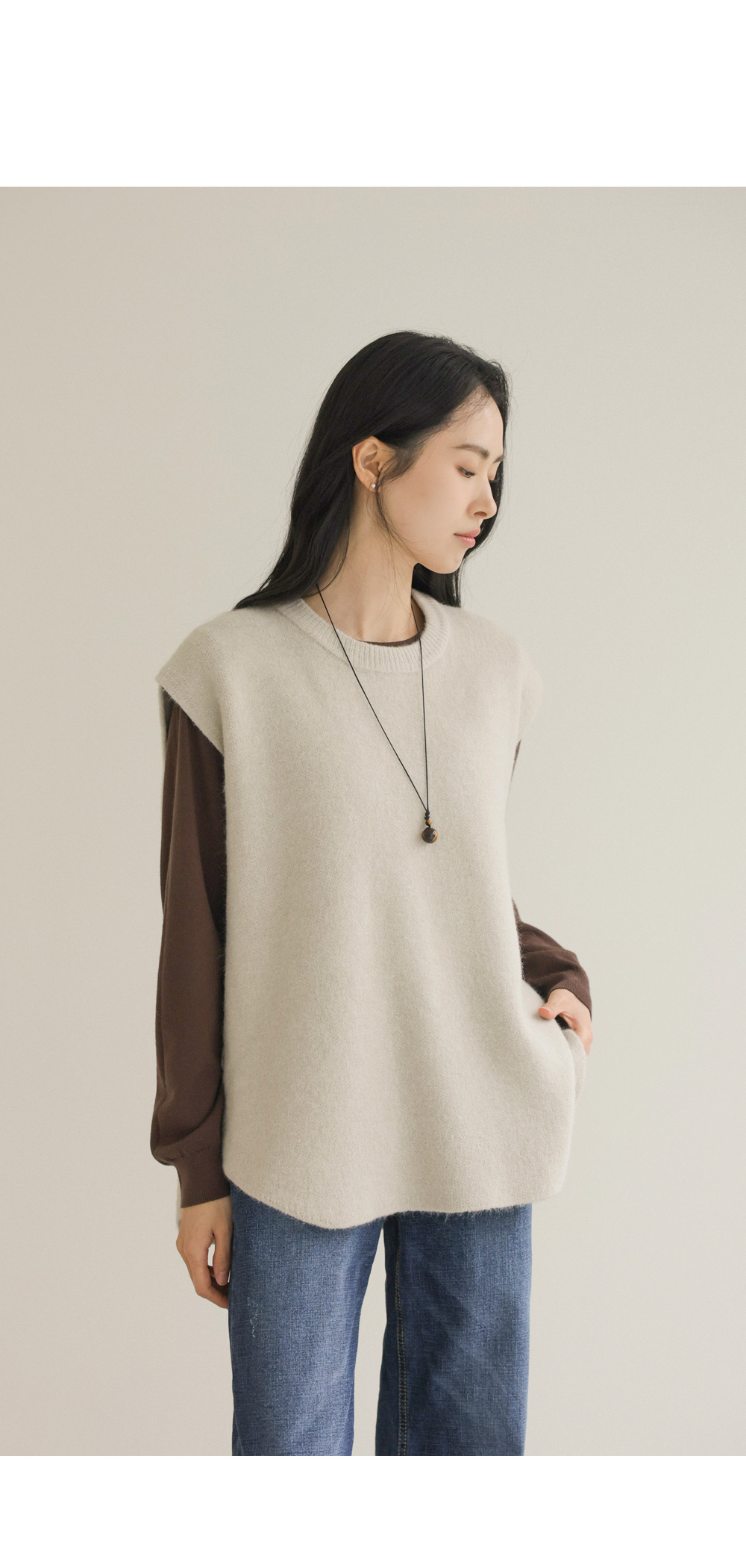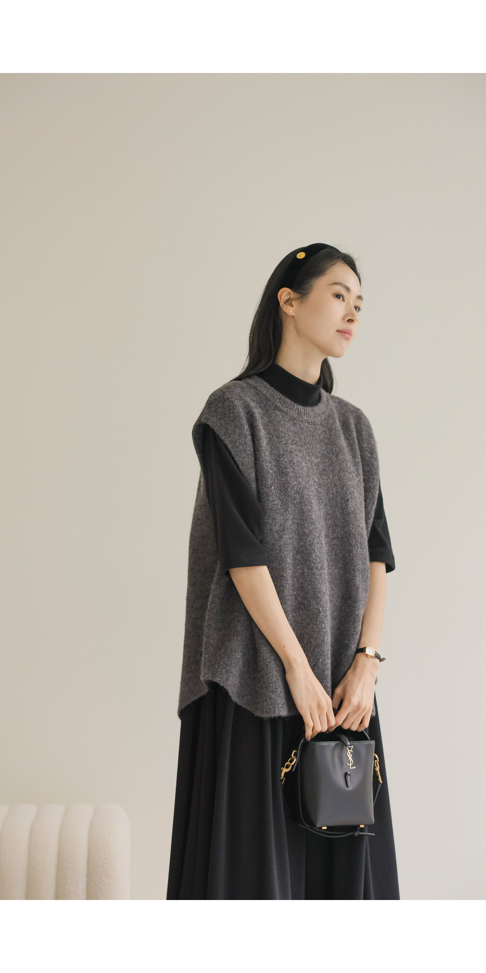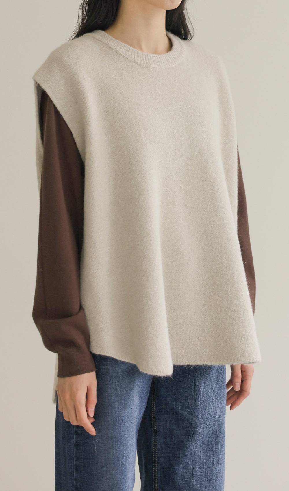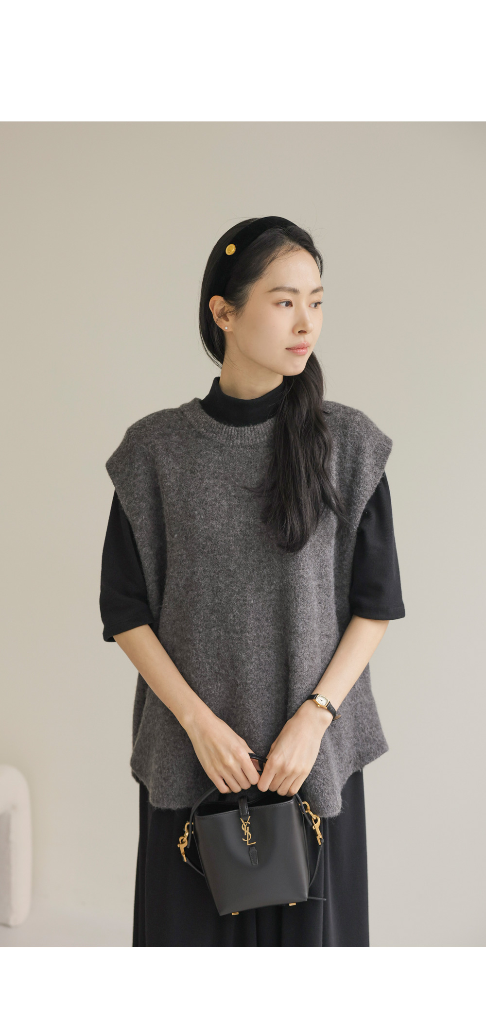 나레온 울 니트조끼 _ 아이보리,차콜