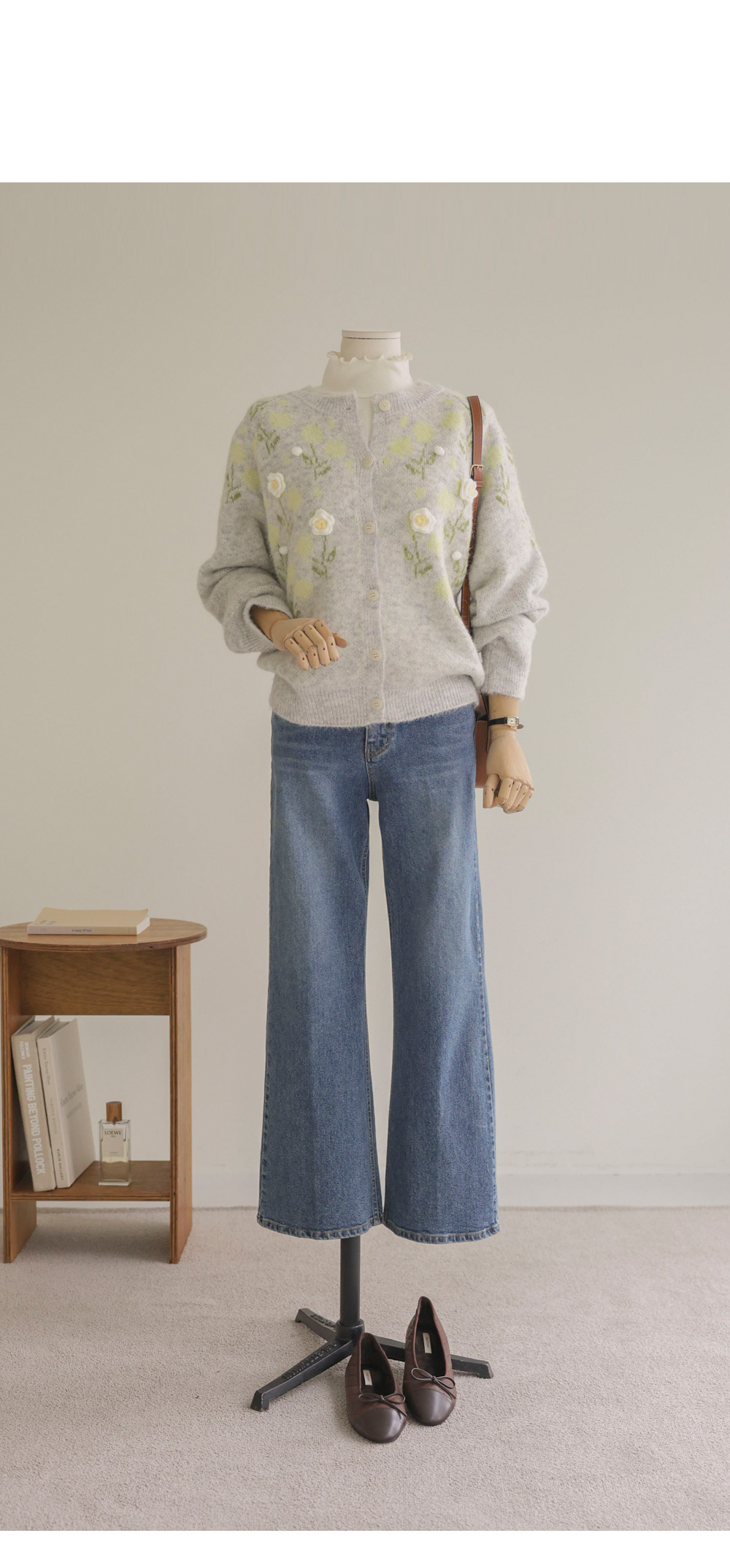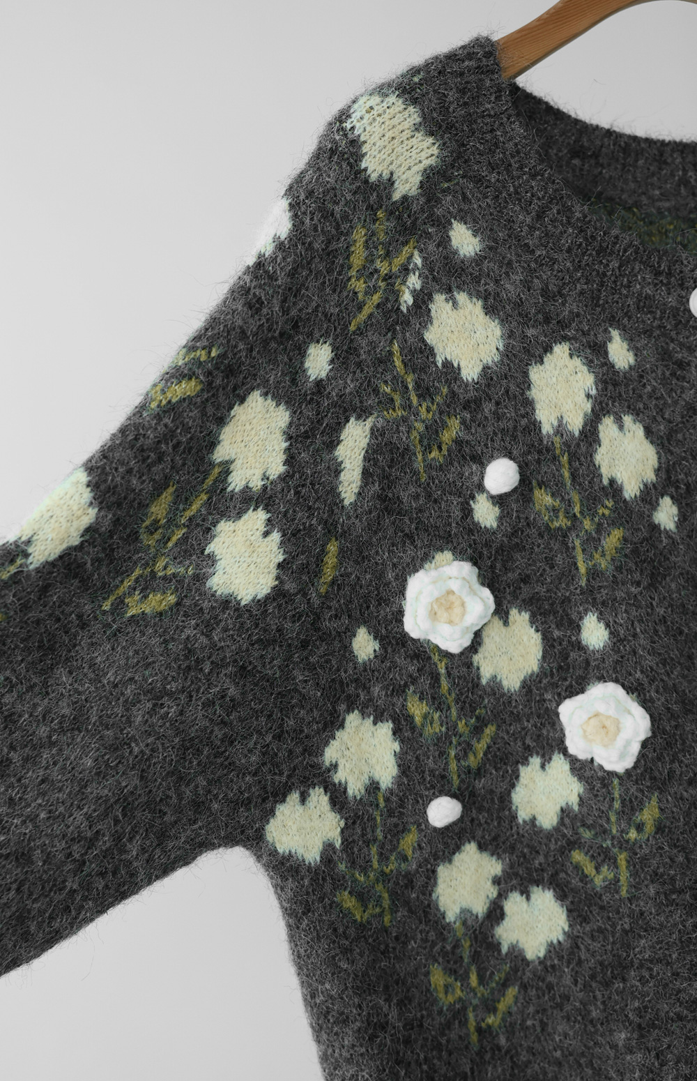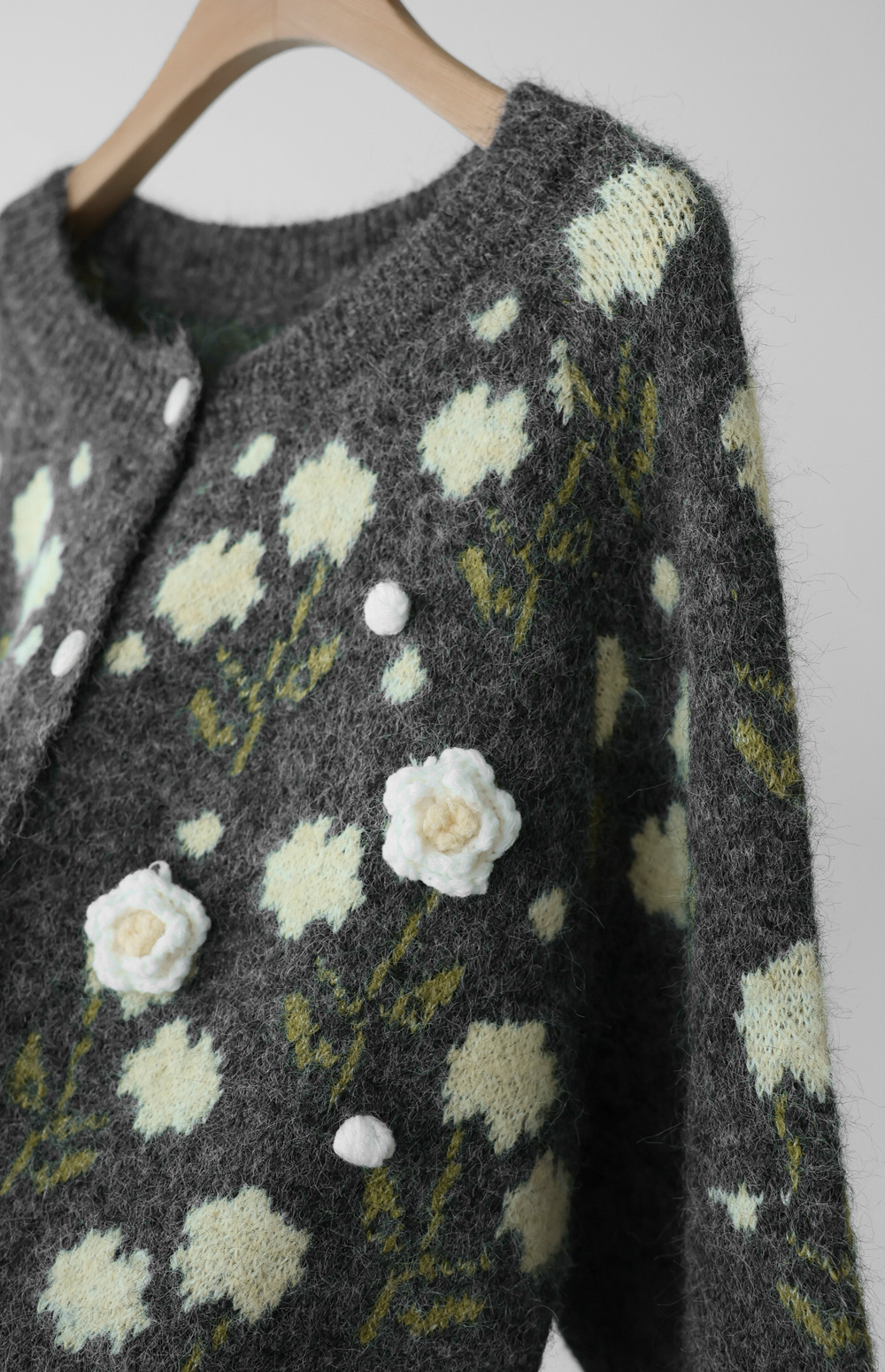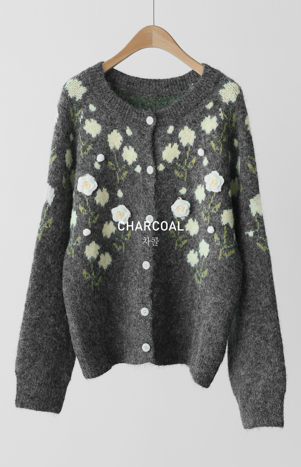 이테스 플라워 가디건 _ 라이트그레이
