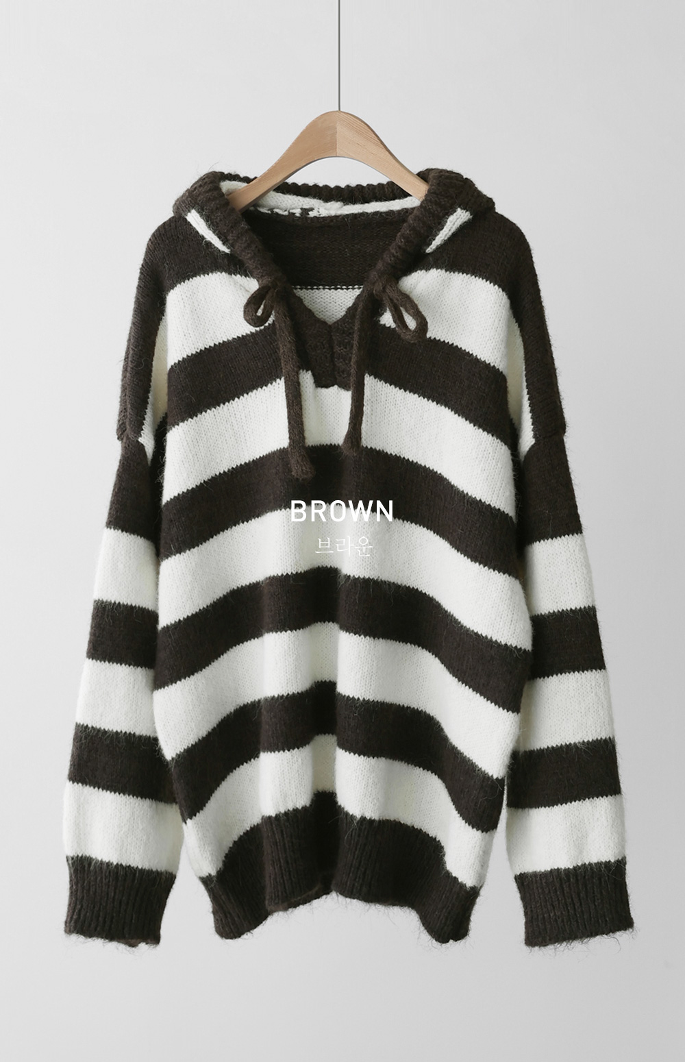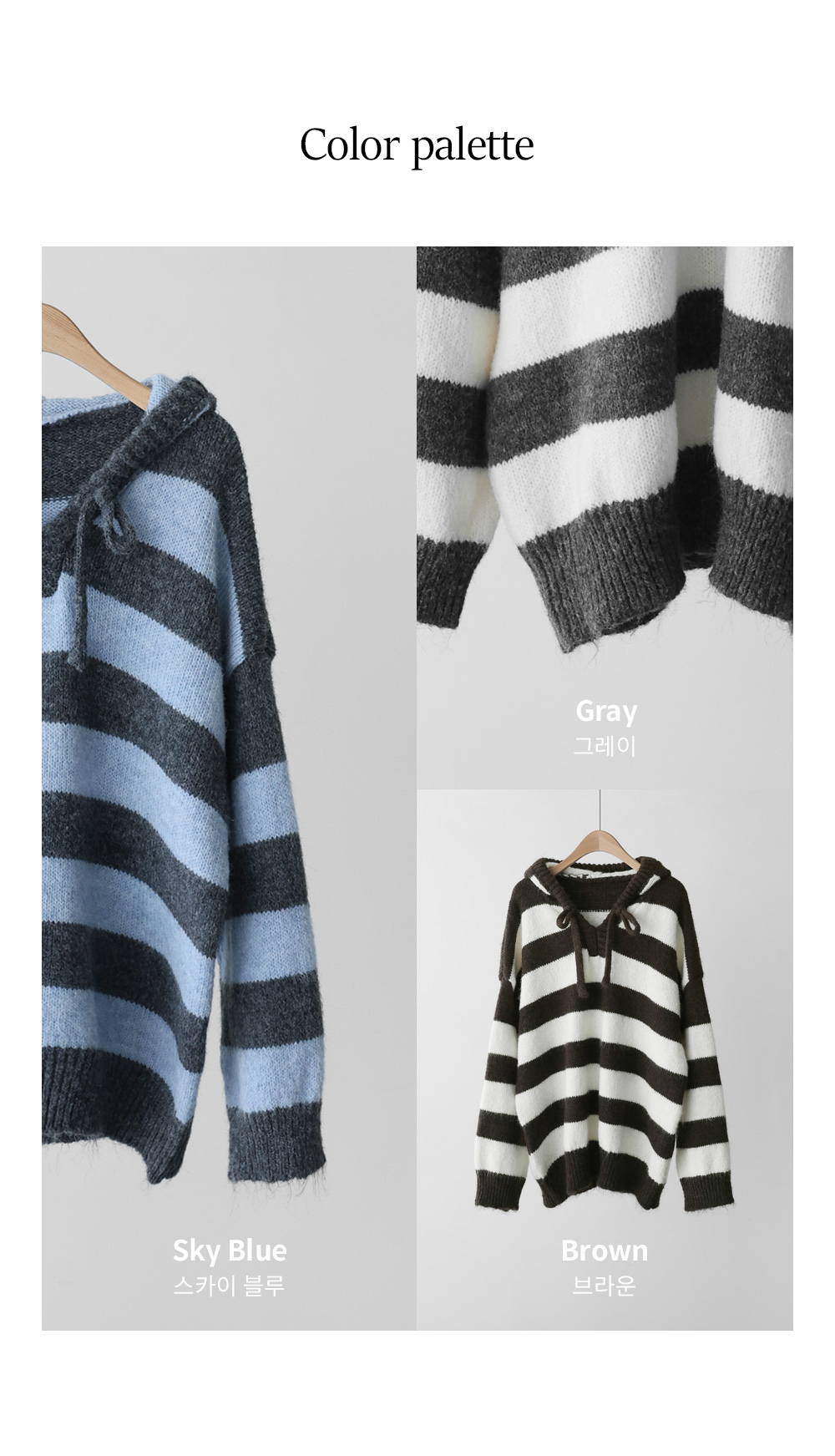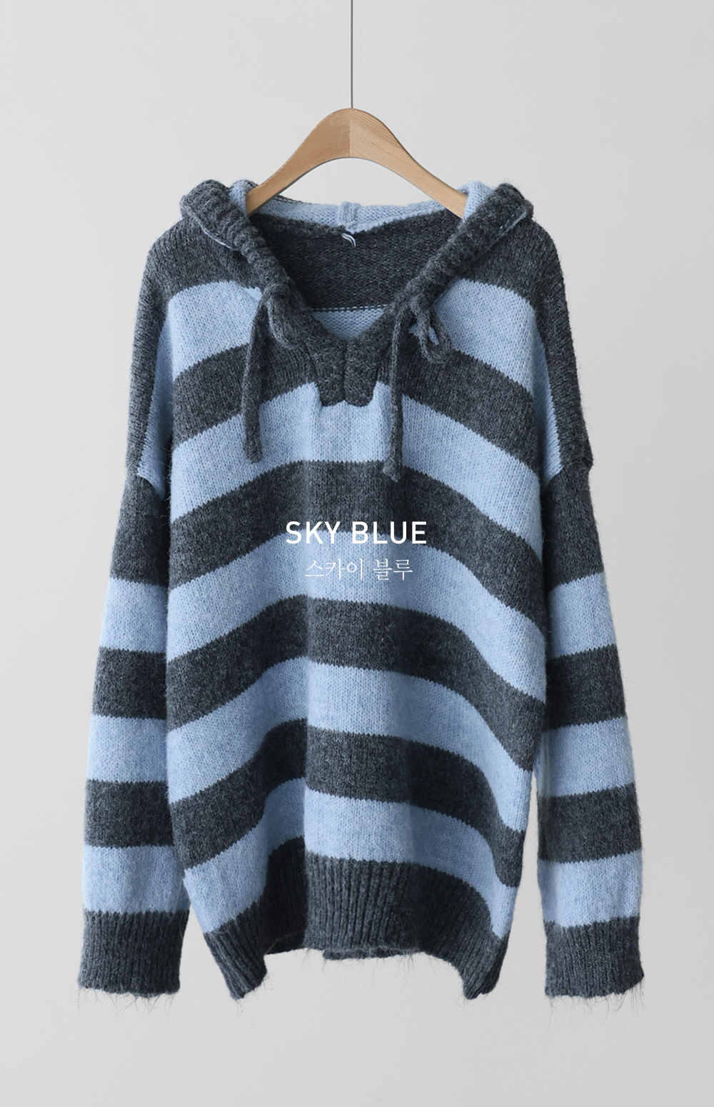 데리온 단가라 후드니트 _ 브라운,스카이블루