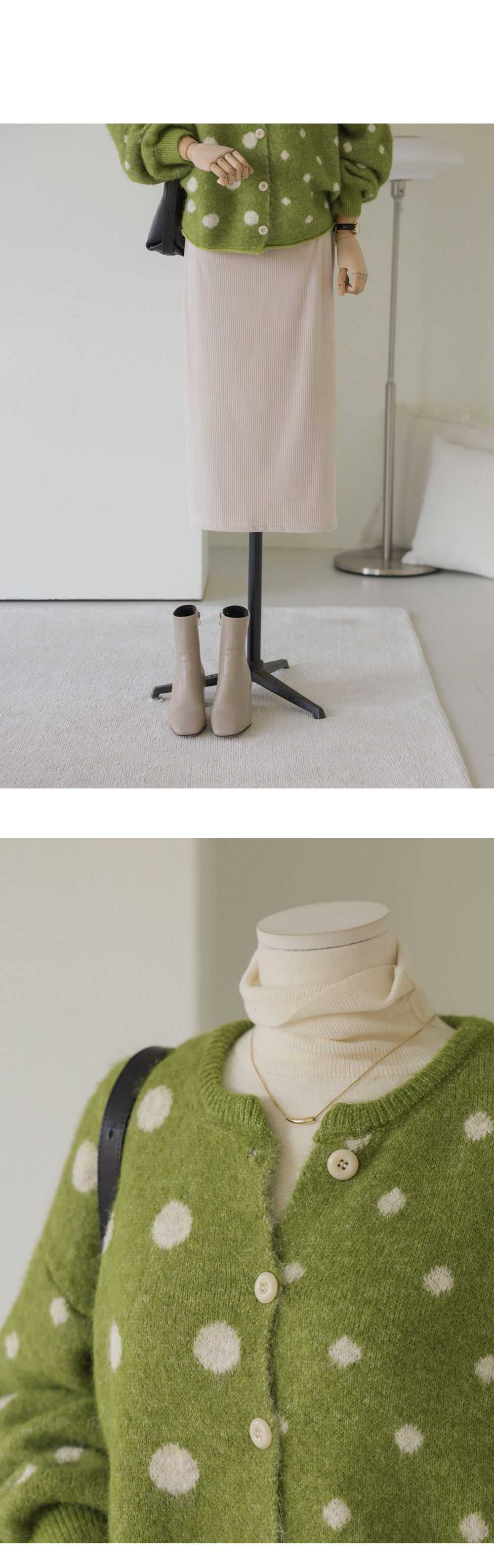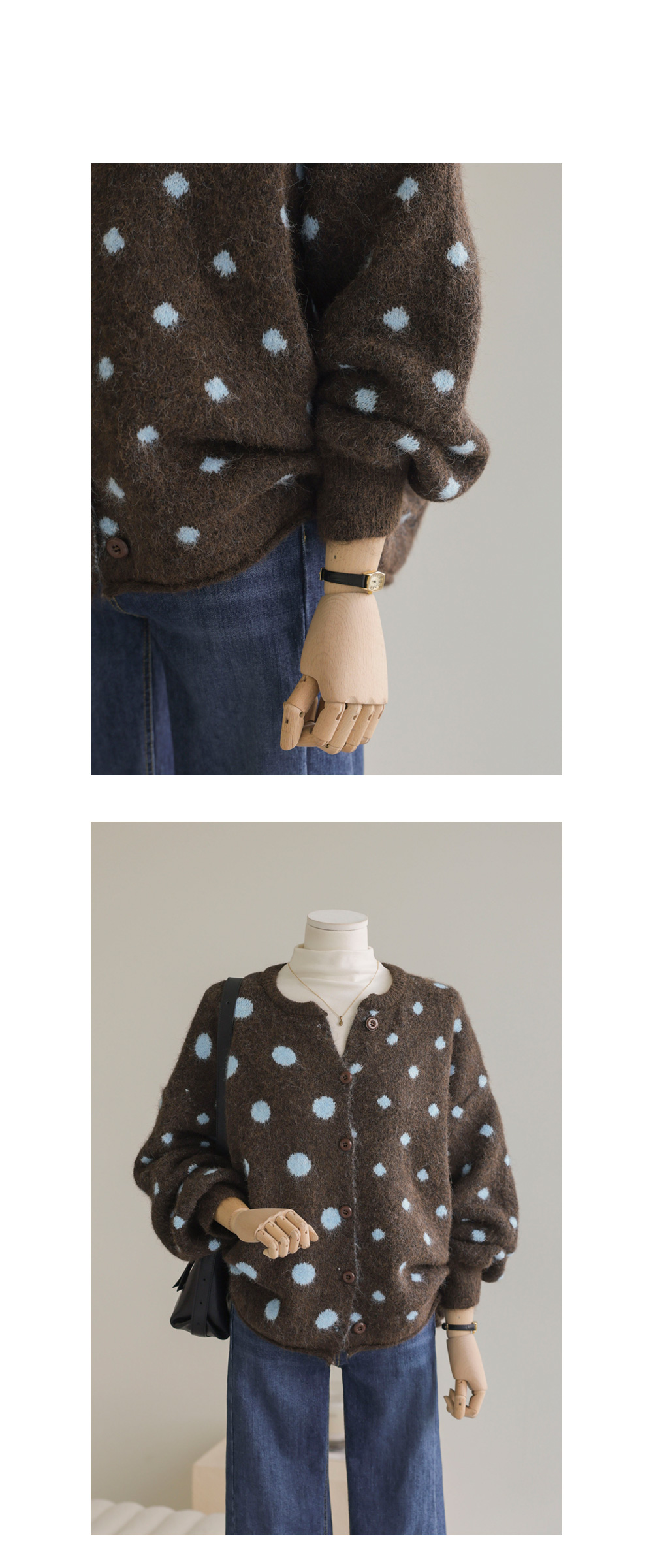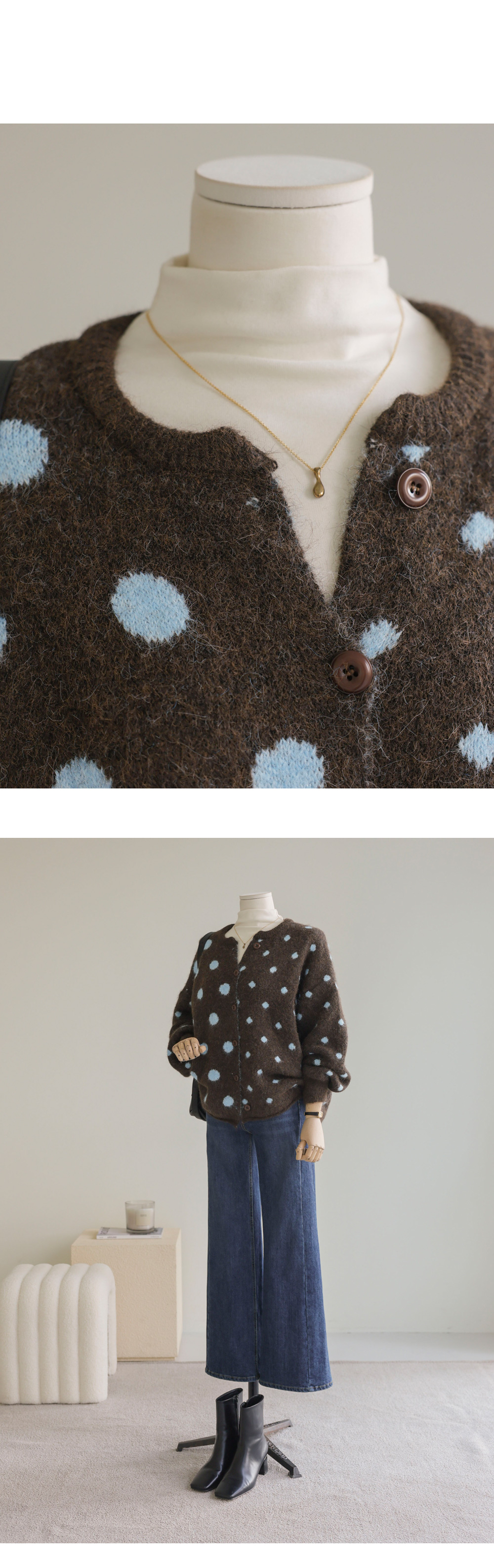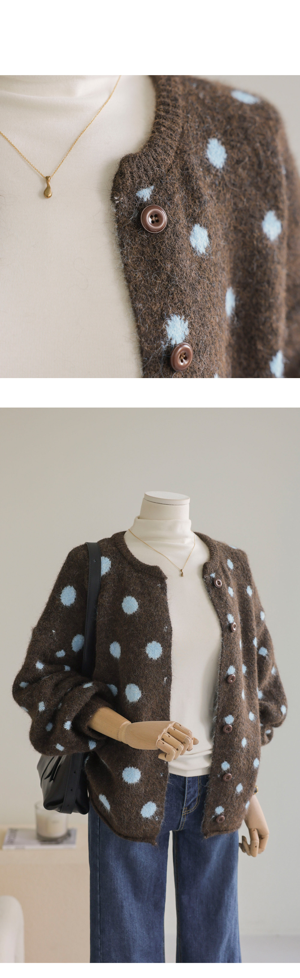 제바온 도트 가디건 _ 브라운,그린