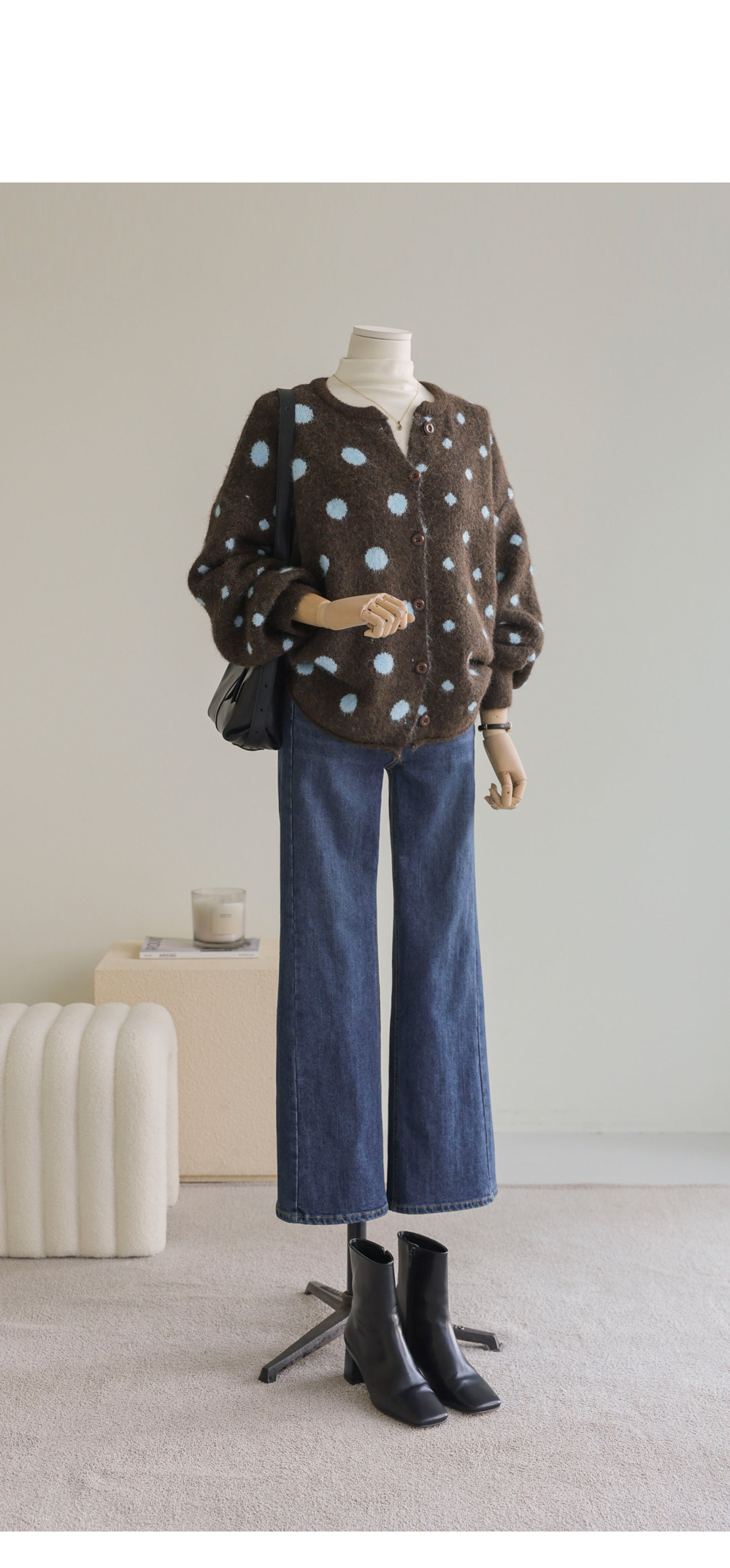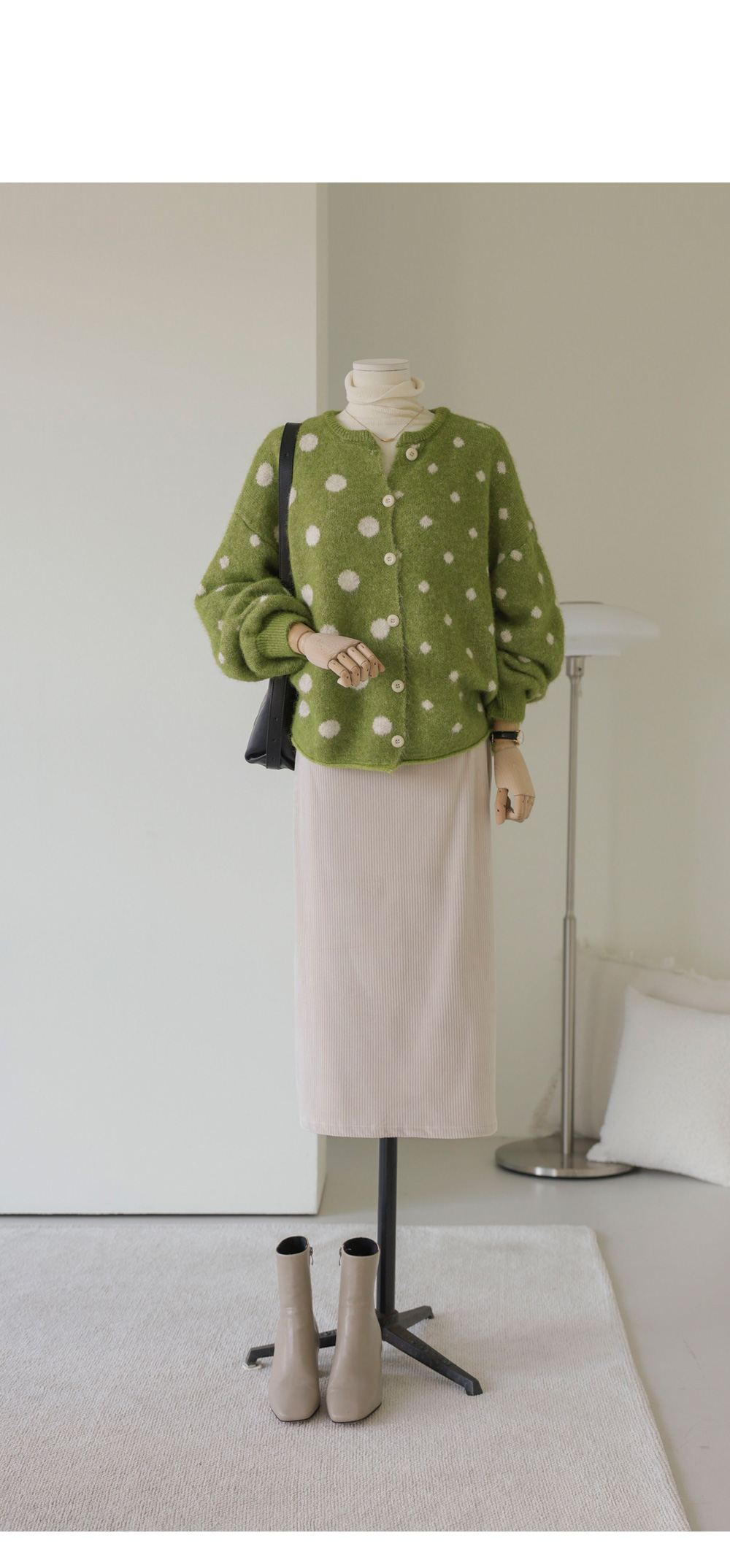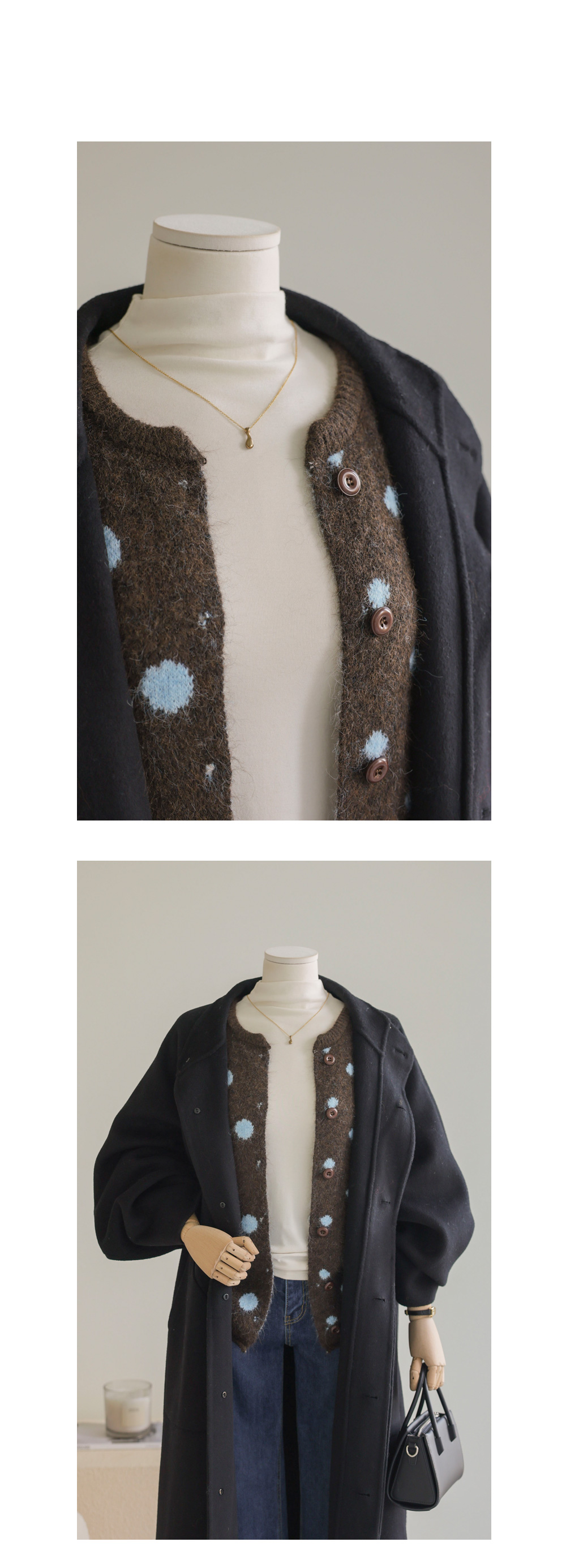 제바온 도트 가디건 _ 브라운,그린