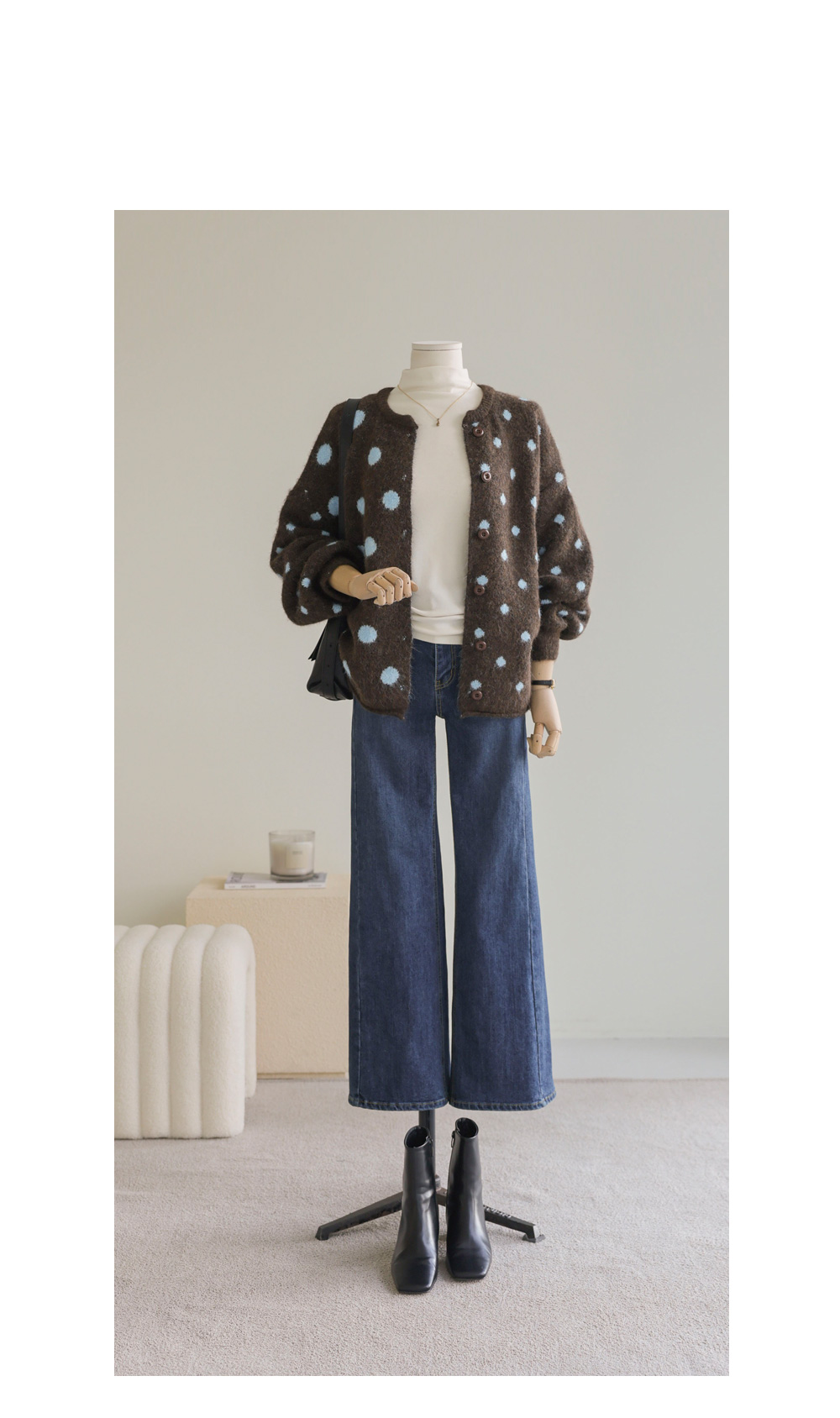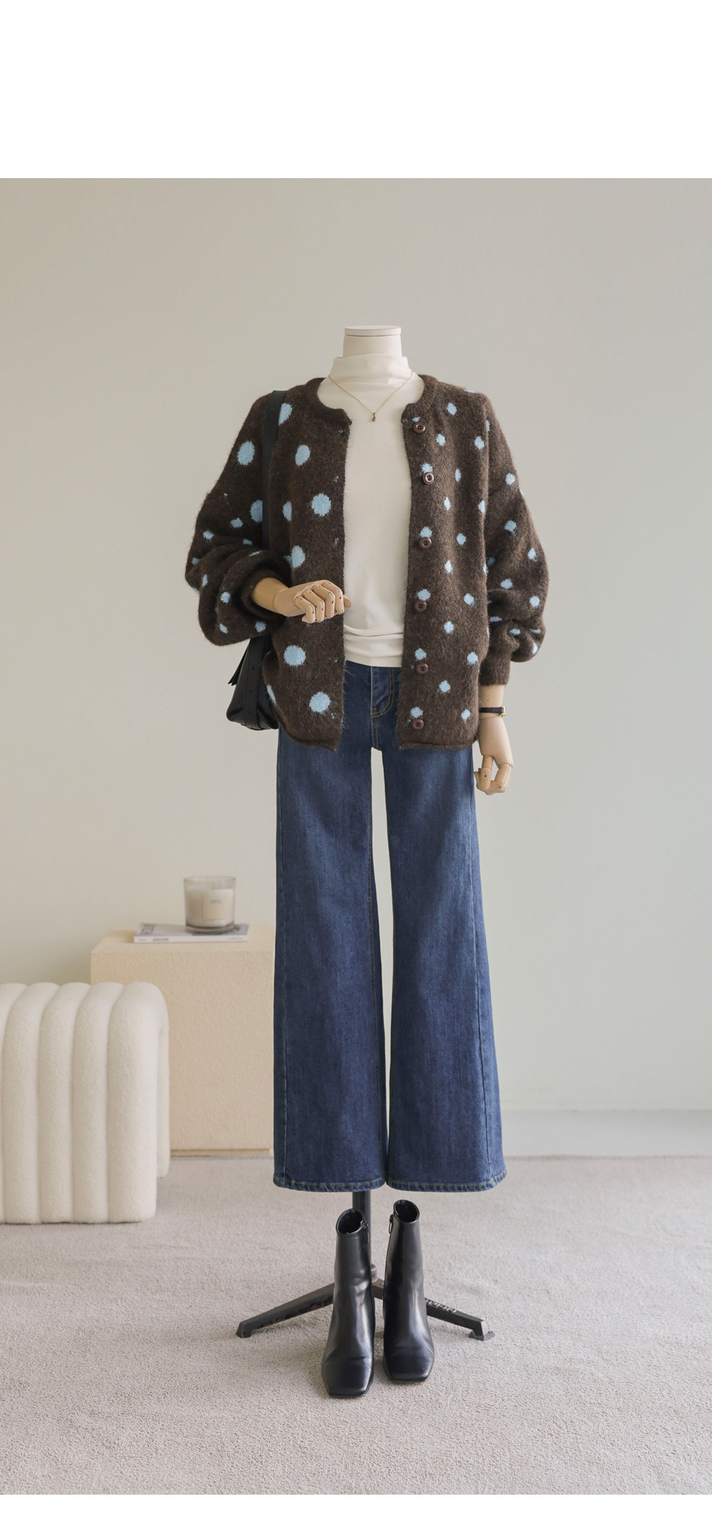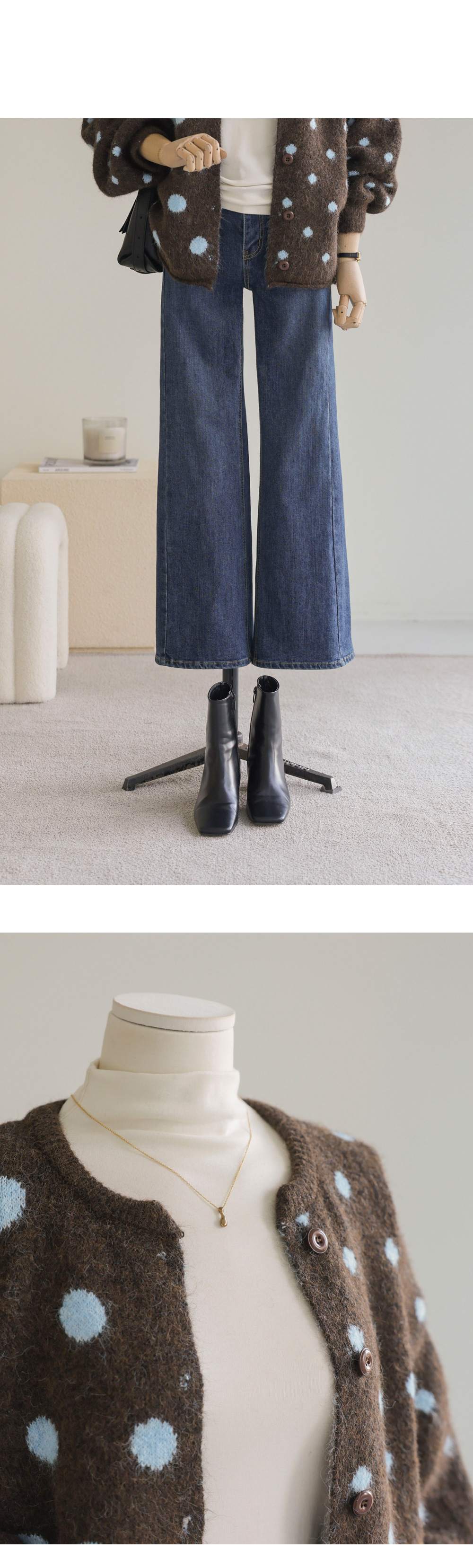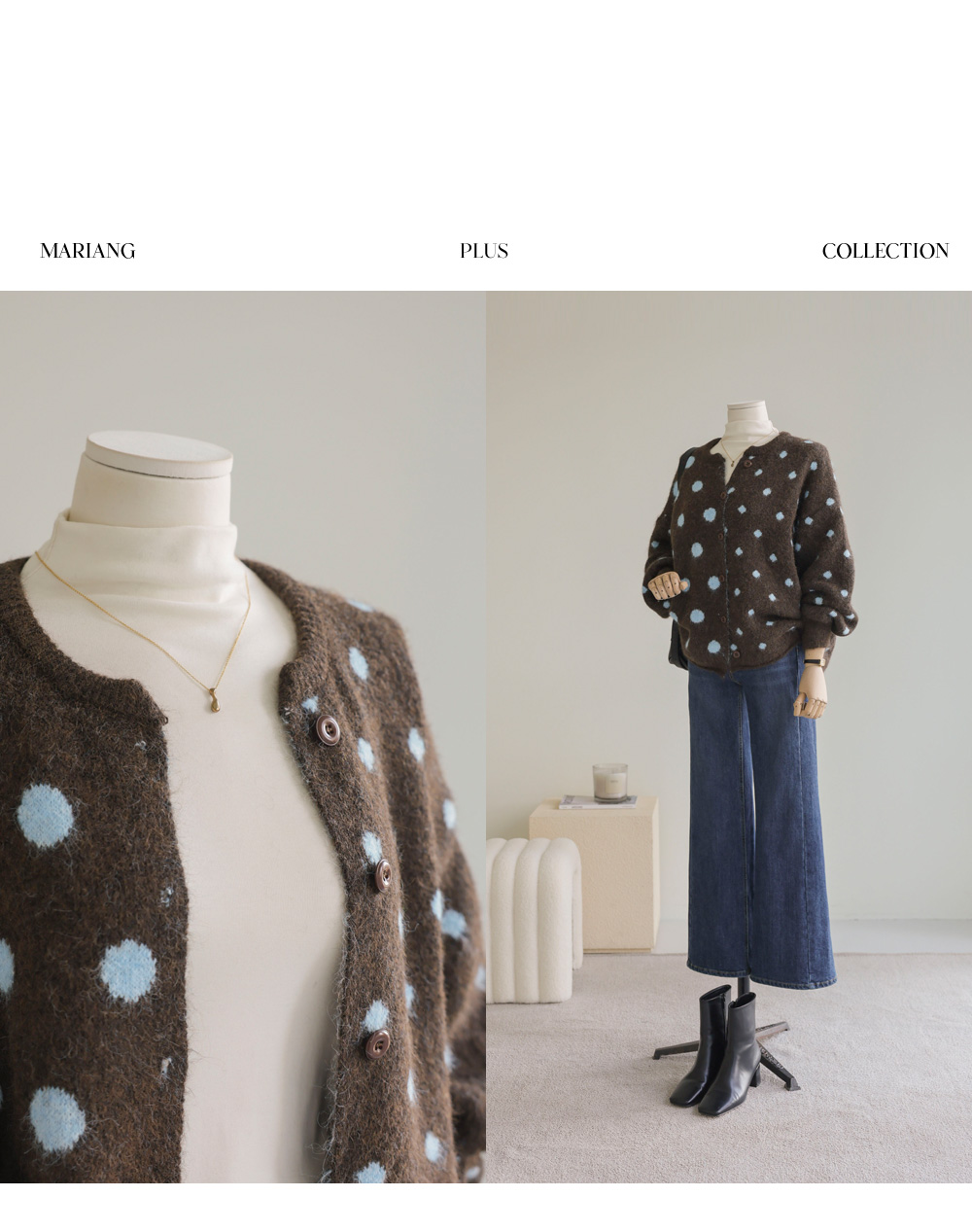 제바온 도트 가디건 _ 브라운,그린