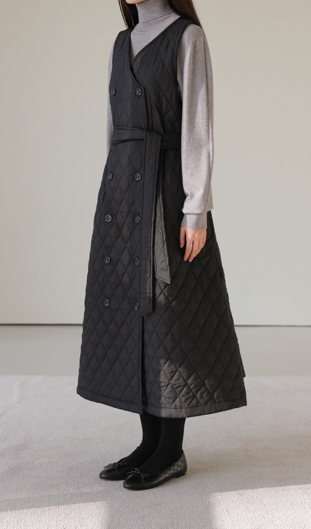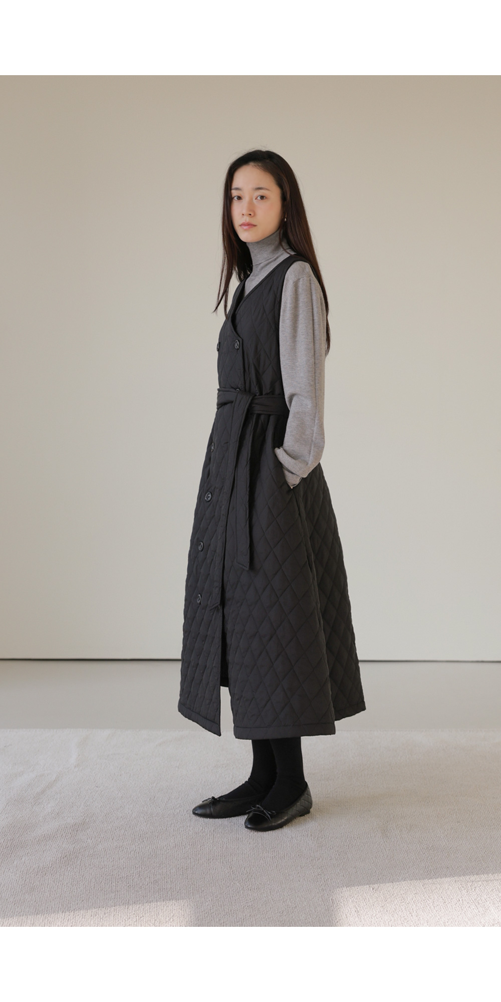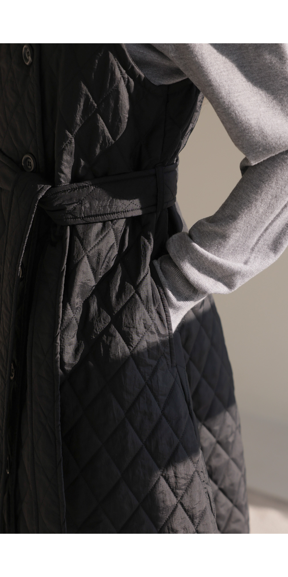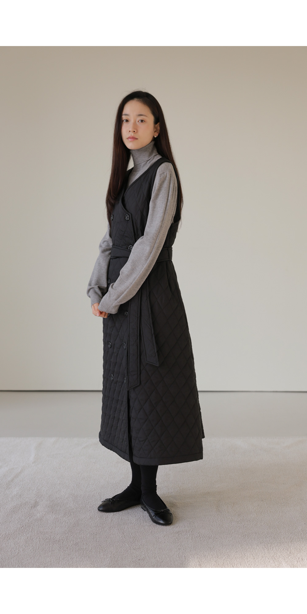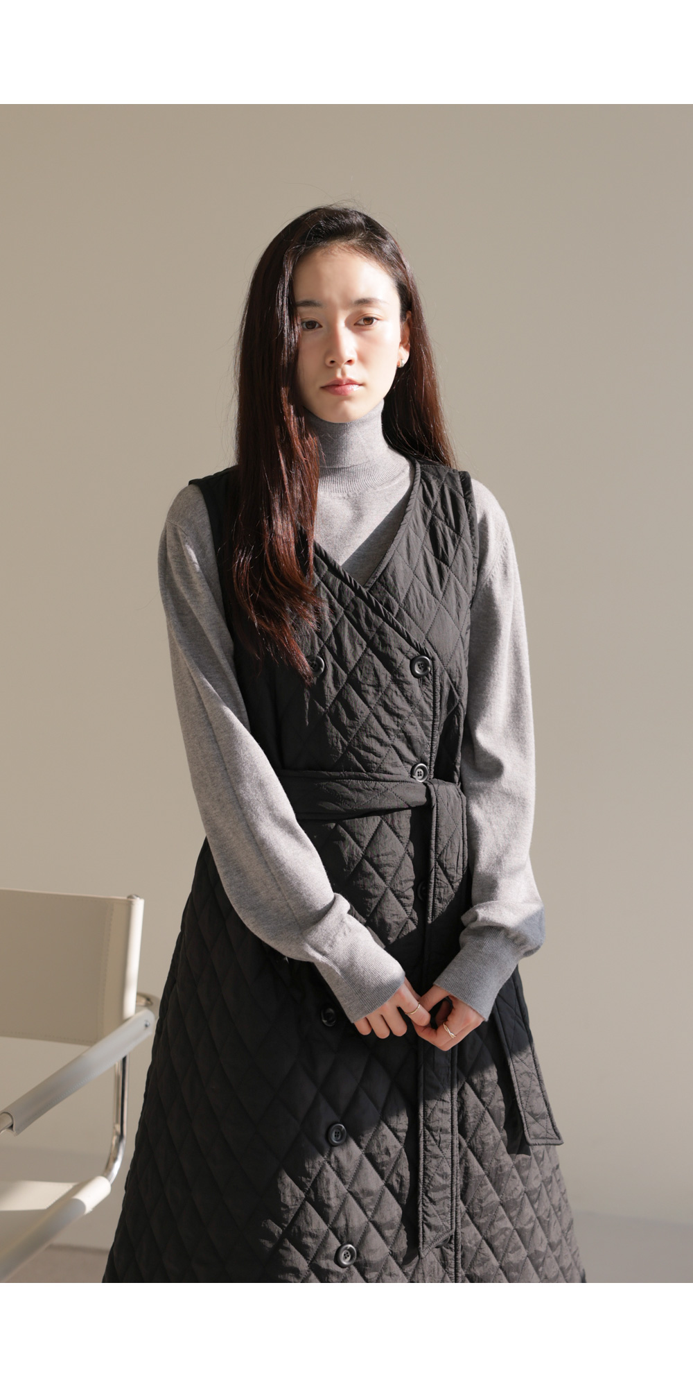 마레트 퀼팅 원피스 _ 차콜
