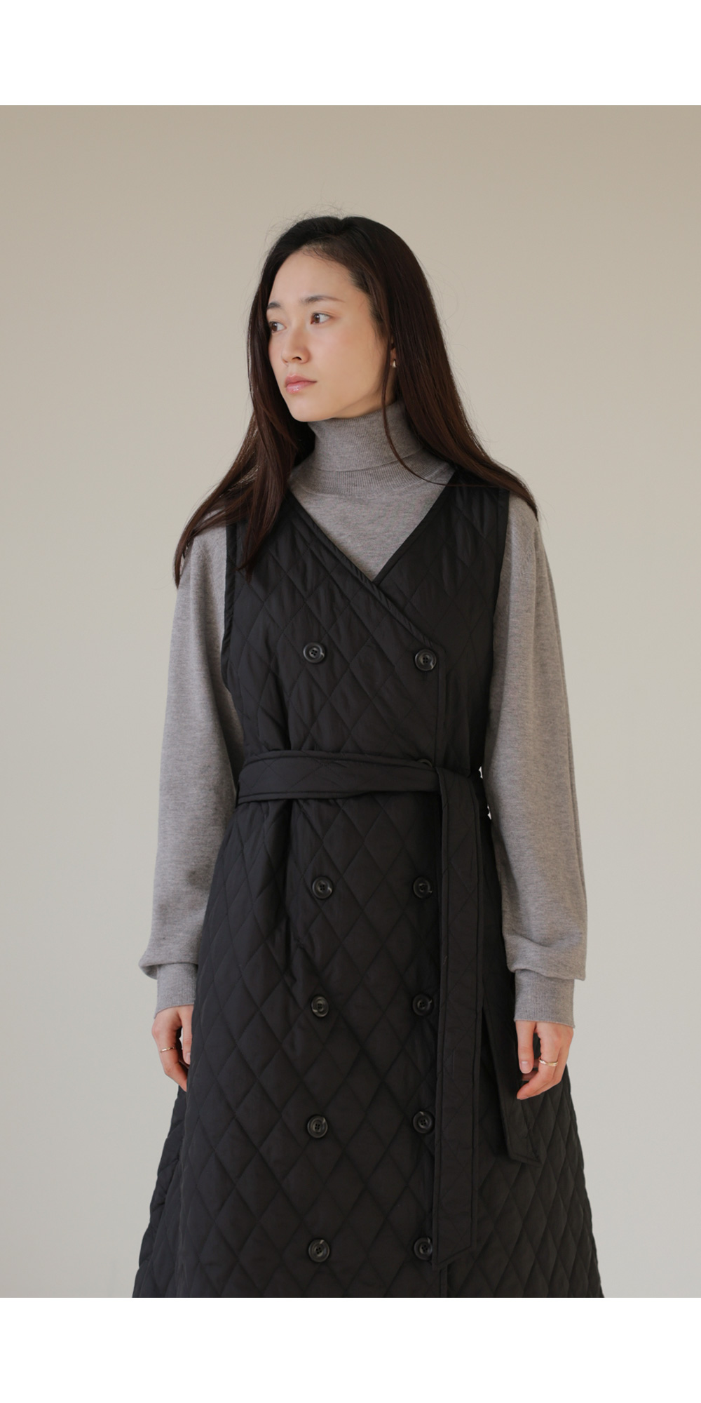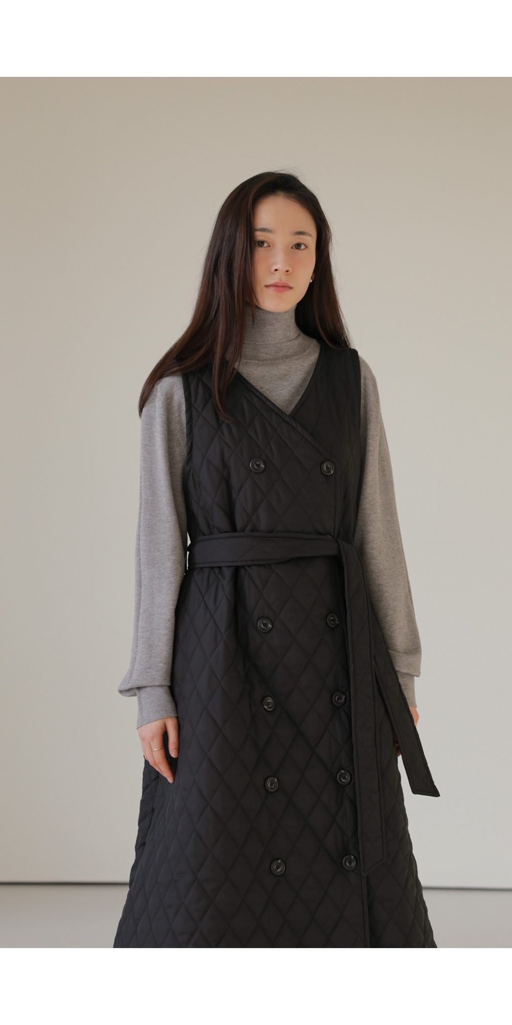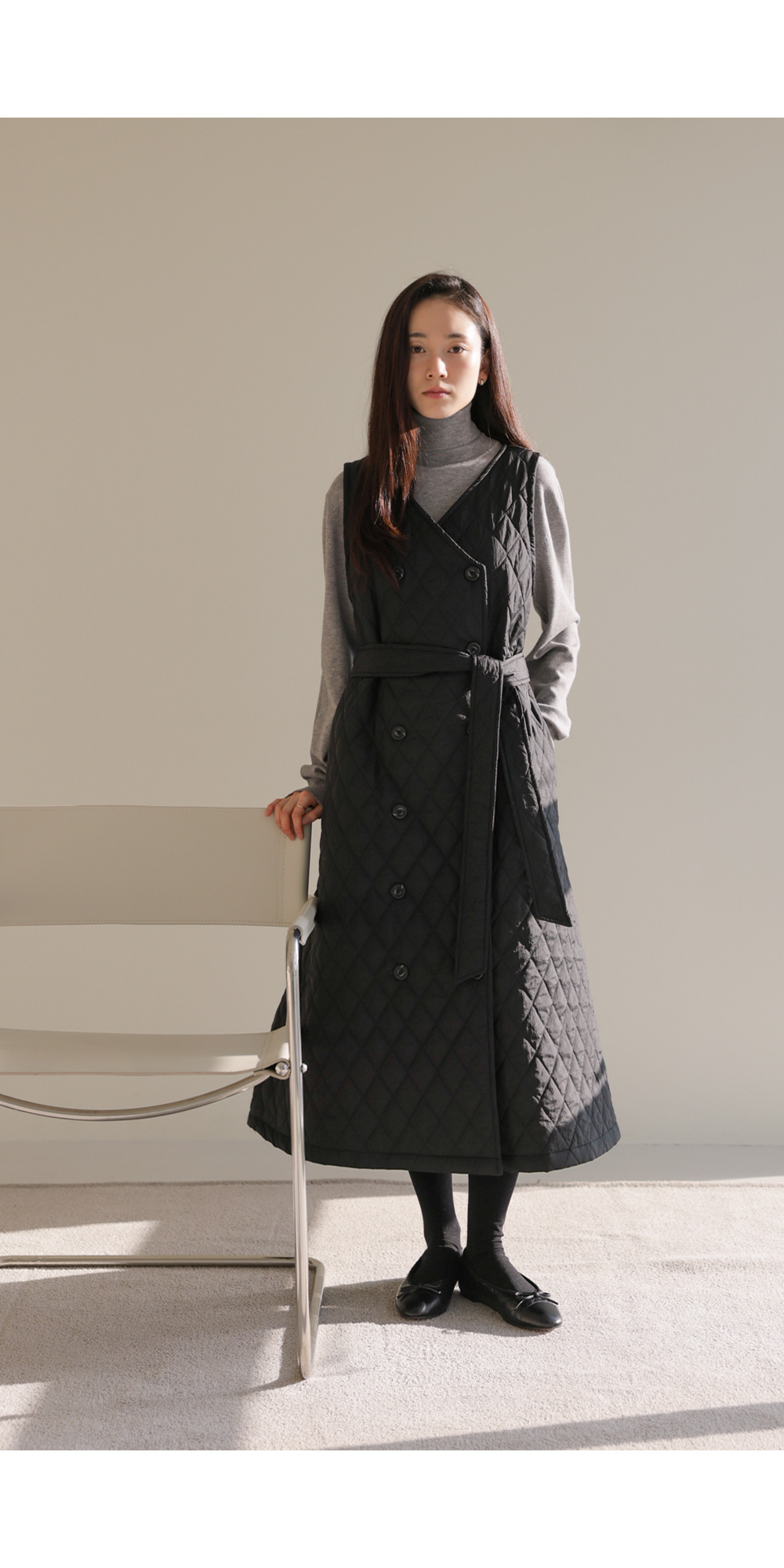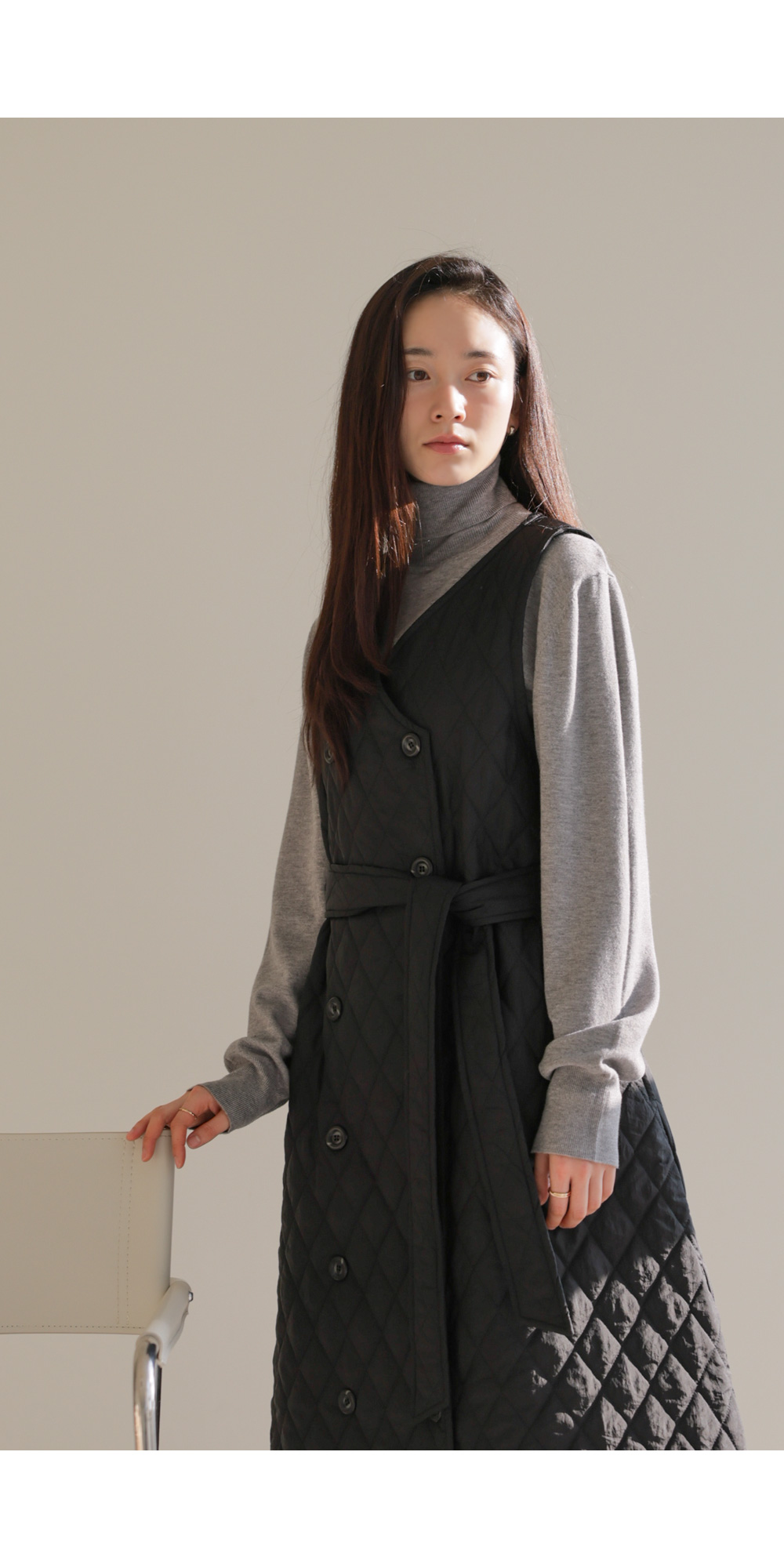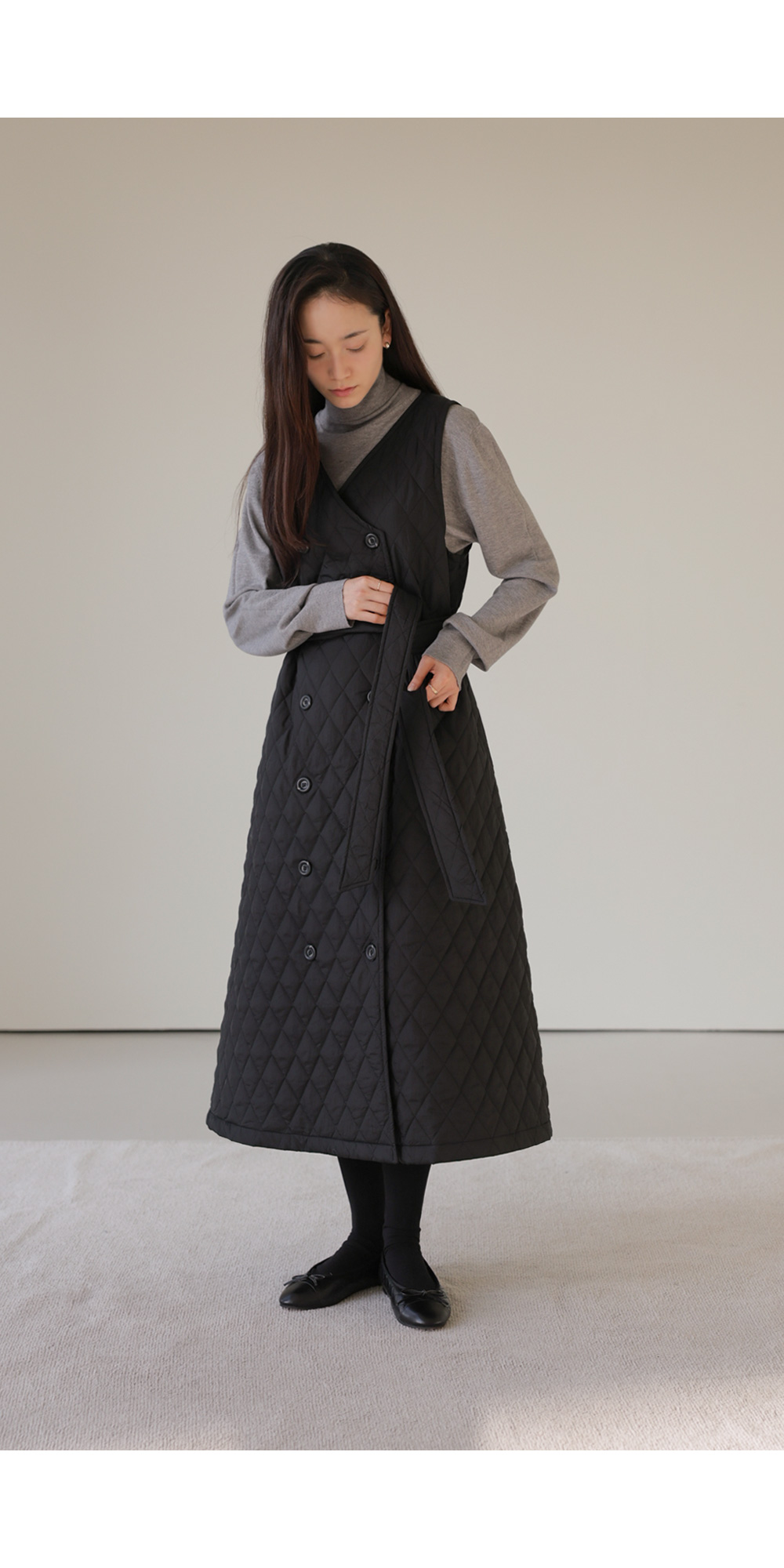 마레트 퀼팅 원피스 _ 차콜