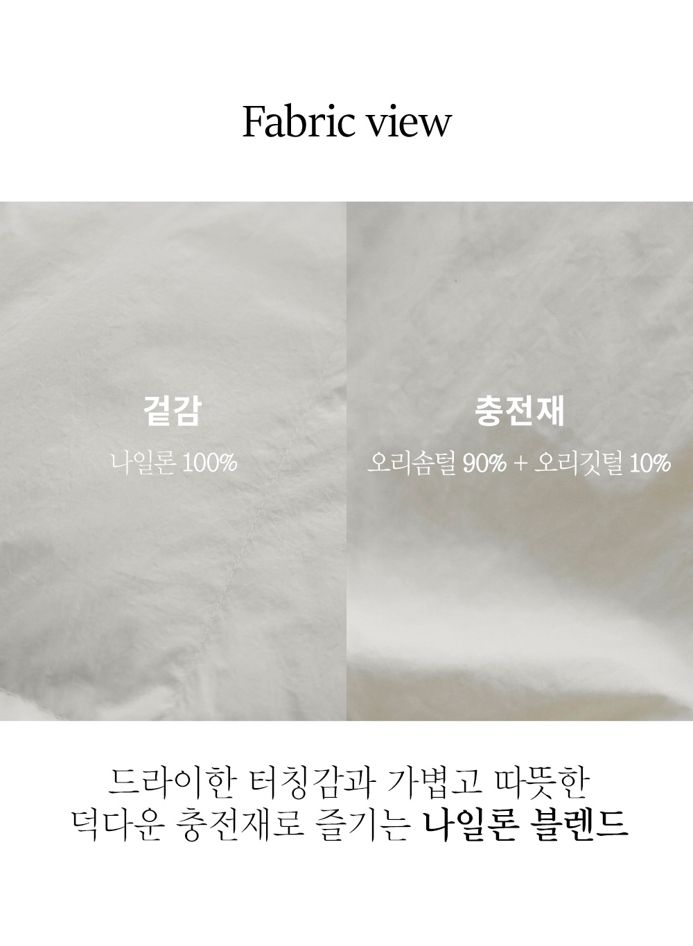 나일론100% 충전재: 오리솜털90%,오리깃털10%