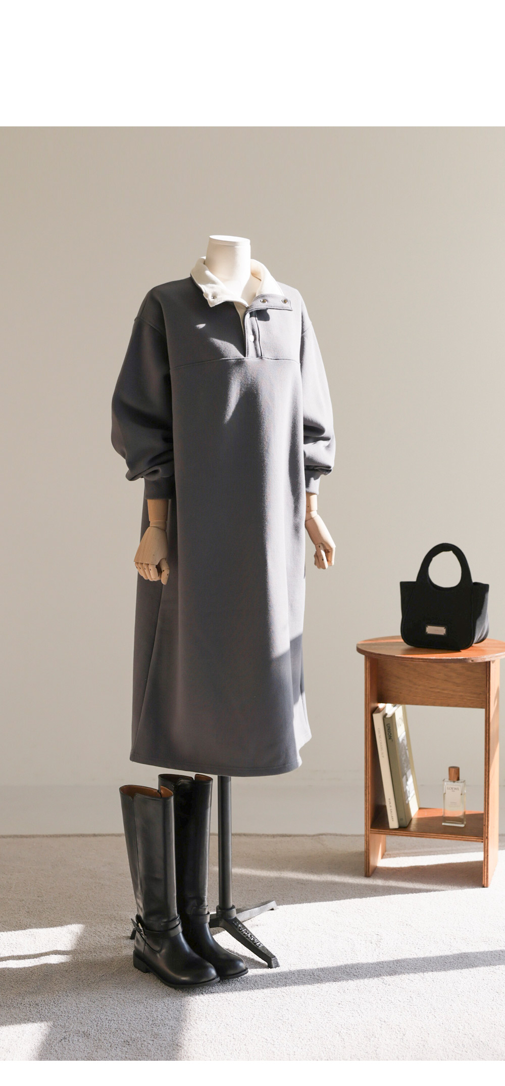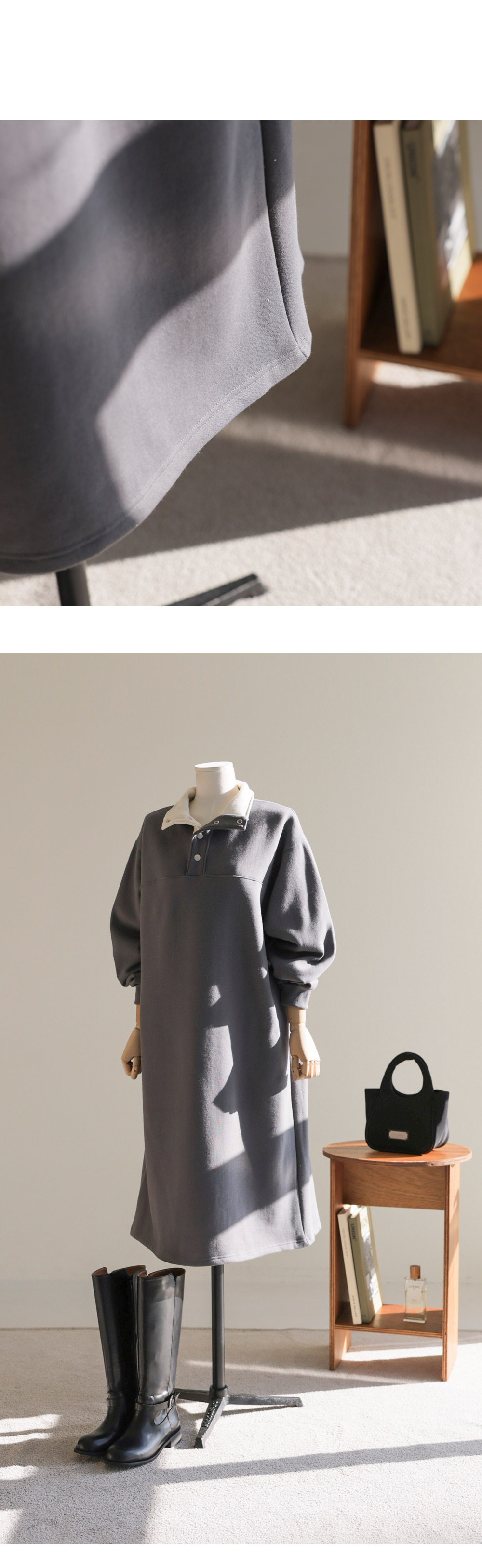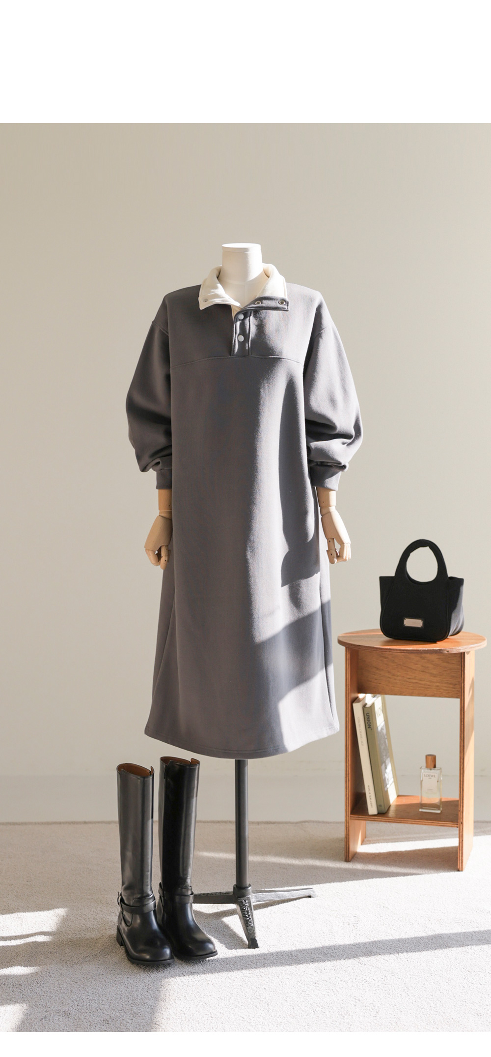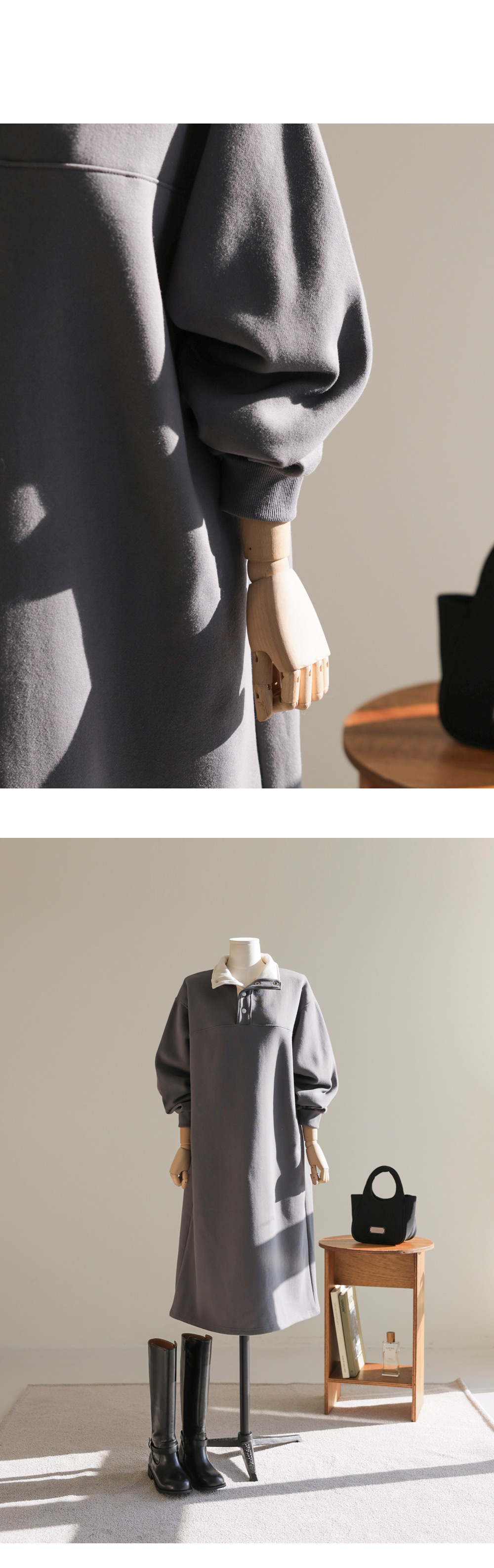 에리본 카라 원피스 _ 차콜,그레이