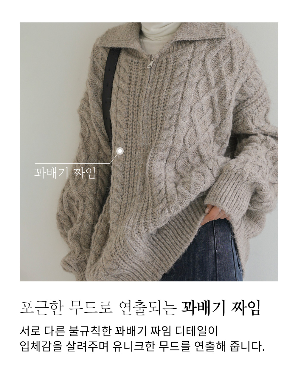 모레안 꽈배기 가디건 _ 베이지