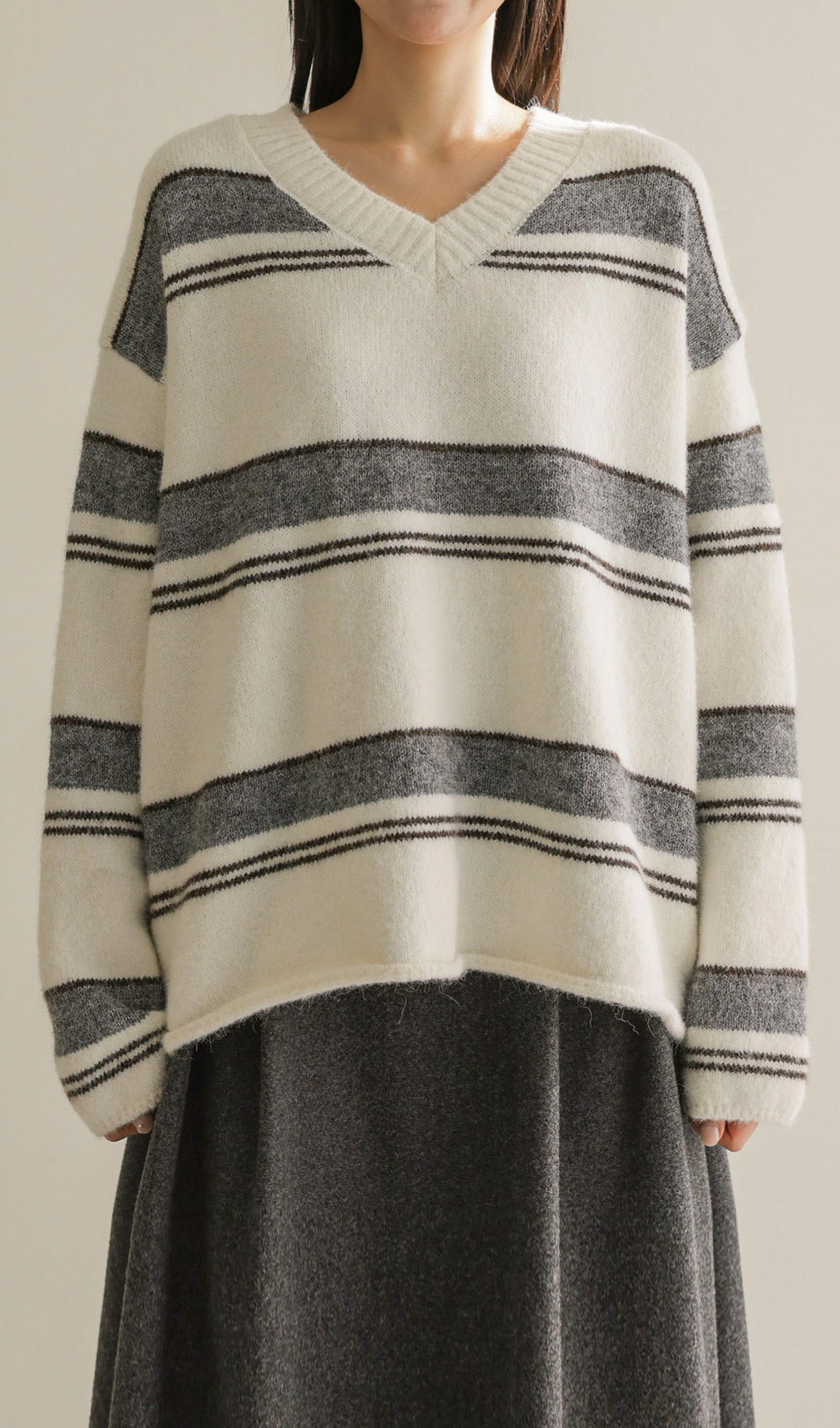 제레온 브이넥 니트 _ 아이보리