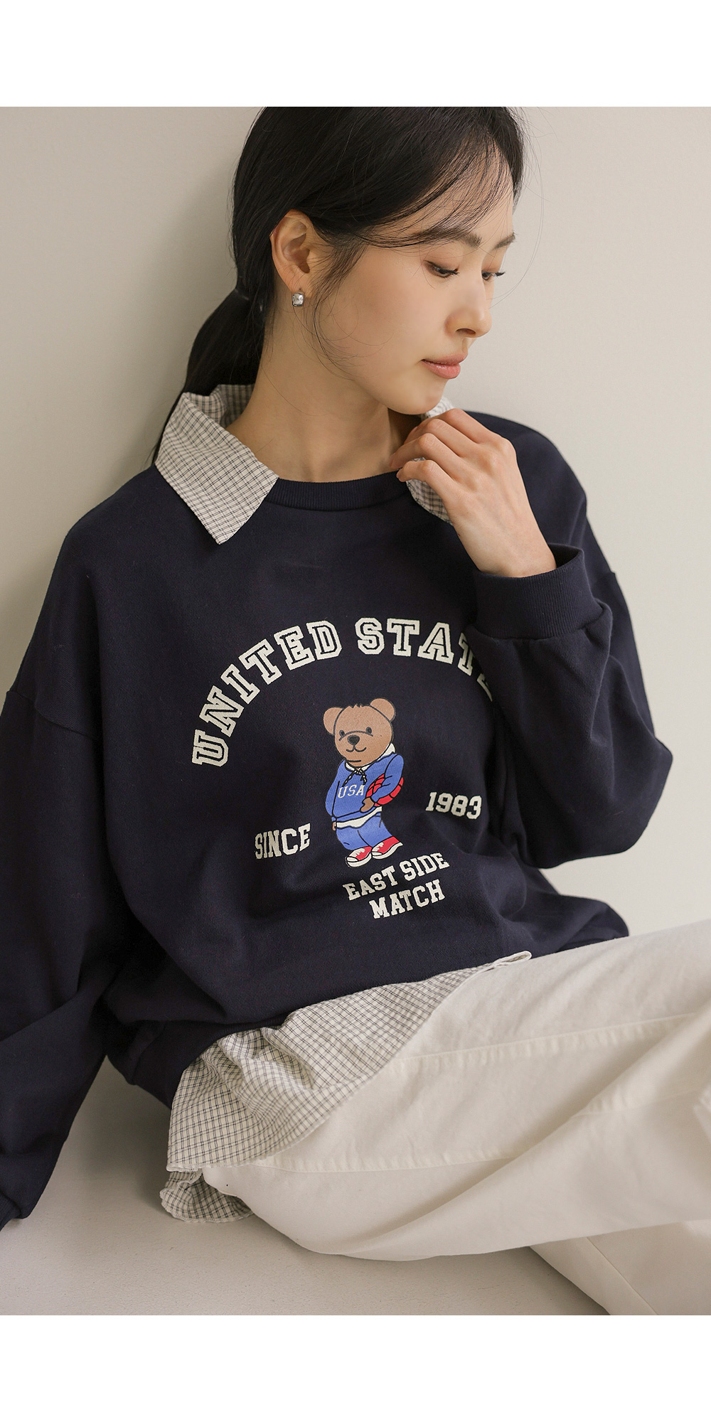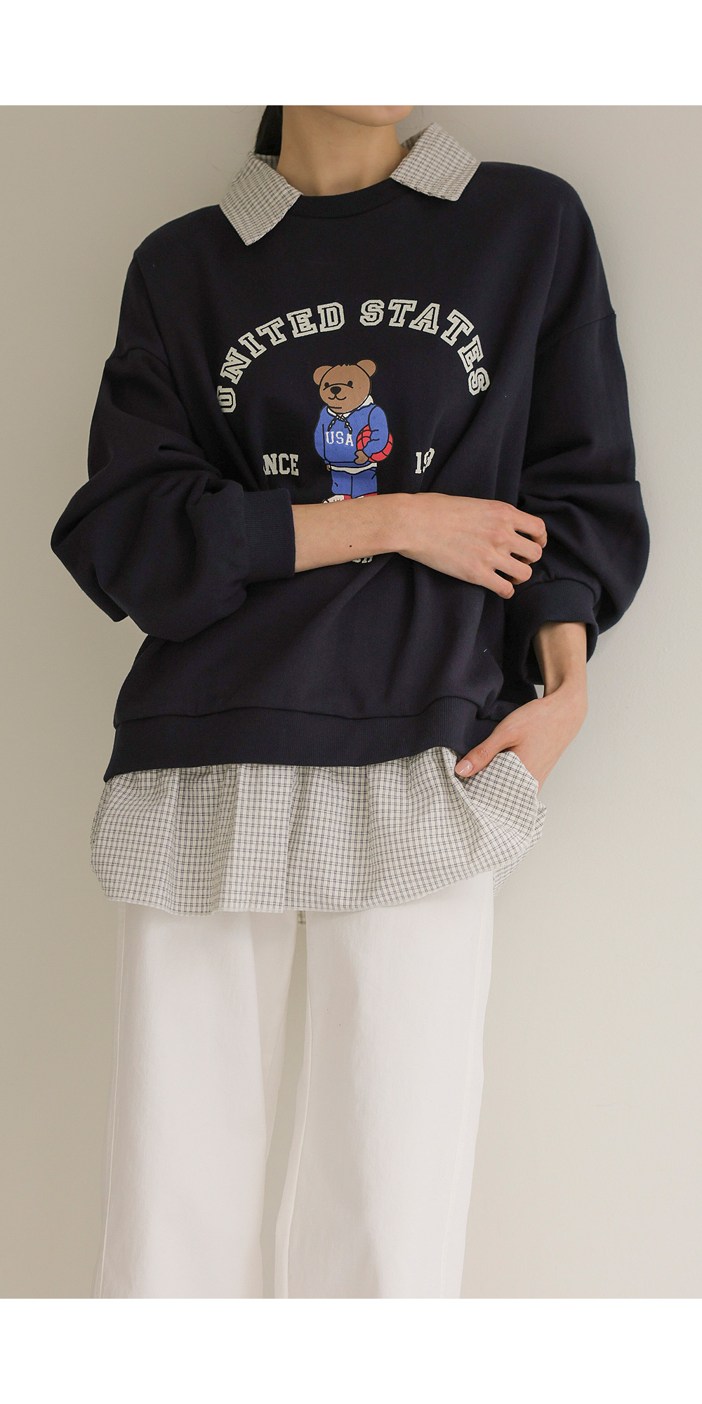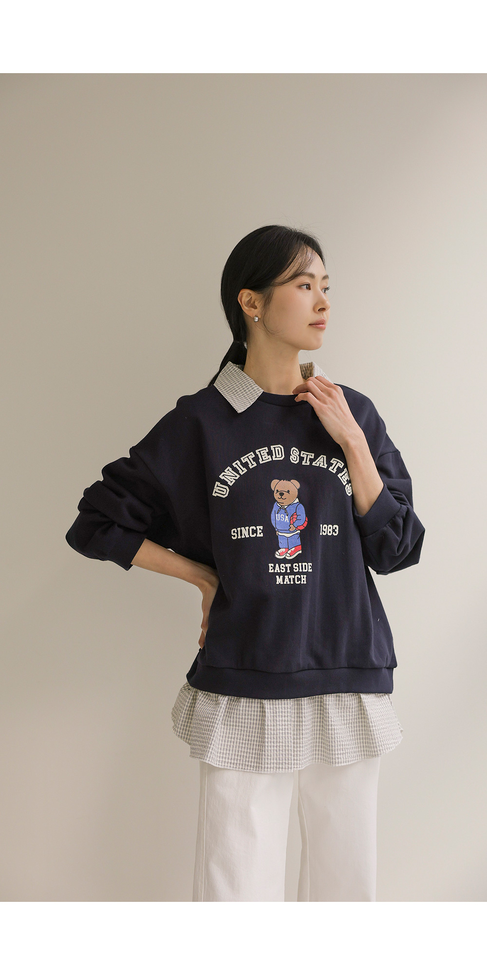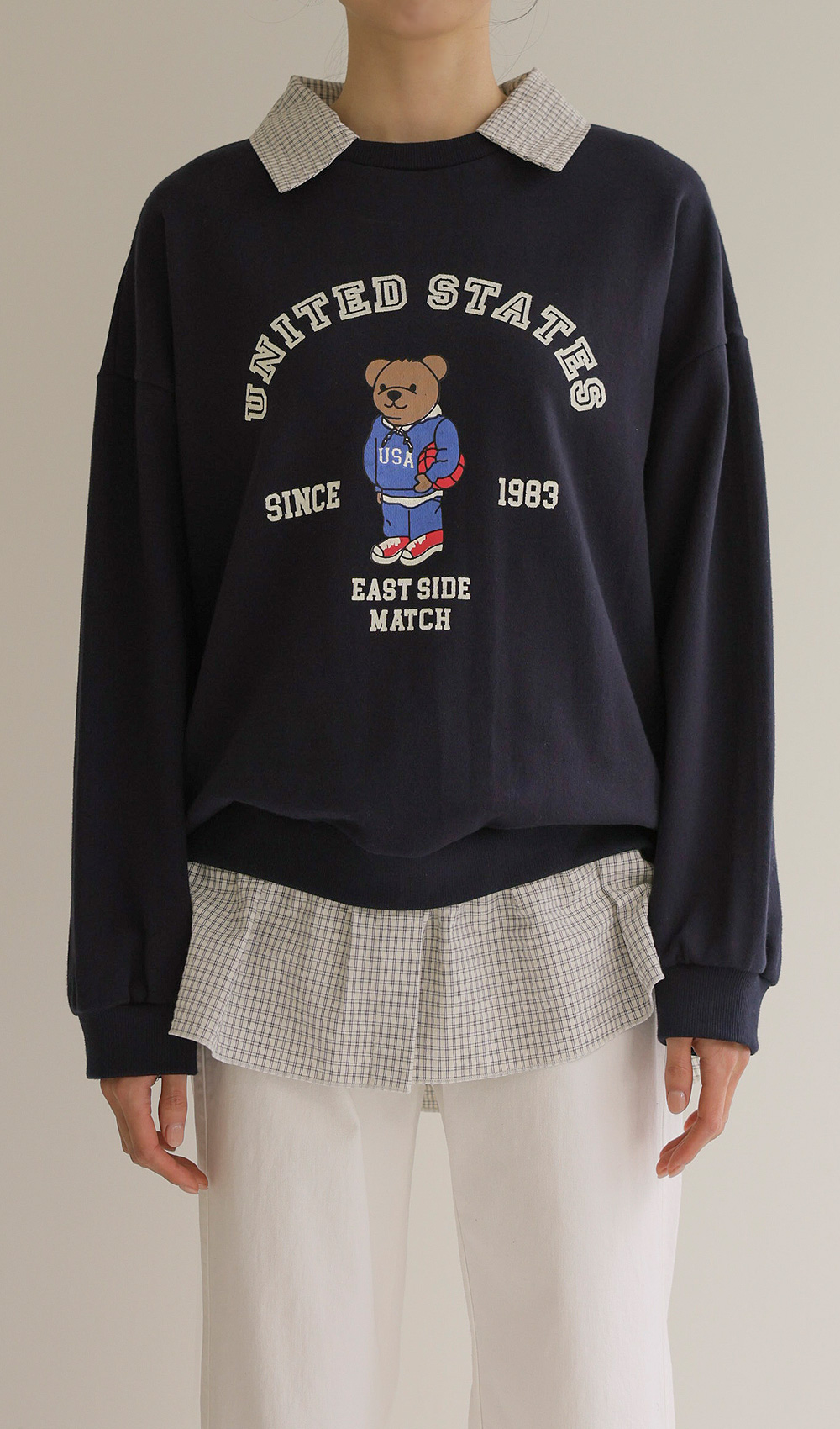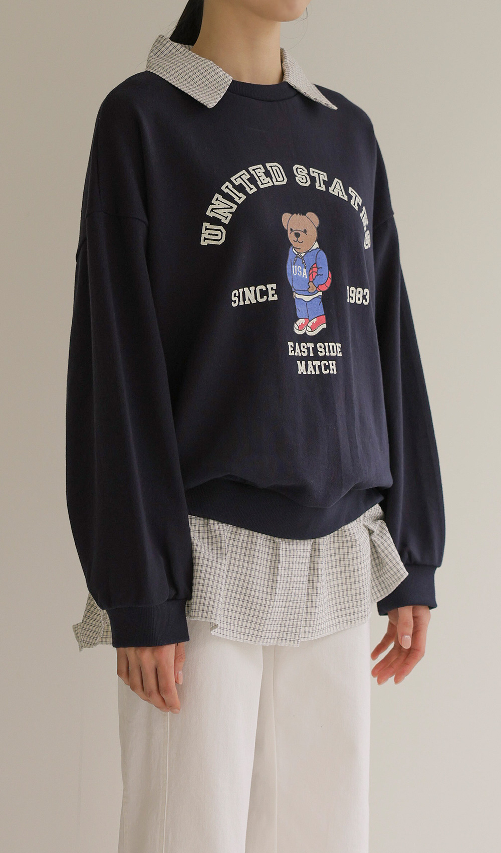 포가스 레이어드 맨투맨 _ 멜란지,네이비