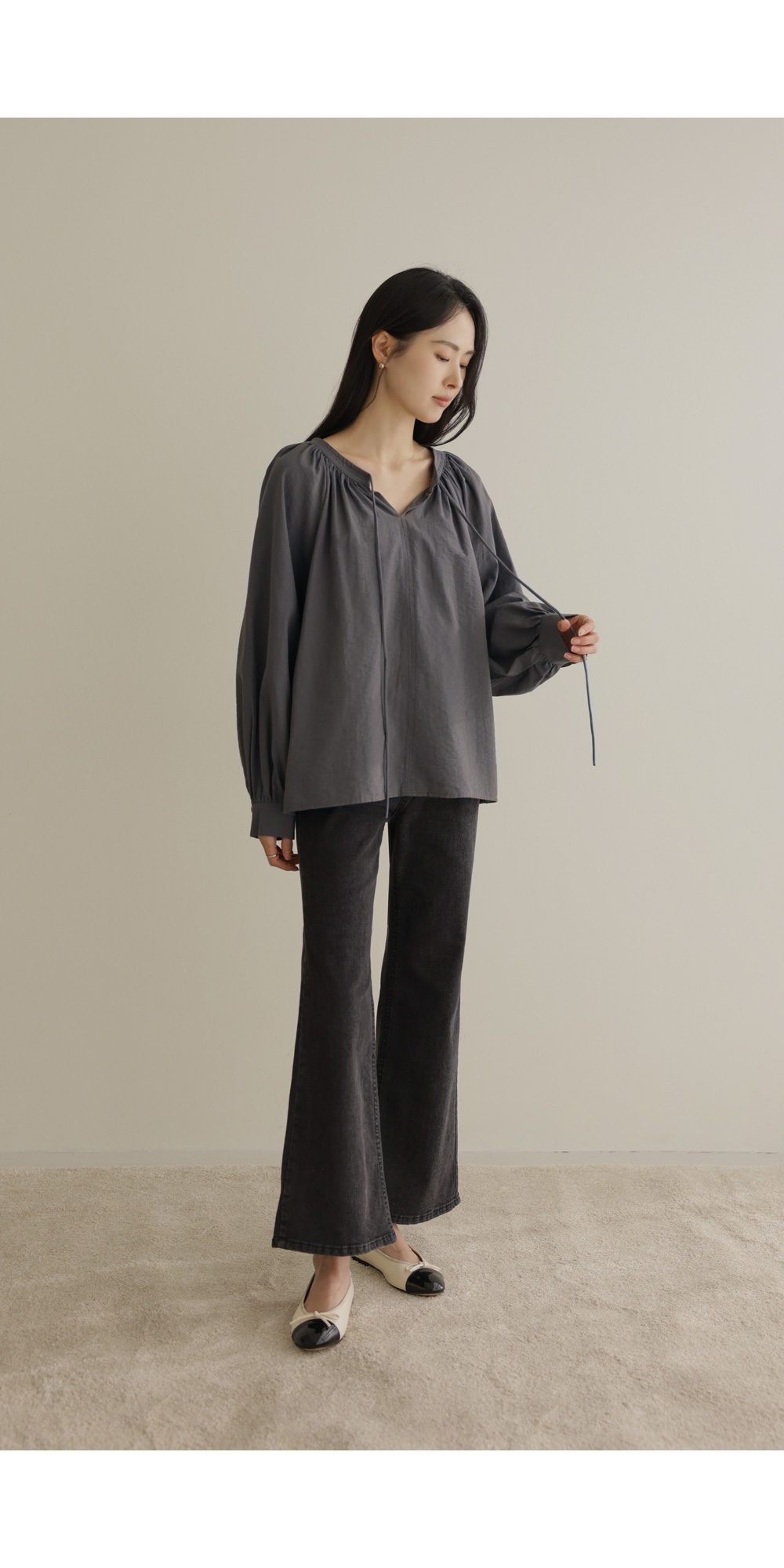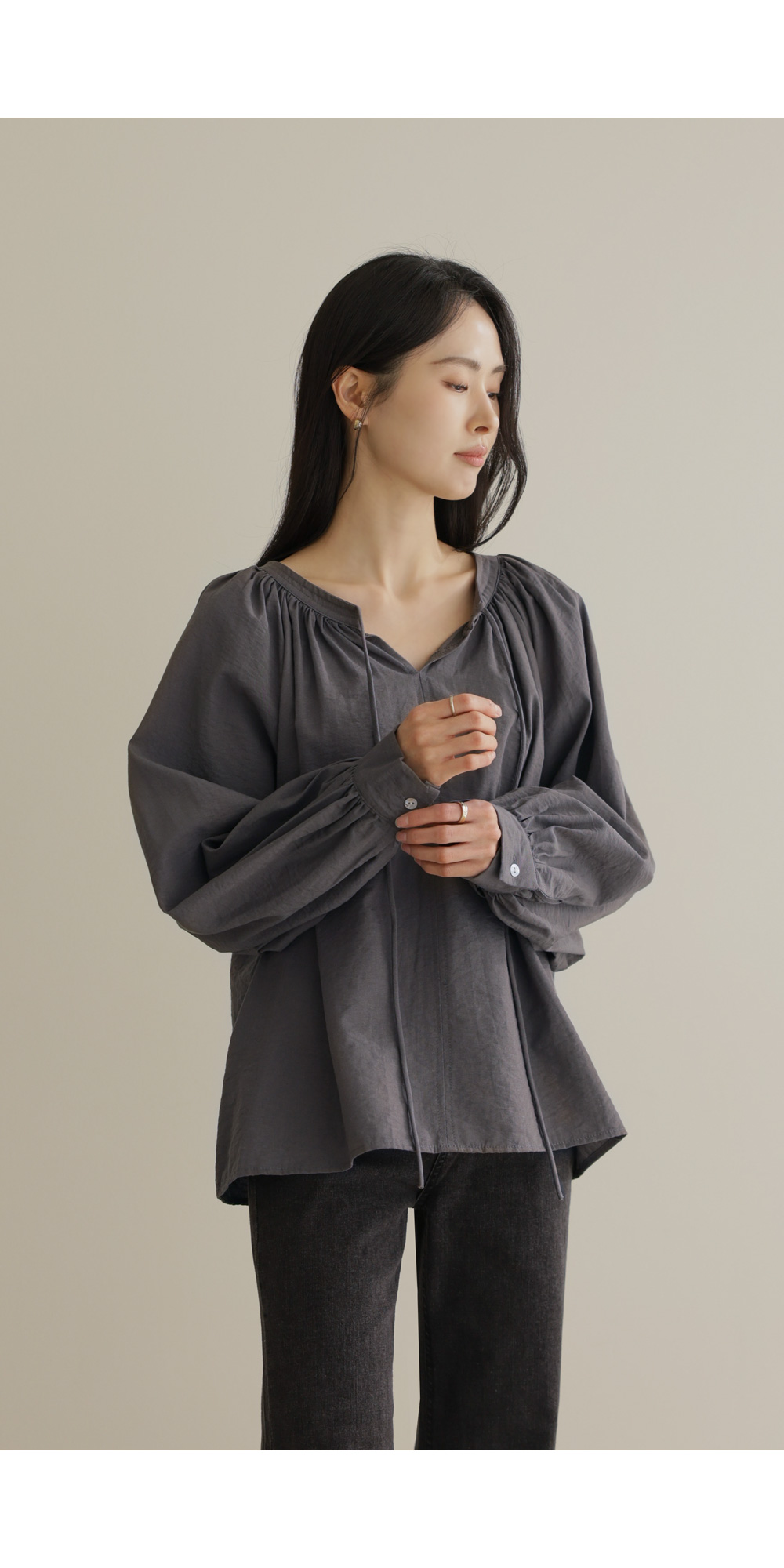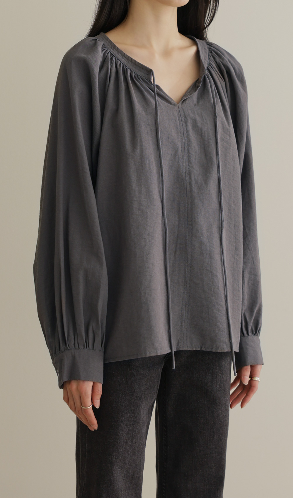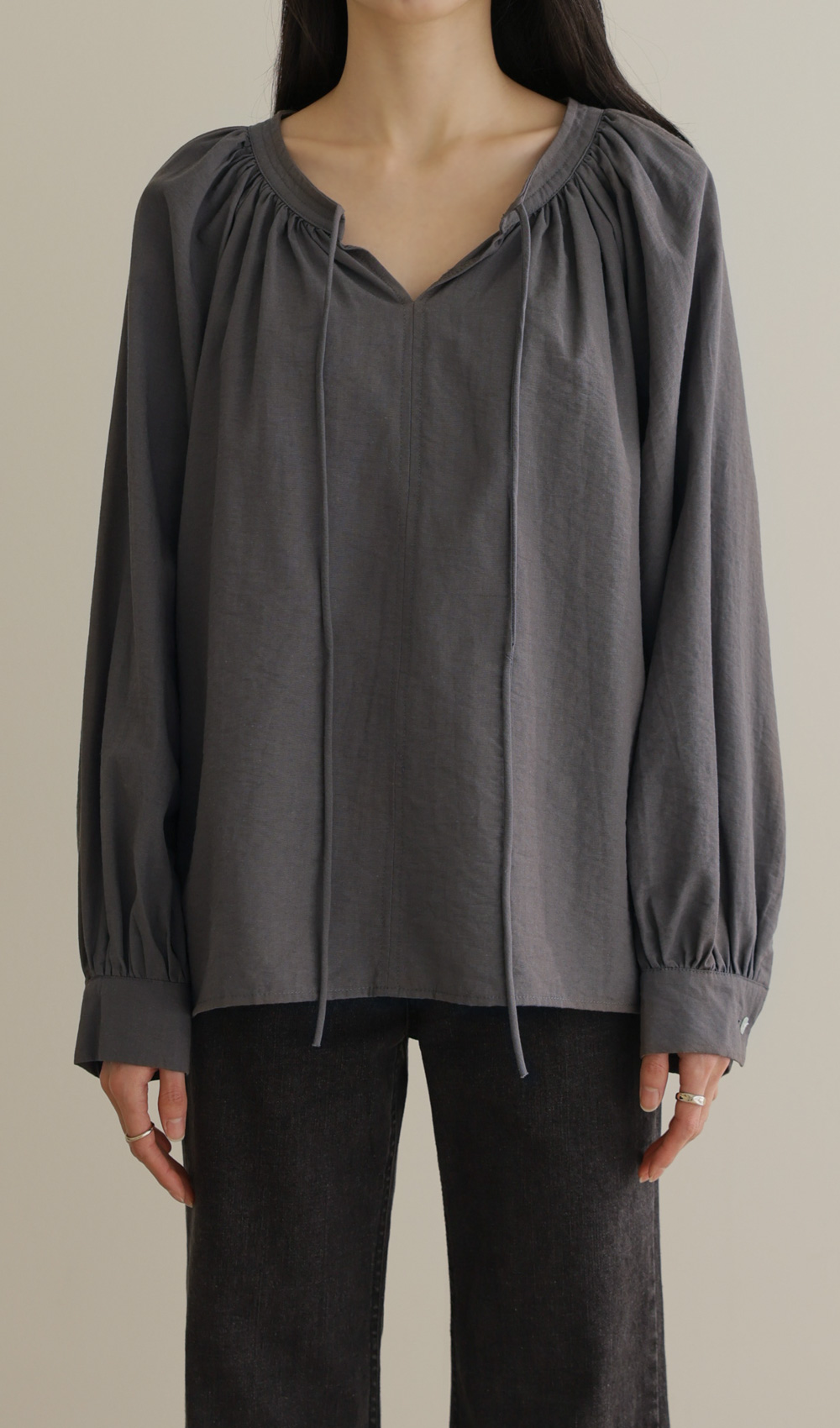 올리즈 셔링 블라우스 _ 그레이,아이보리