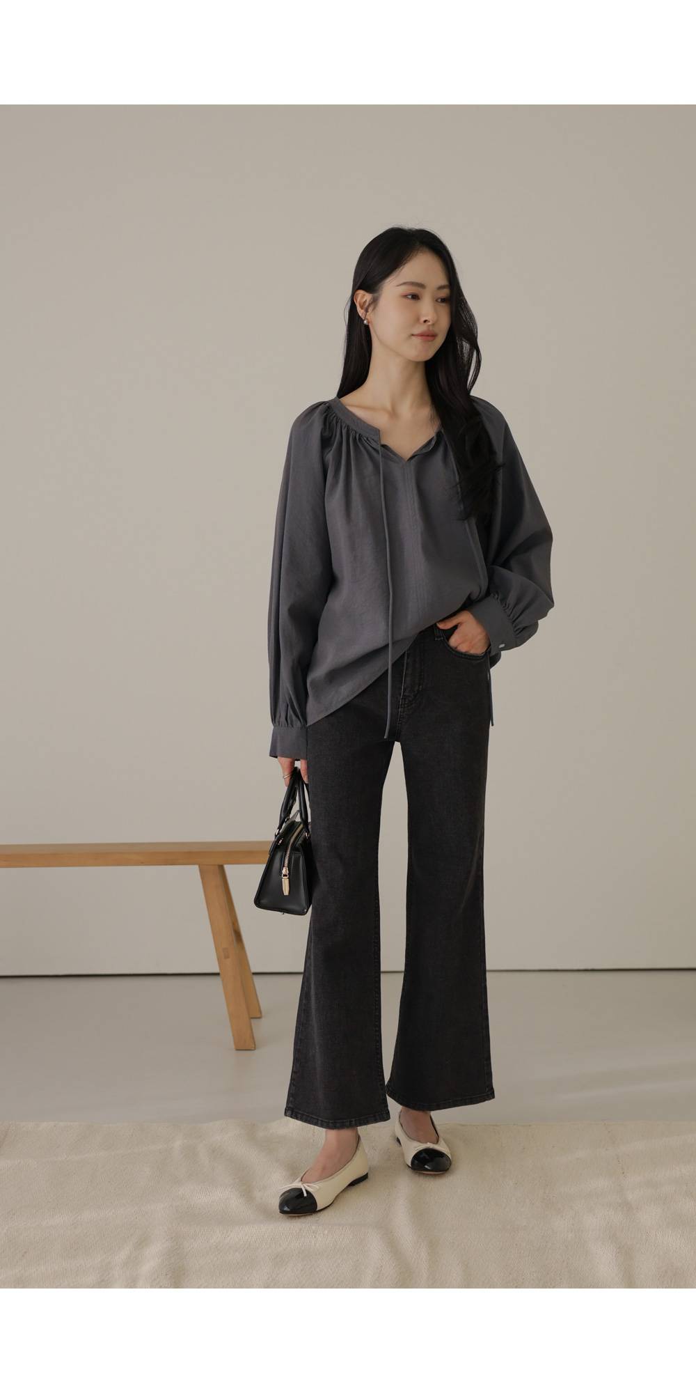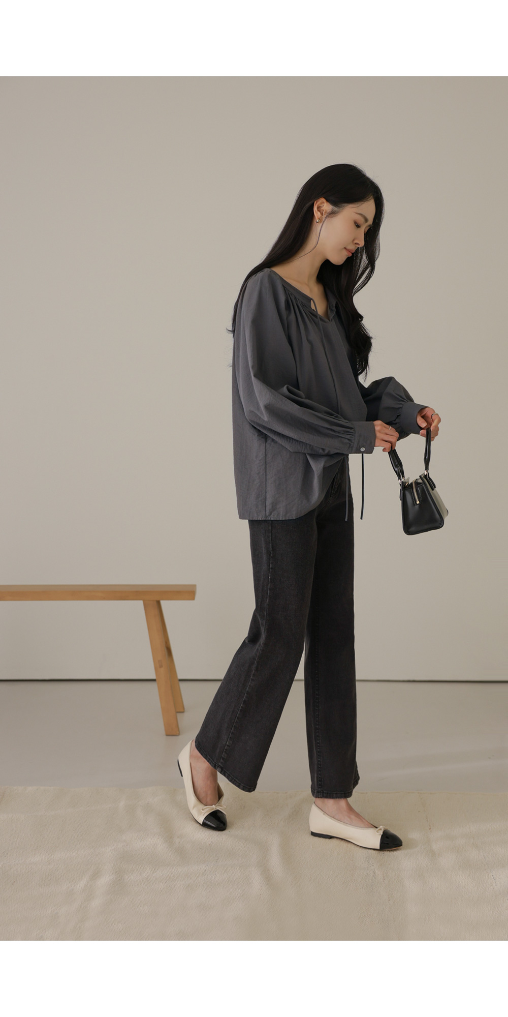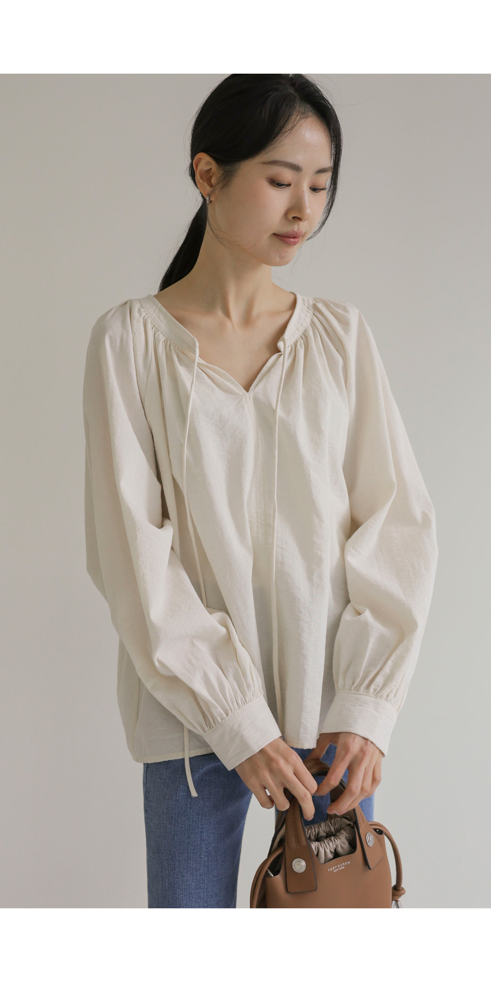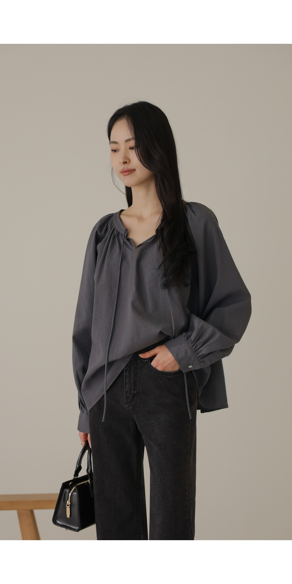올리즈 셔링 블라우스 _ 그레이,아이보리