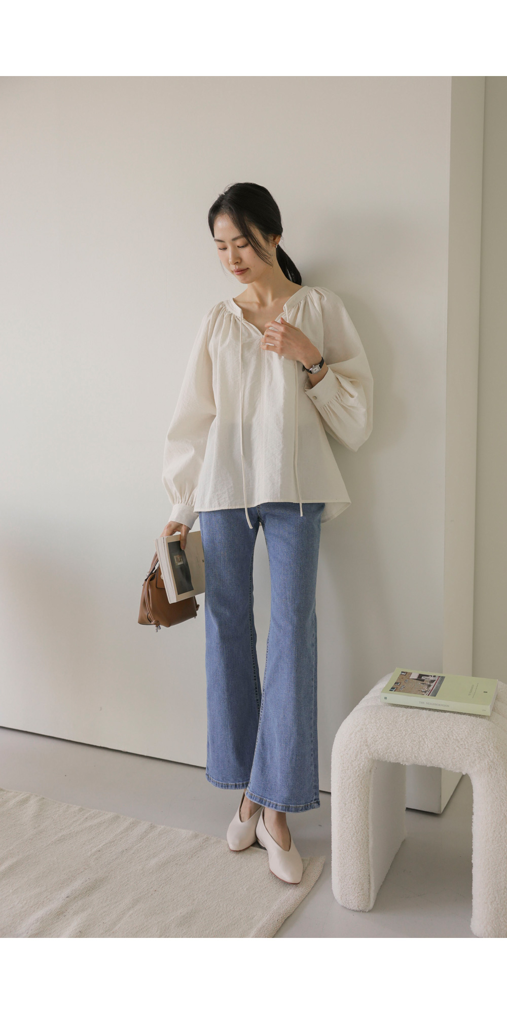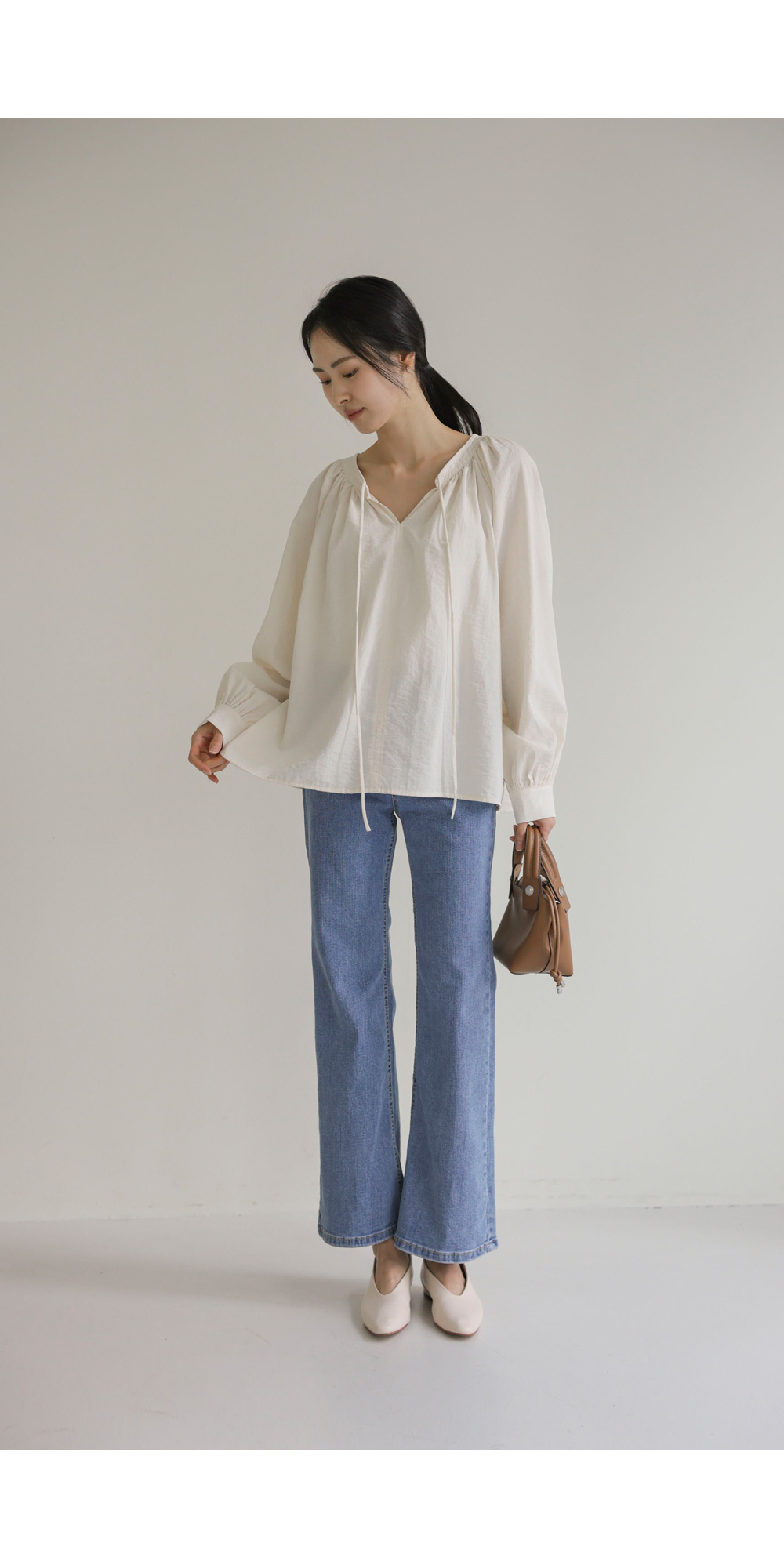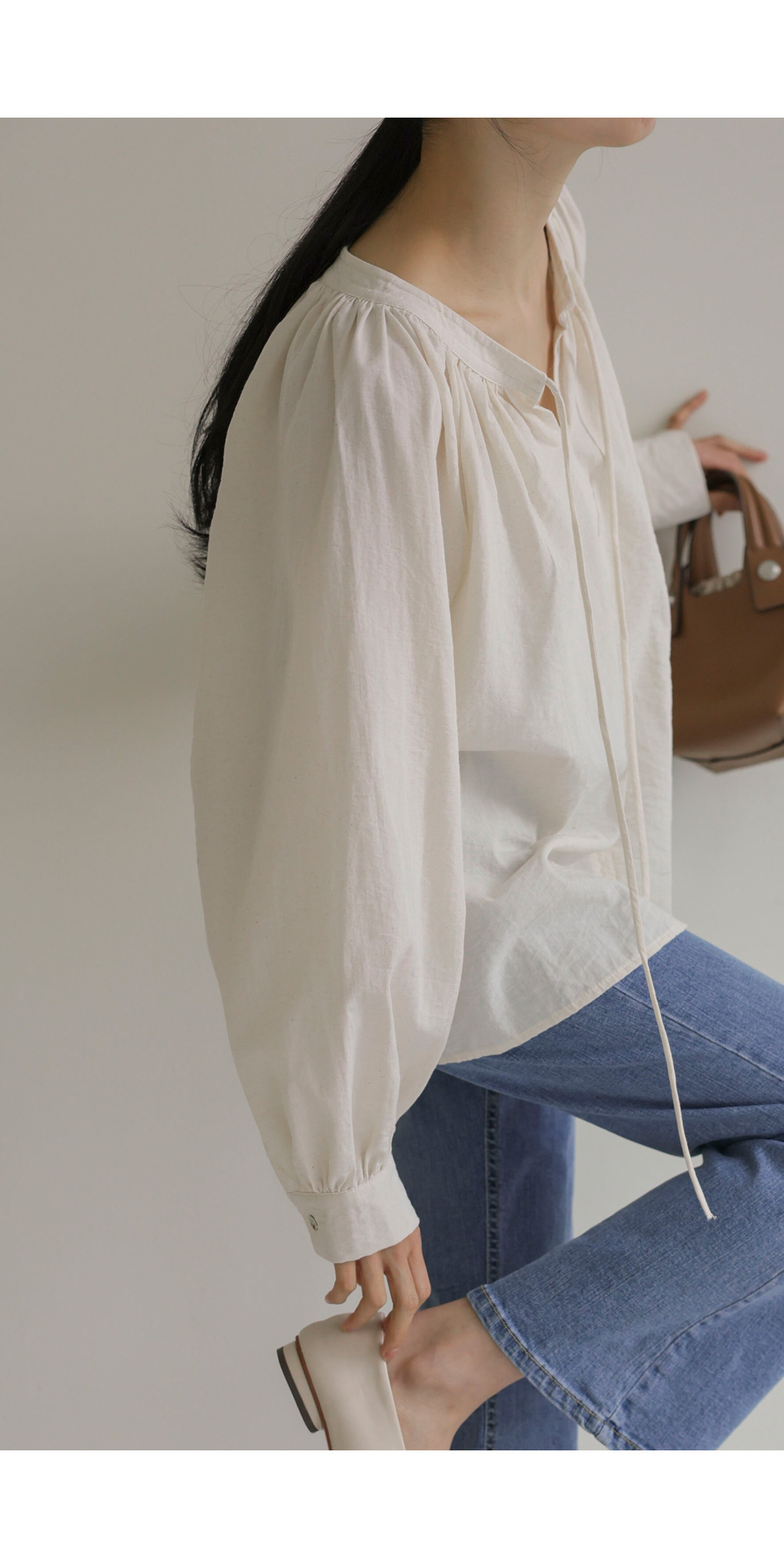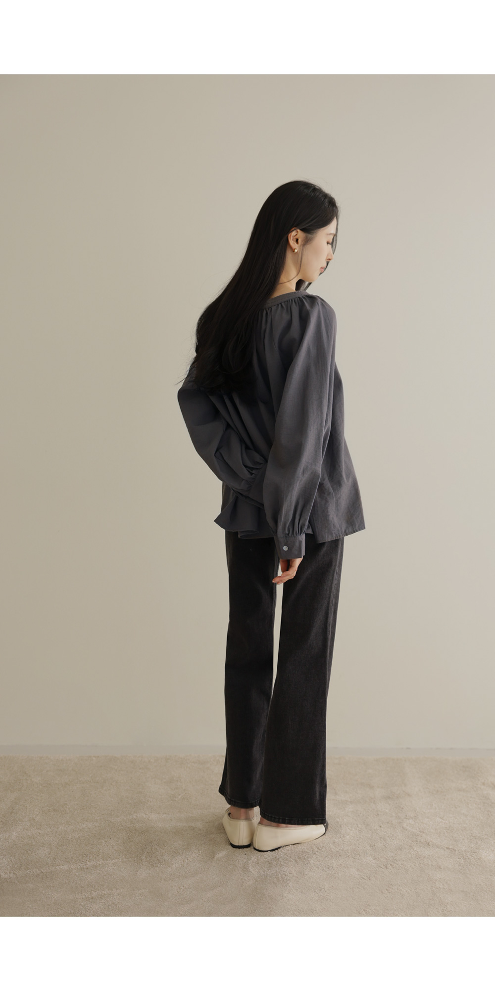 올리즈 셔링 블라우스 _ 그레이,아이보리