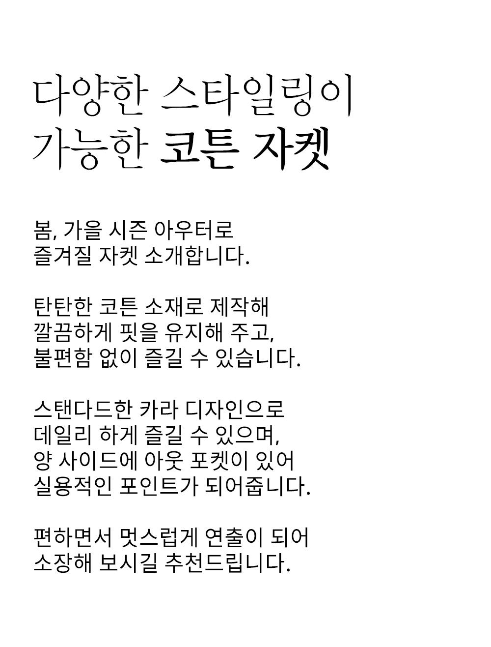 ※첫 세탁은 드라이클리닝을 권장합니다.