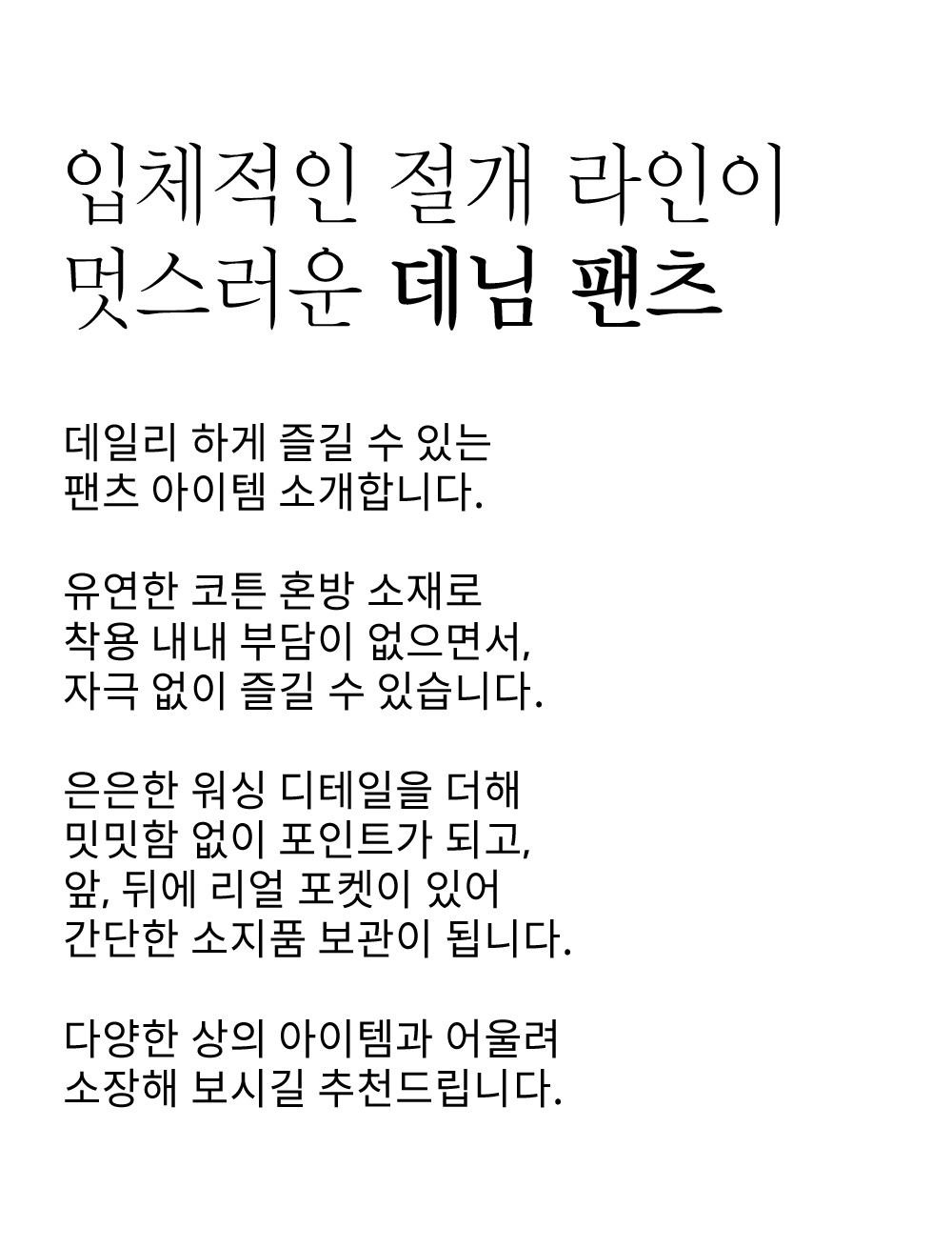 ※데님은 이염의 위험이 있으니 반드시 단독 세탁해주세요.